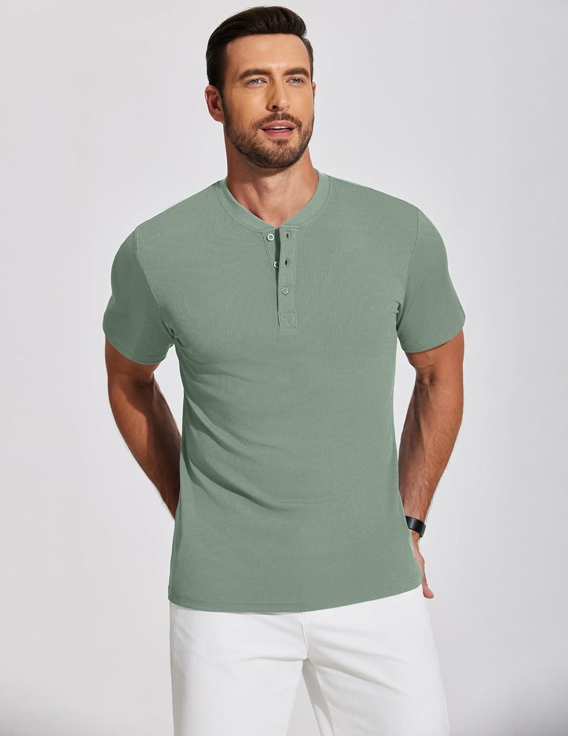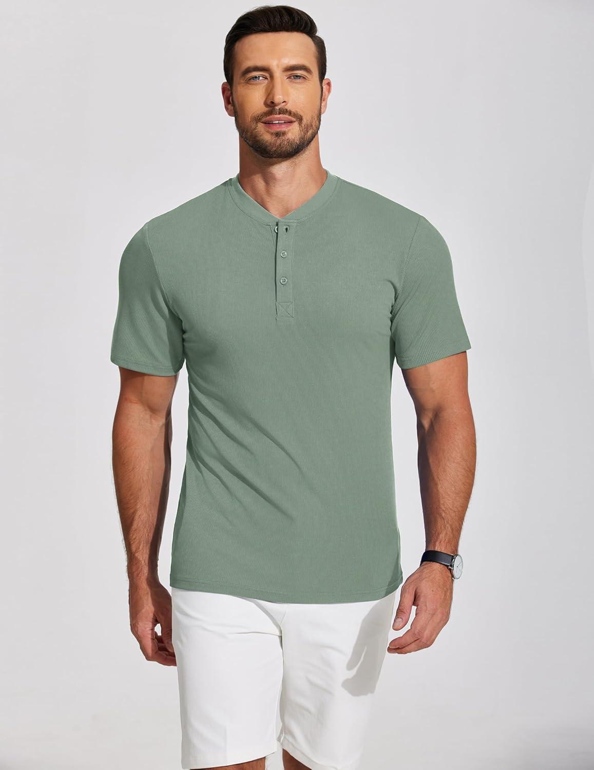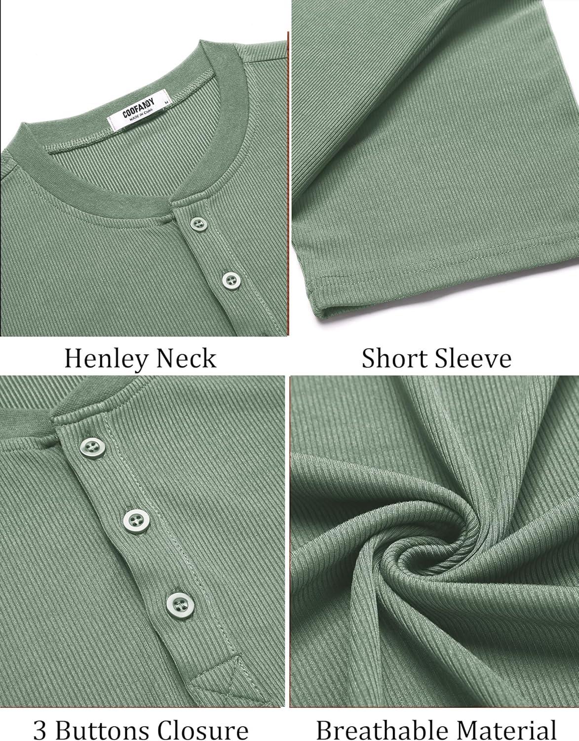 COOFANDY Mens Henley Shirts Short Sleeve Casual Button Down Shirts Lightweight Summer Basic Tee(Gray Green)