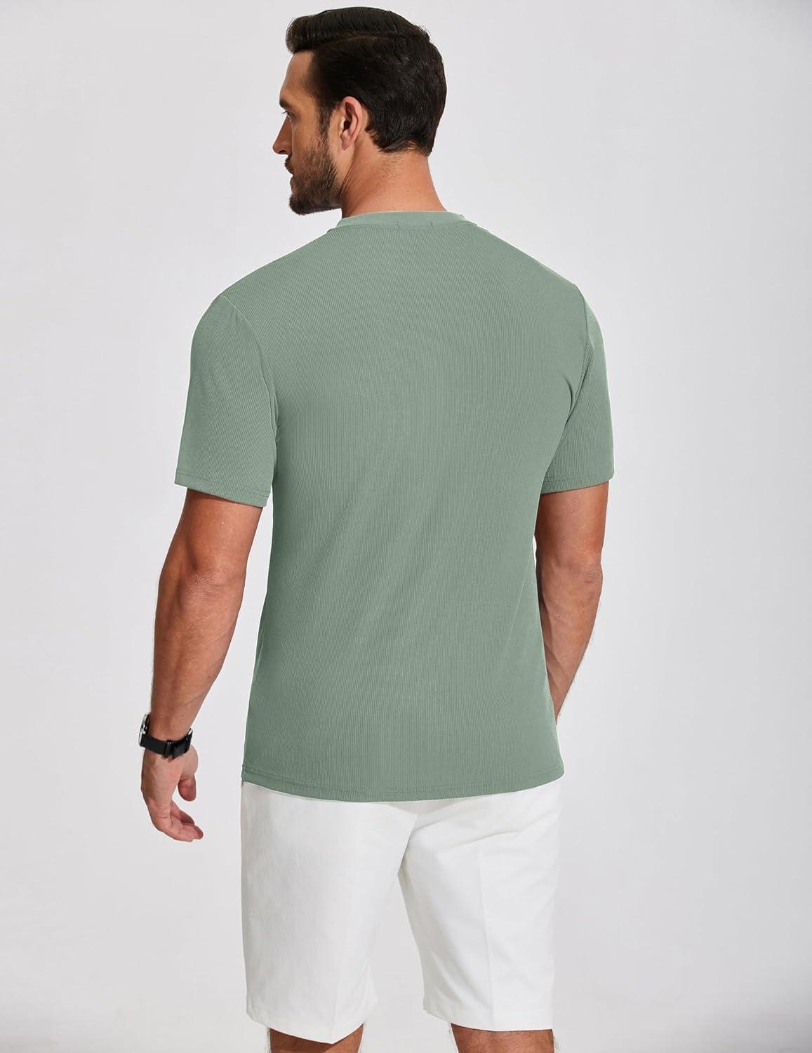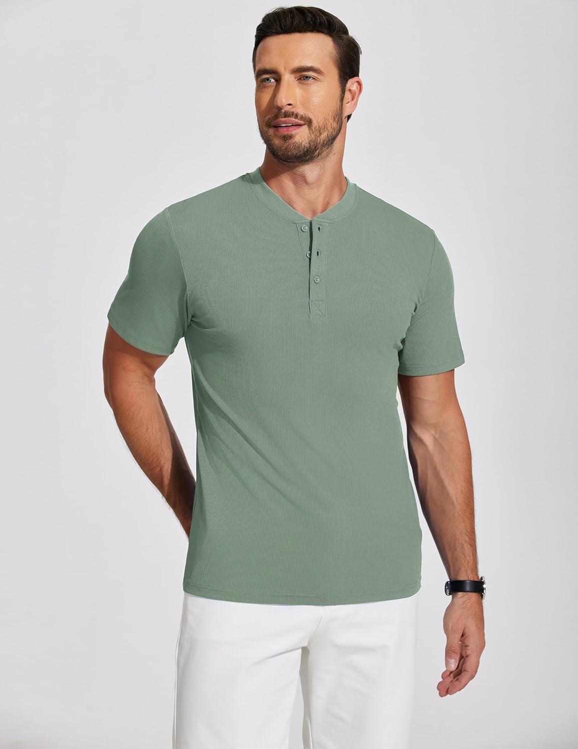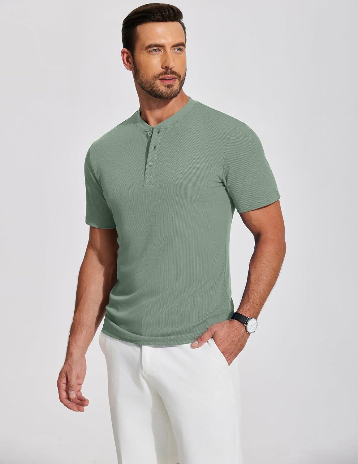 COOFANDY Mens Henley Shirts Short Sleeve Casual Button Down Shirts Lightweight Summer Basic Tee(Gray Green)
