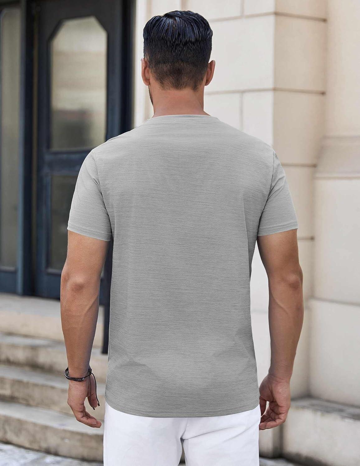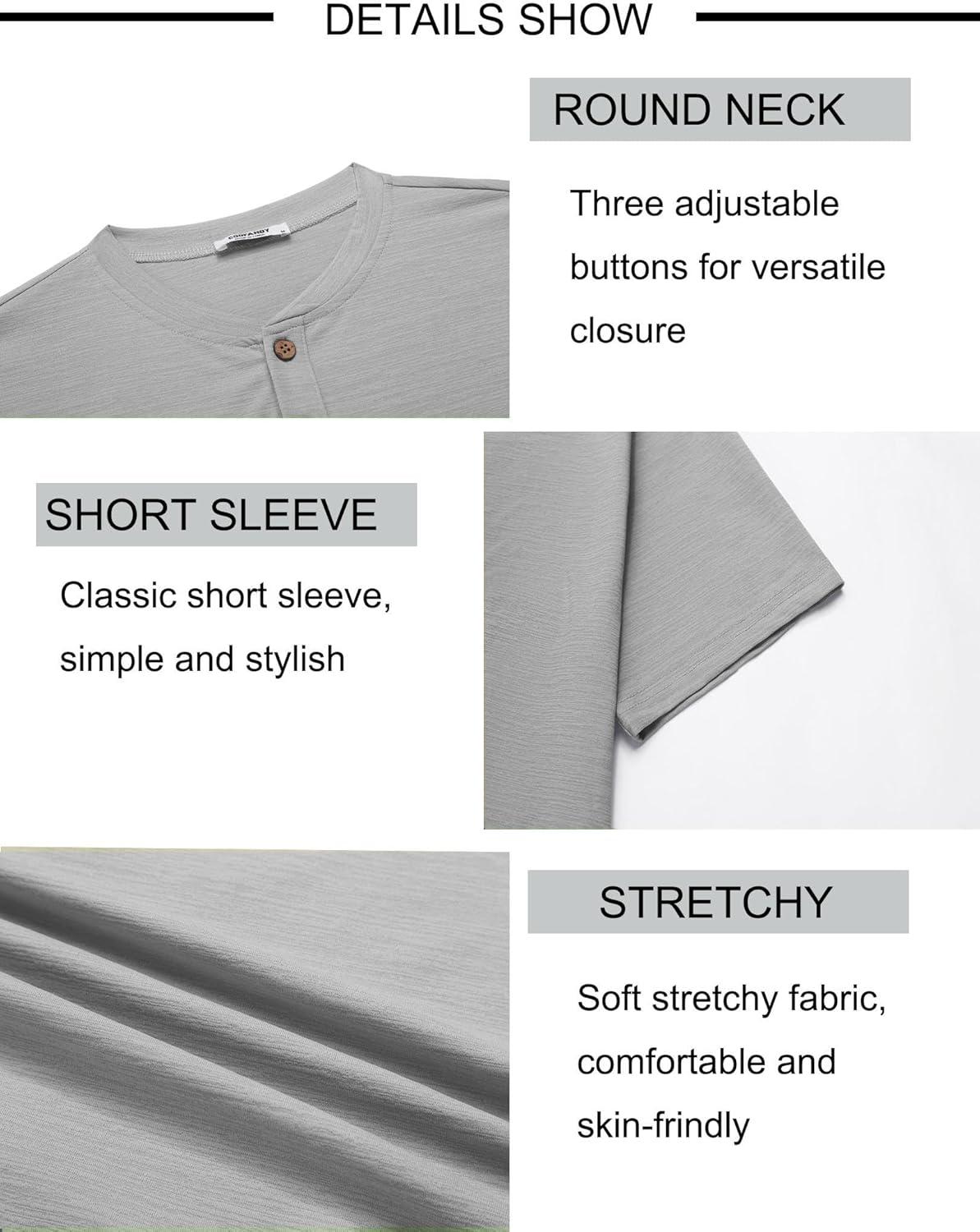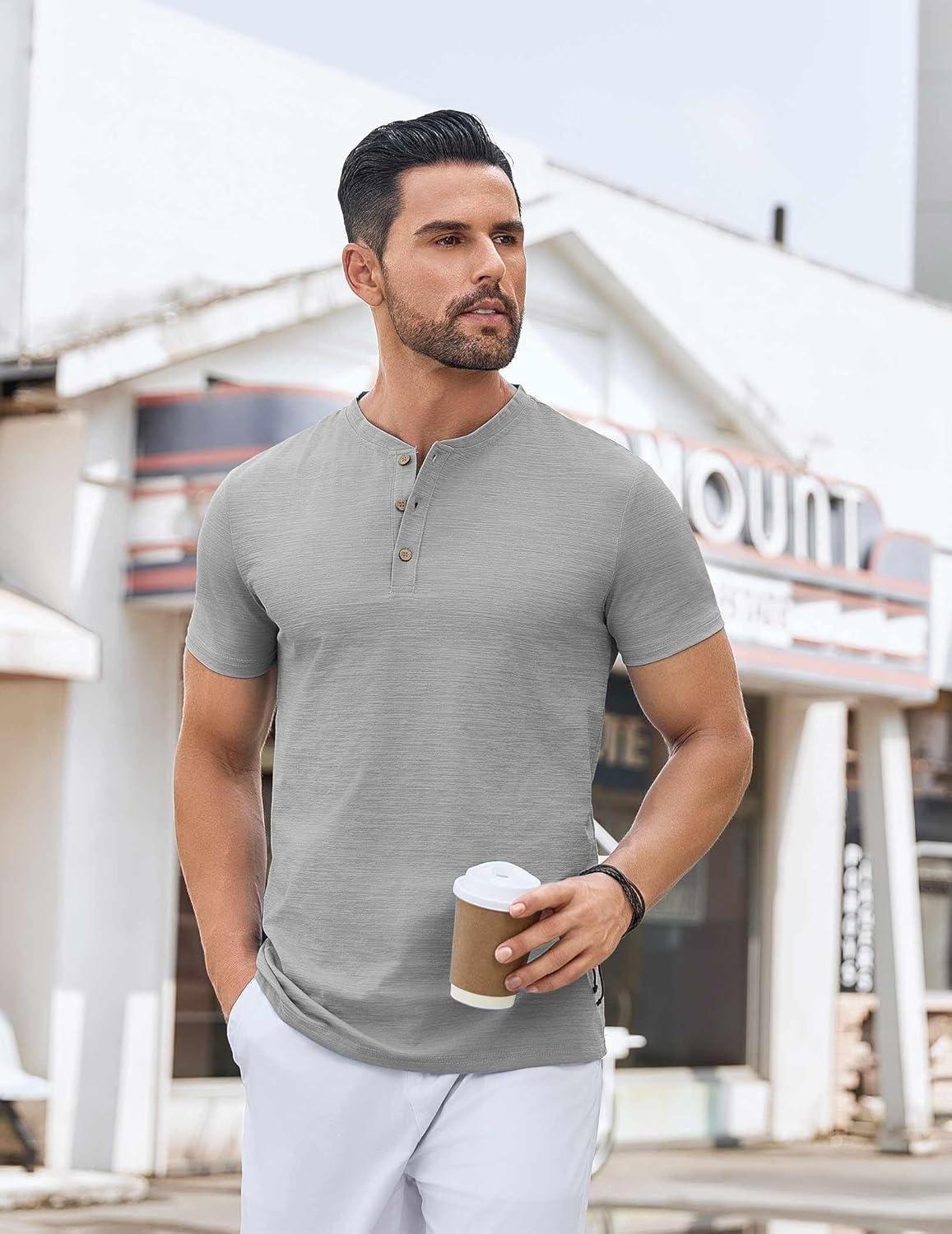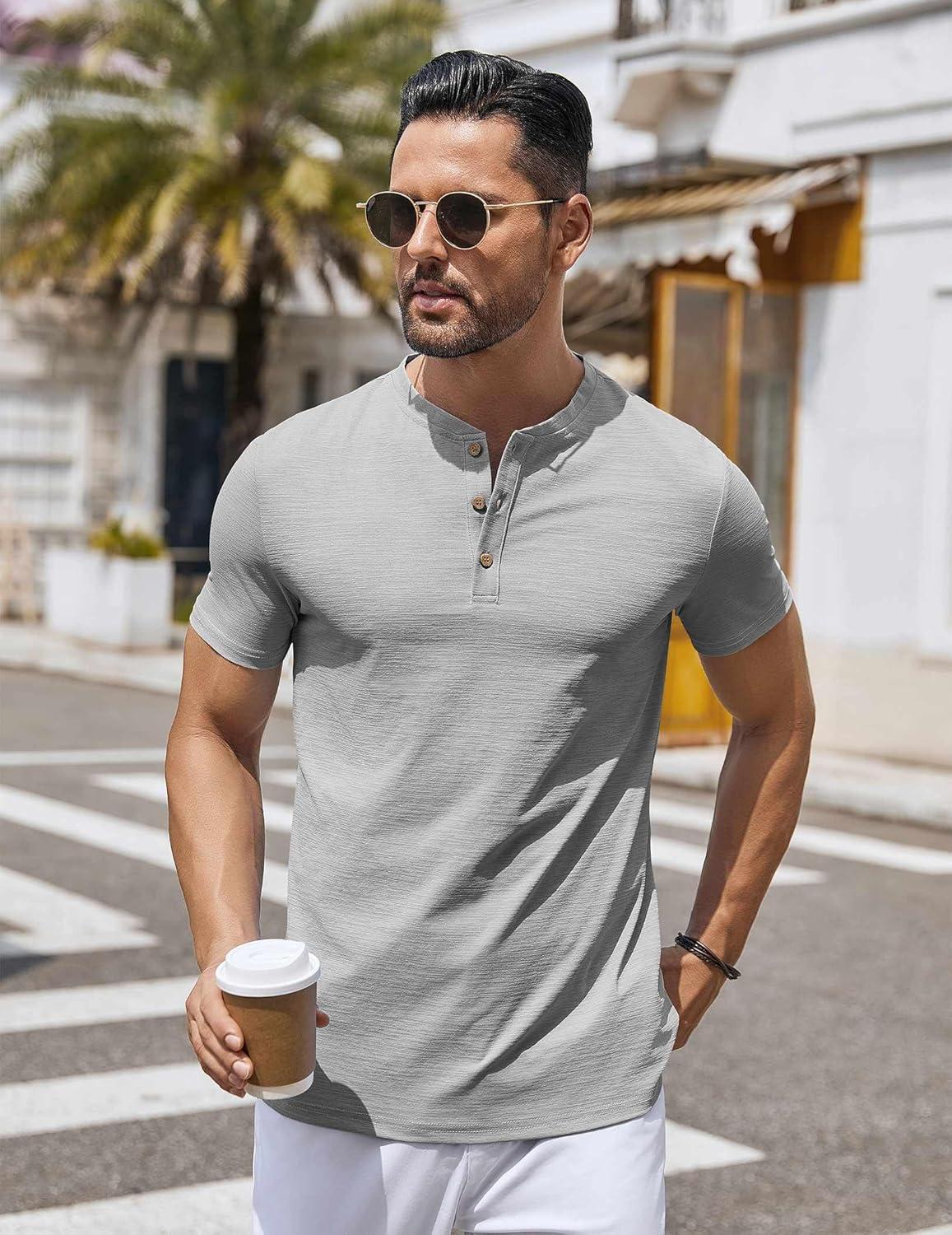 COOFANDY Mens Henley Shirts Short Sleeve Casual Button Down Shirts Lightweight Summer Basic Tee(Grey)
