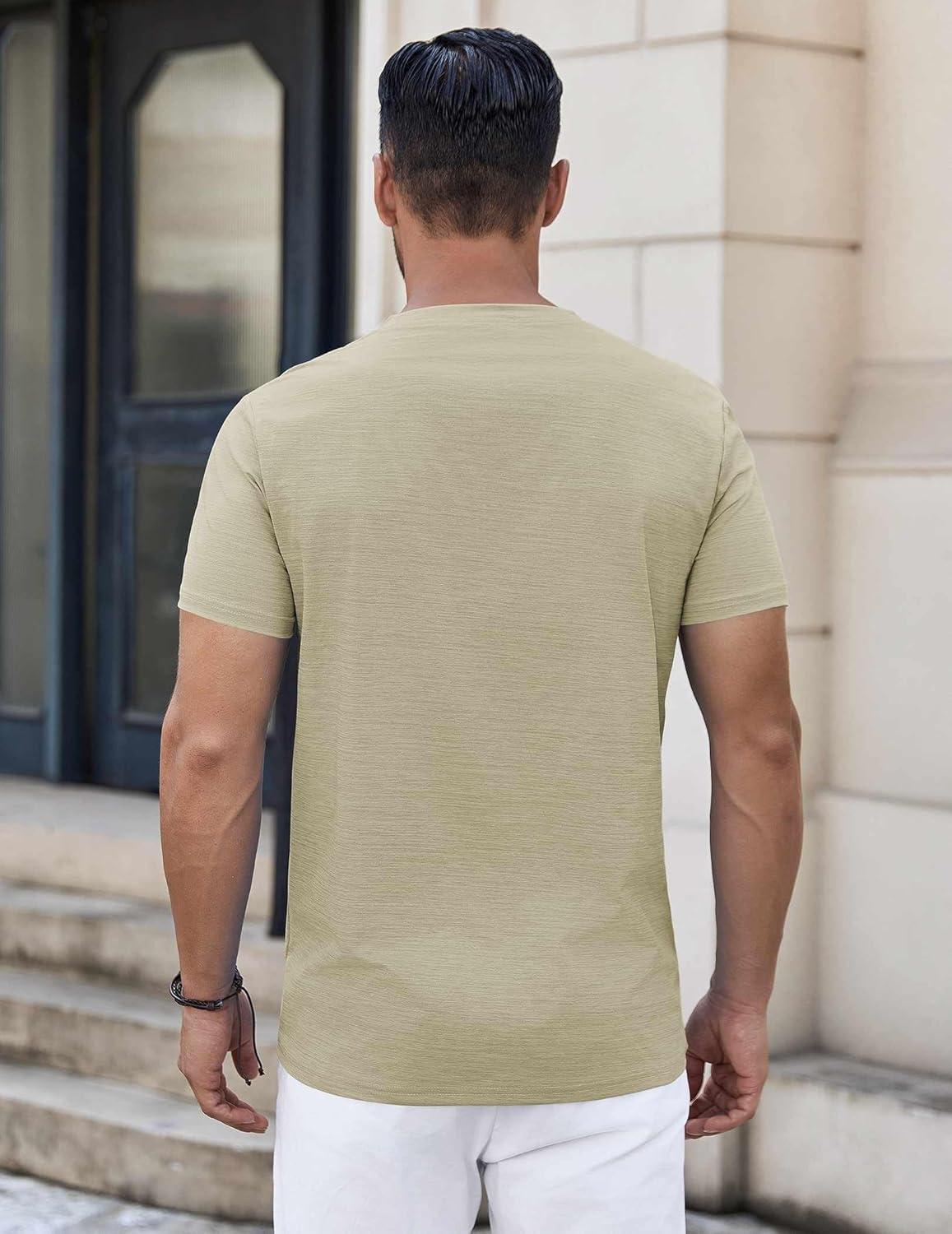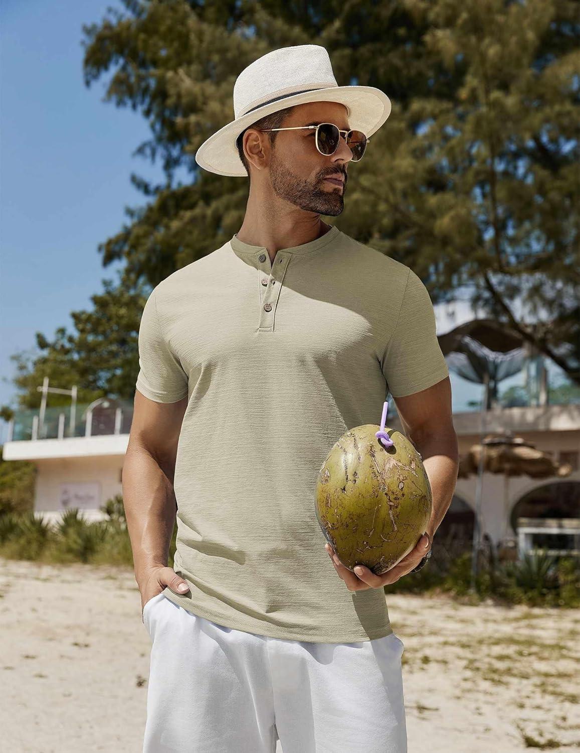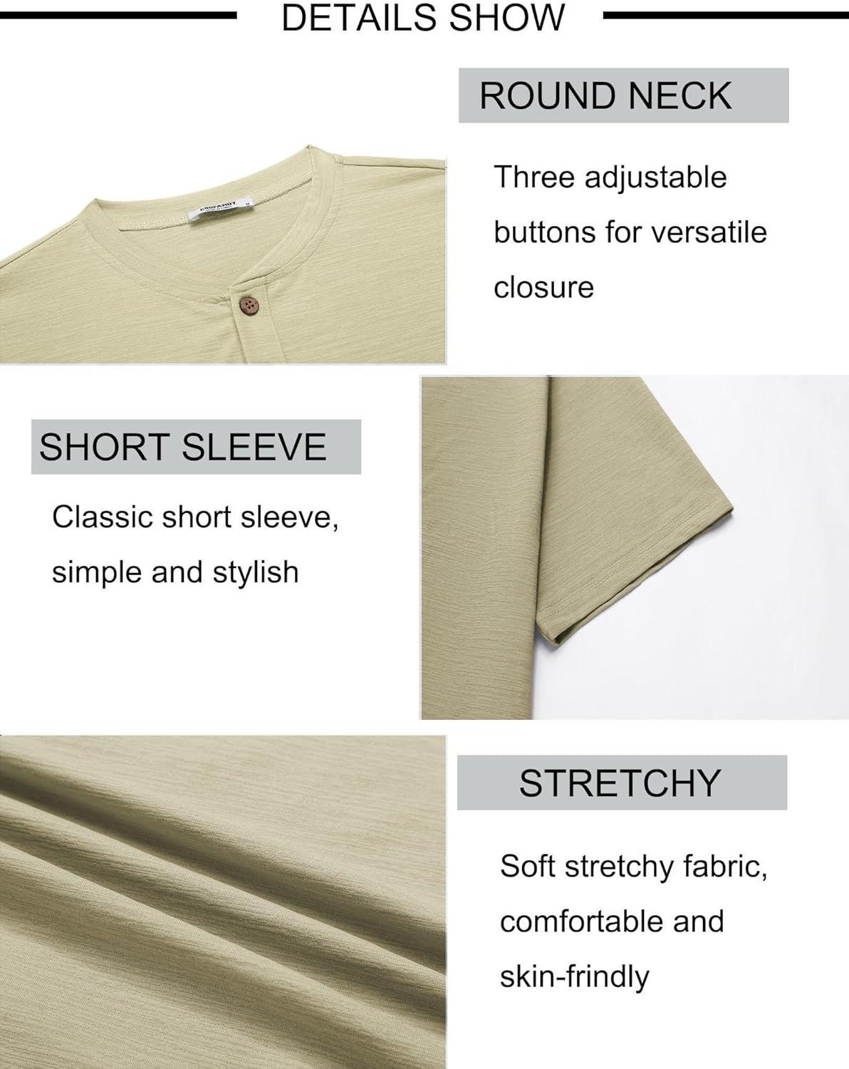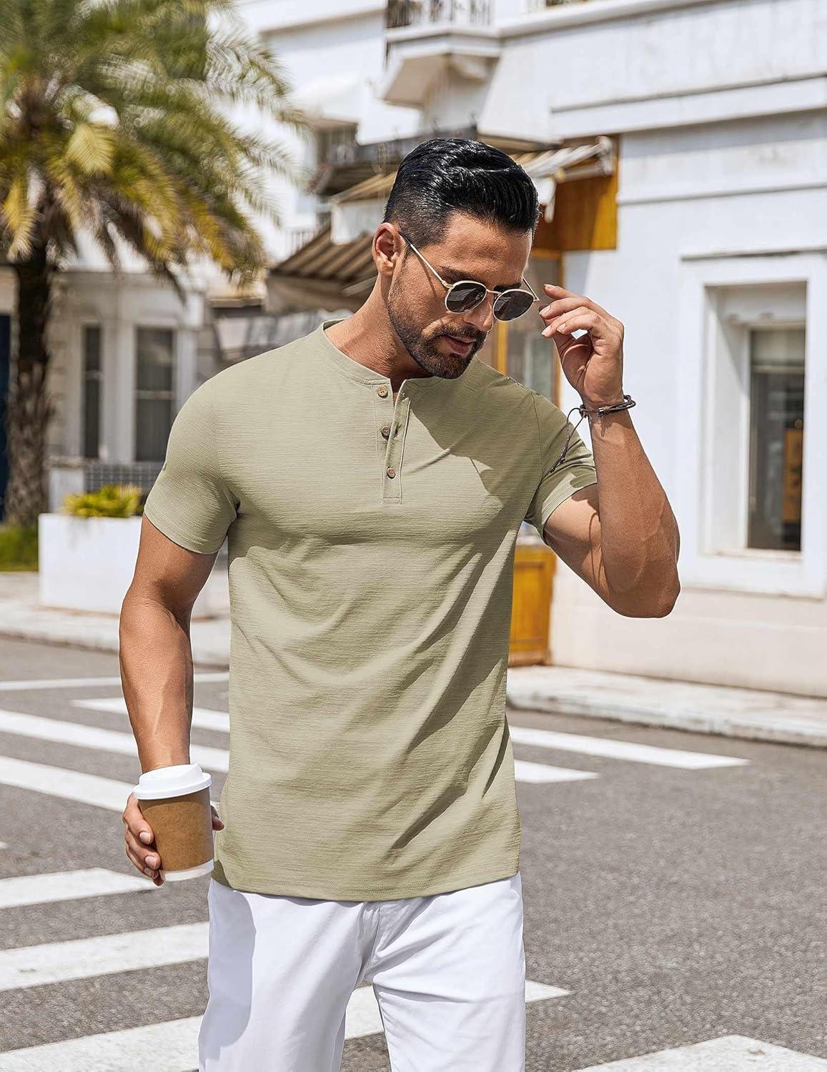 COOFANDY Mens Henley Shirts Short Sleeve Casual Button Down Shirts Lightweight Summer Basic Tee(Khaki)