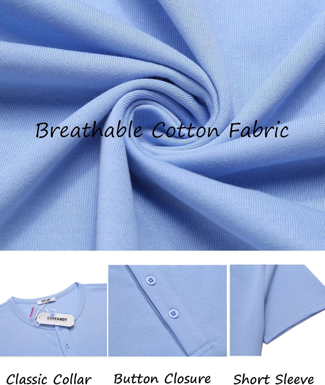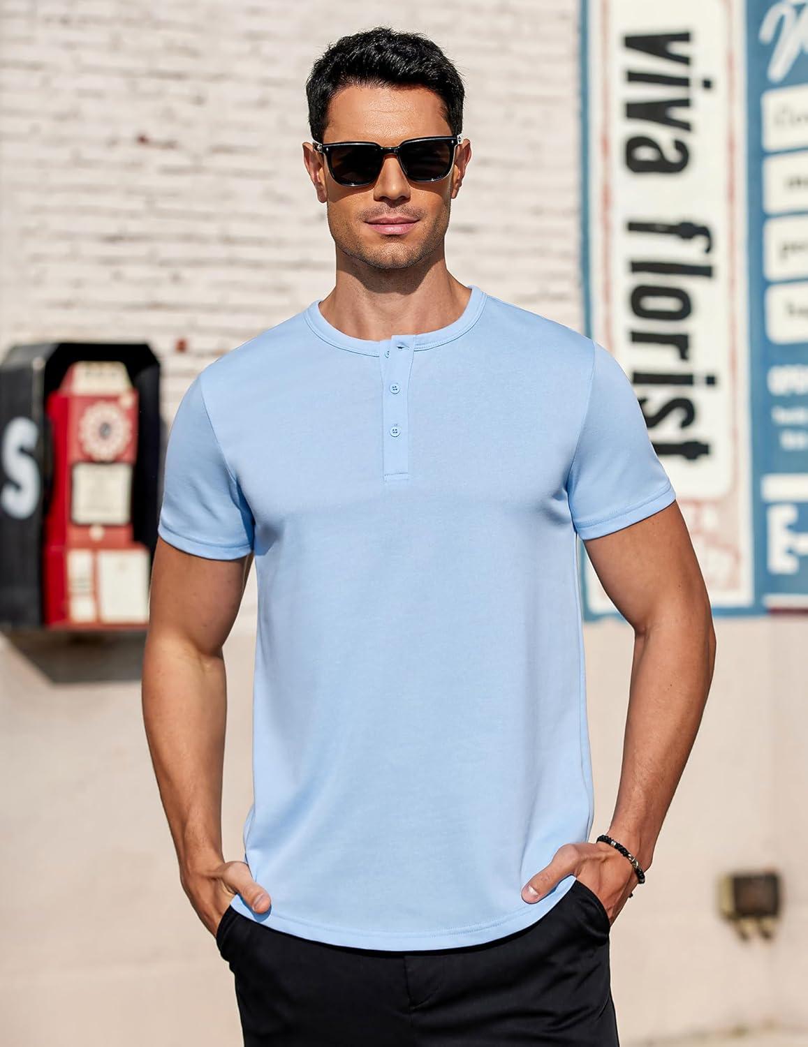 COOFANDY Mens Henley Shirts Short Sleeve Casual Button Down Shirts Lightweight Summer Basic Tee(Light Blue)