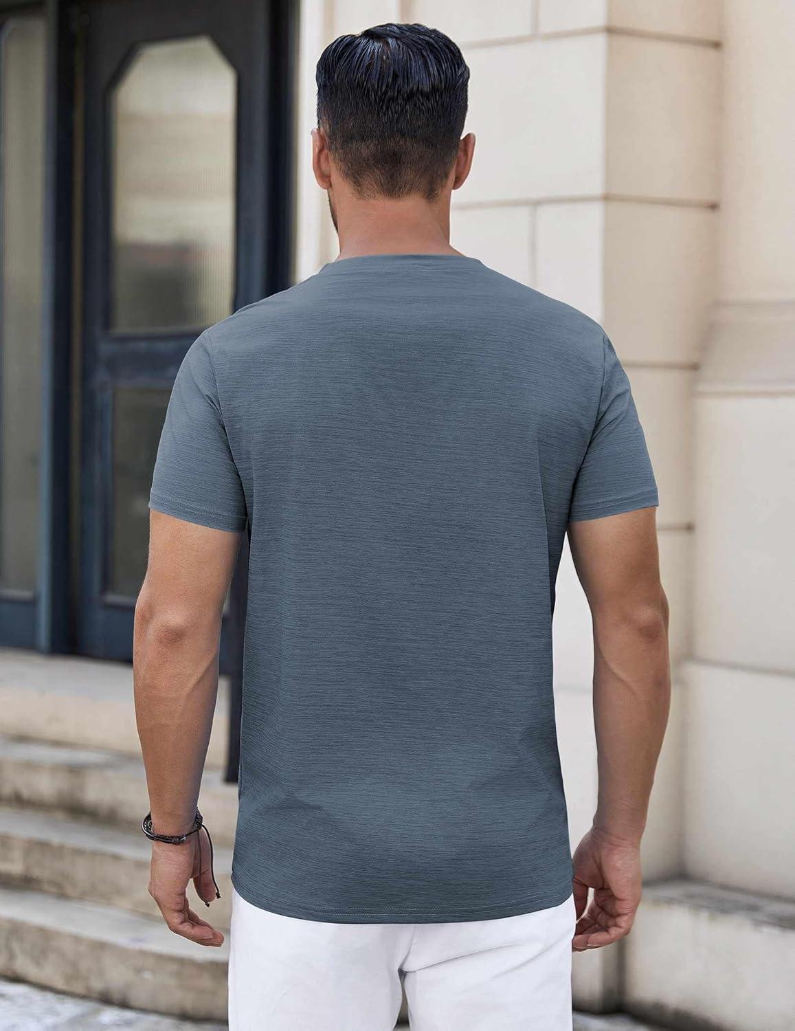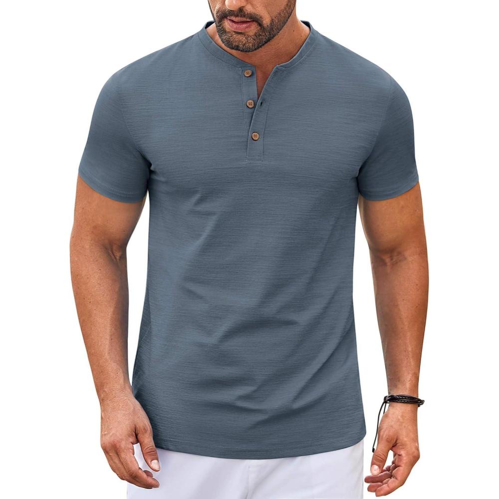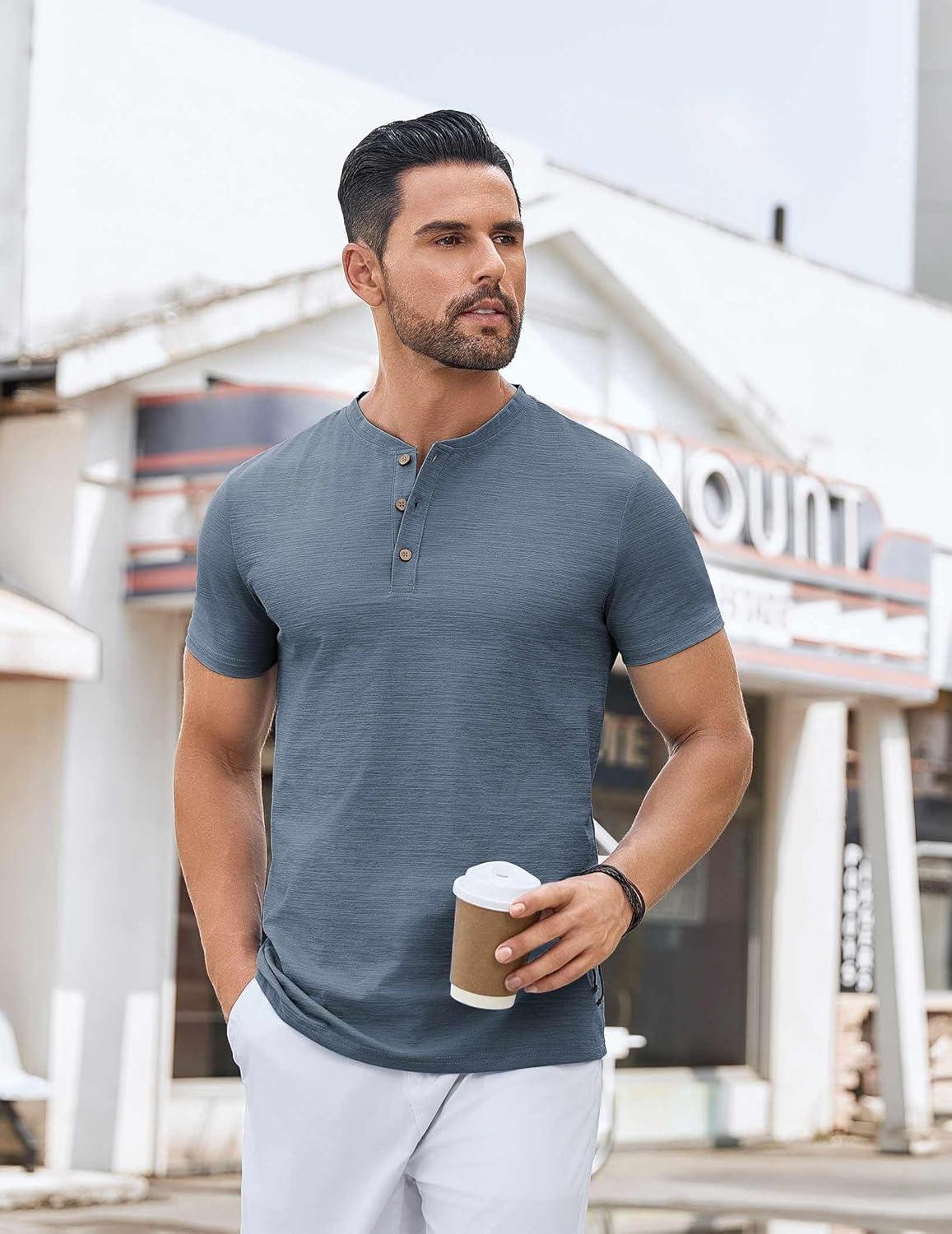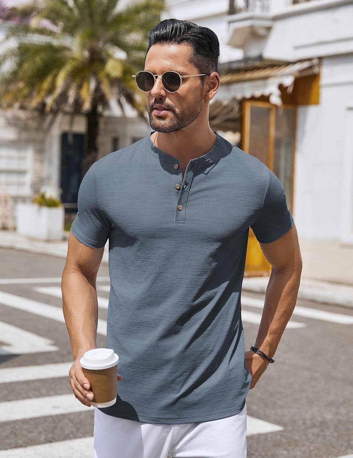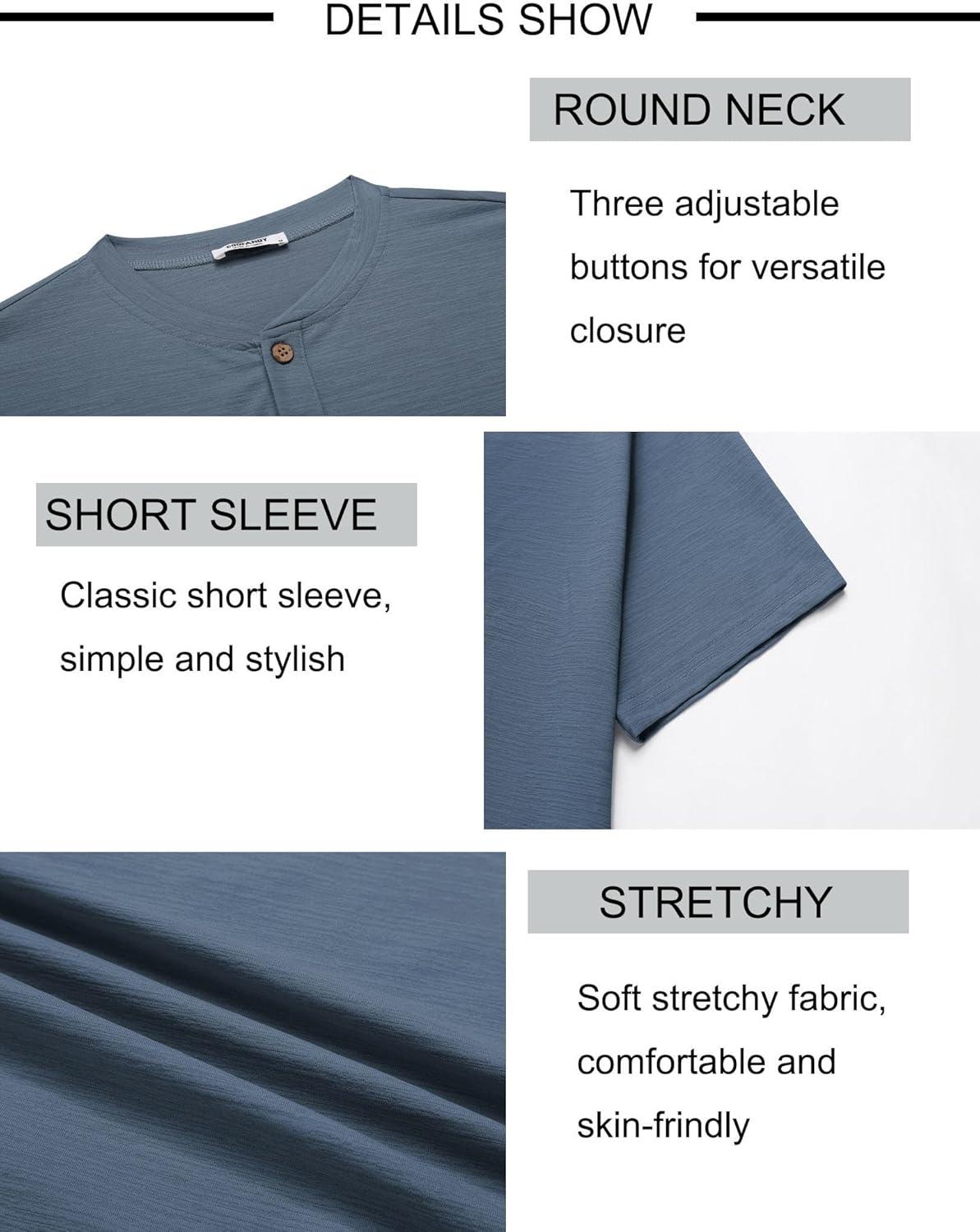 COOFANDY Mens Henley Shirts Short Sleeve Casual Button Down Shirts Lightweight Summer Basic Tee(Midnight Blue)