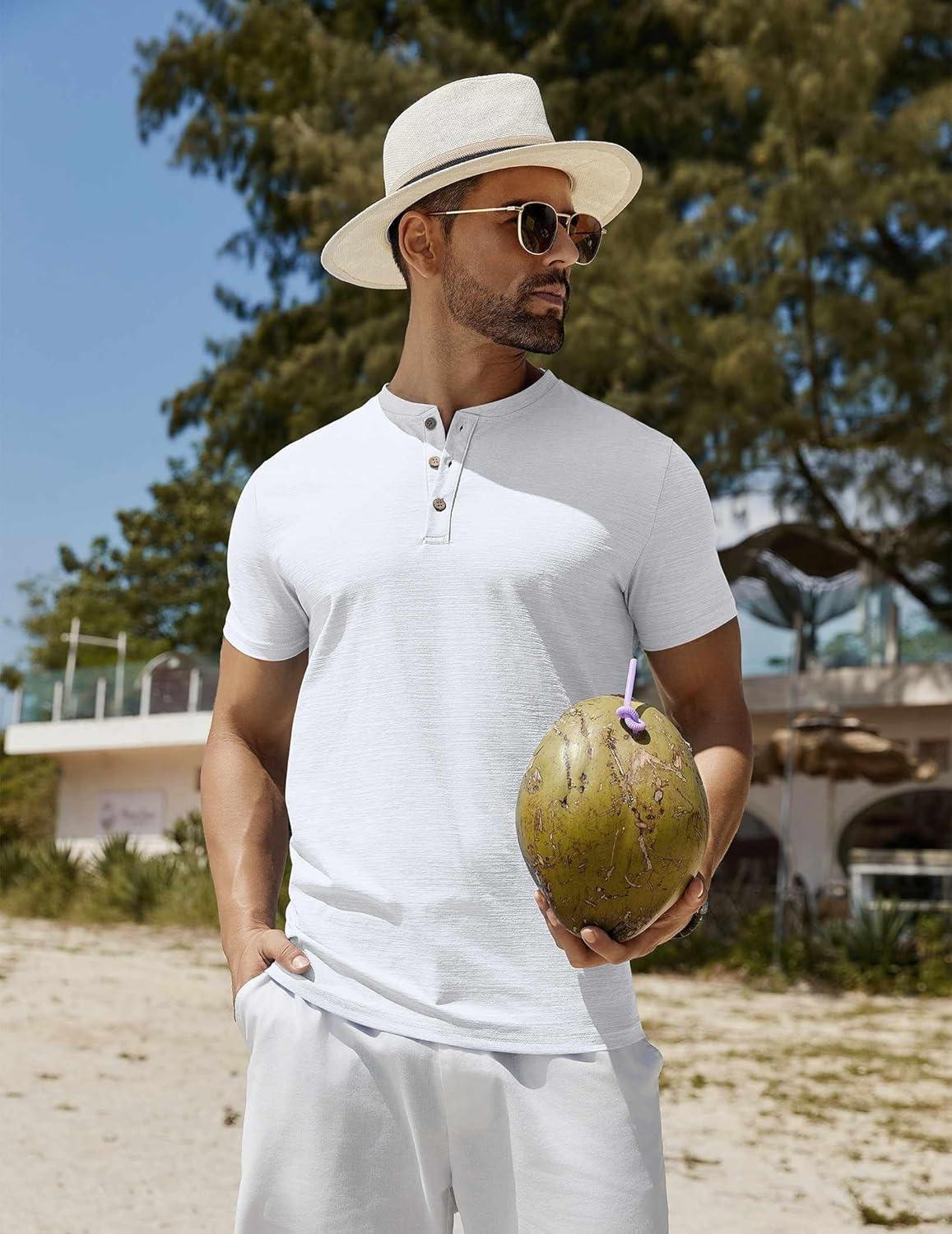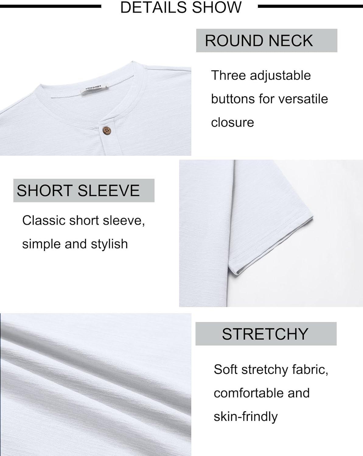 COOFANDY Mens Henley Shirts Short Sleeve Casual Button Down Shirts Lightweight Summer Basic Tee(White)