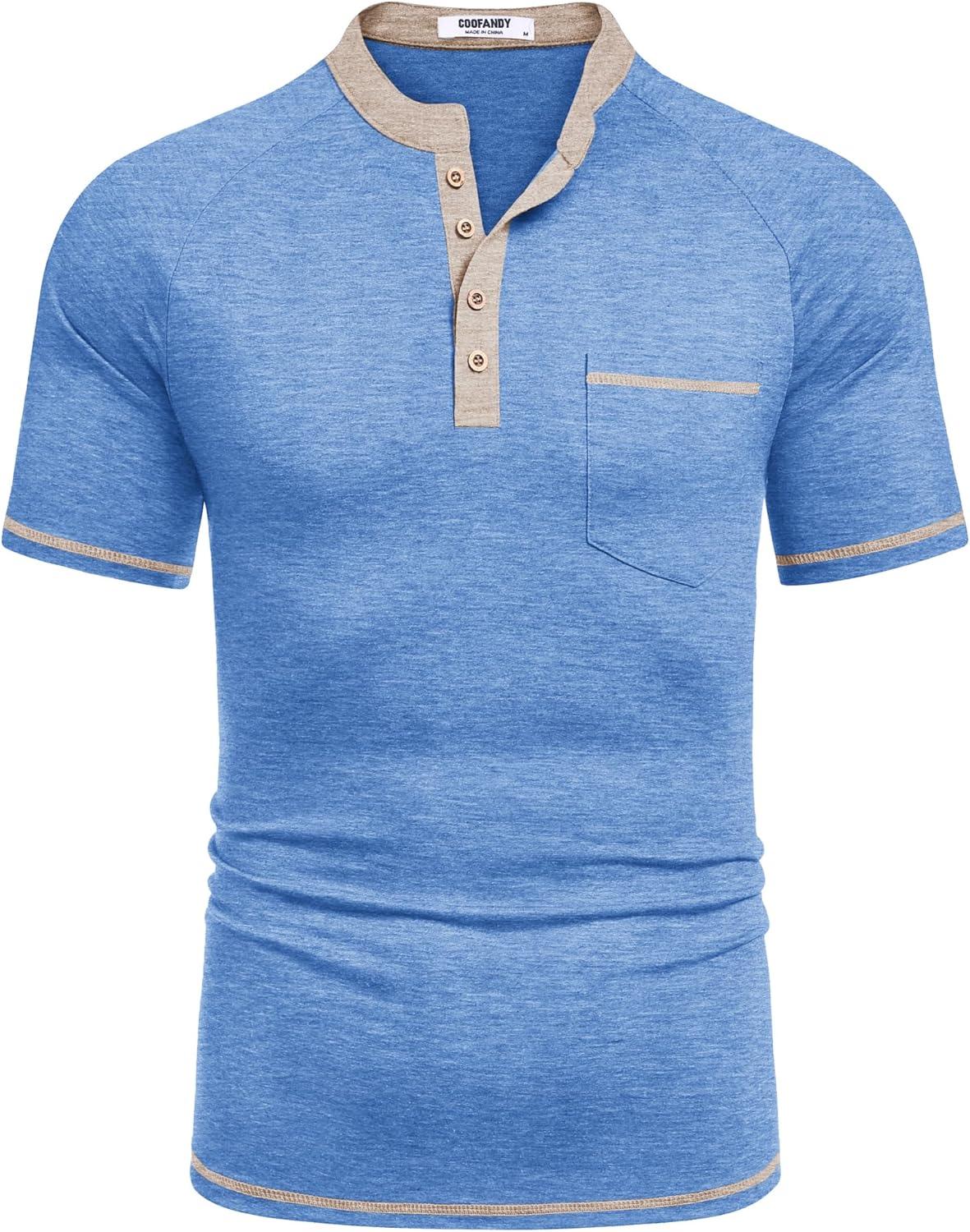 COOFANDY Mens Henley Shirts Short Sleeve Casual Button T-Shirts Basic Tee Shirts Summer Vintage T Shirts with Pocket(Blue)