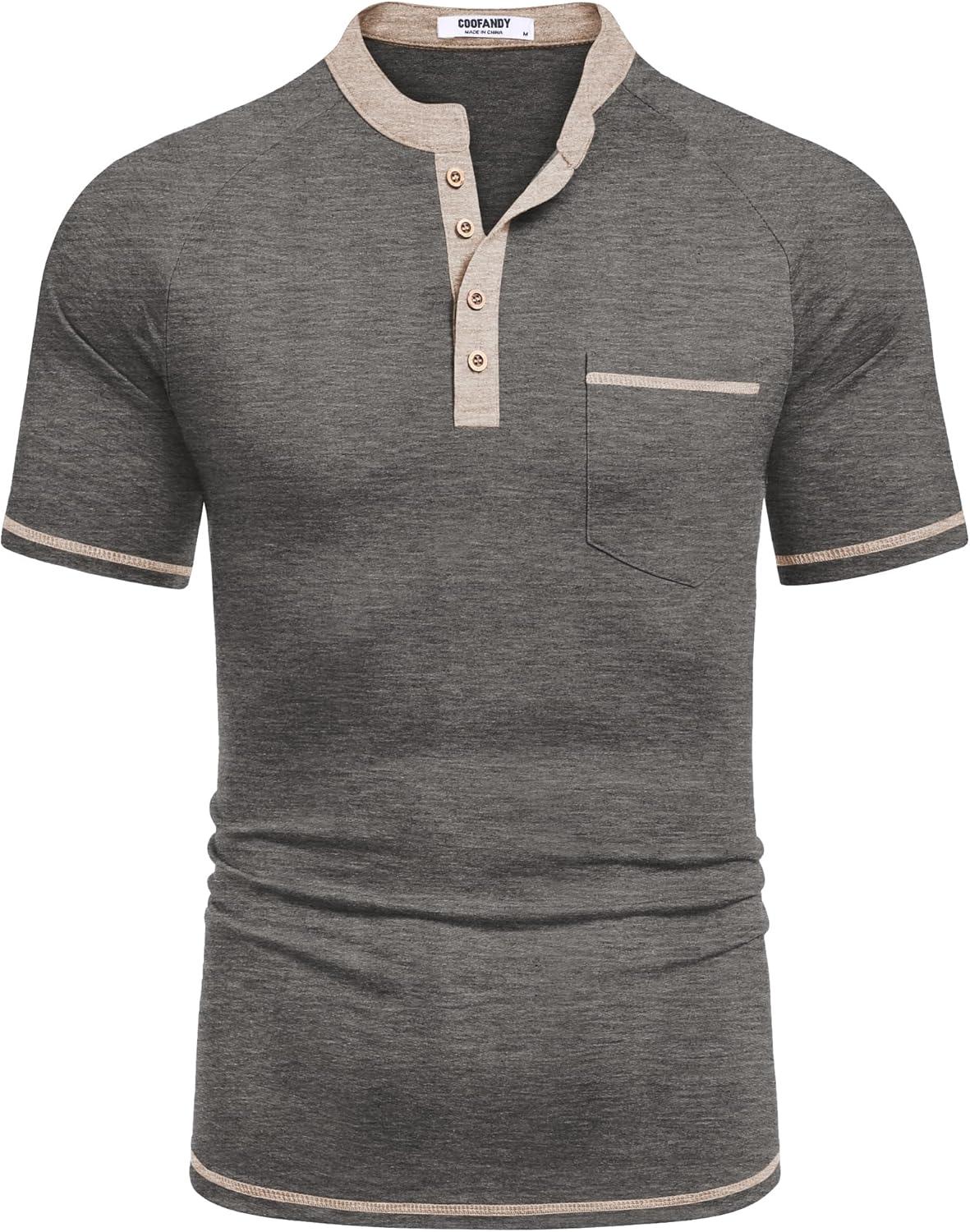 COOFANDY Mens Henley Shirts Short Sleeve Casual Button T-Shirts Basic Tee Shirts Summer Vintage T Shirts with Pocket(Dark Grey)