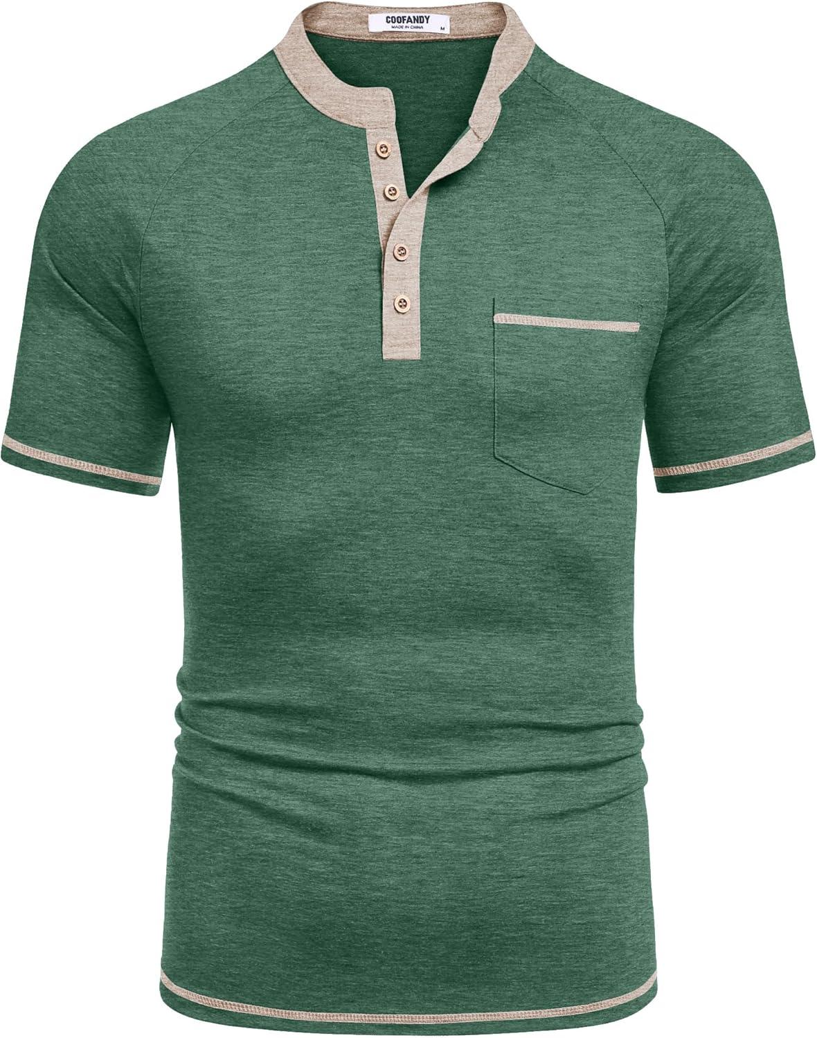 COOFANDY Mens Henley Shirts Short Sleeve Casual Button T-Shirts Basic Tee Shirts Summer Vintage T Shirts with Pocket(Green)