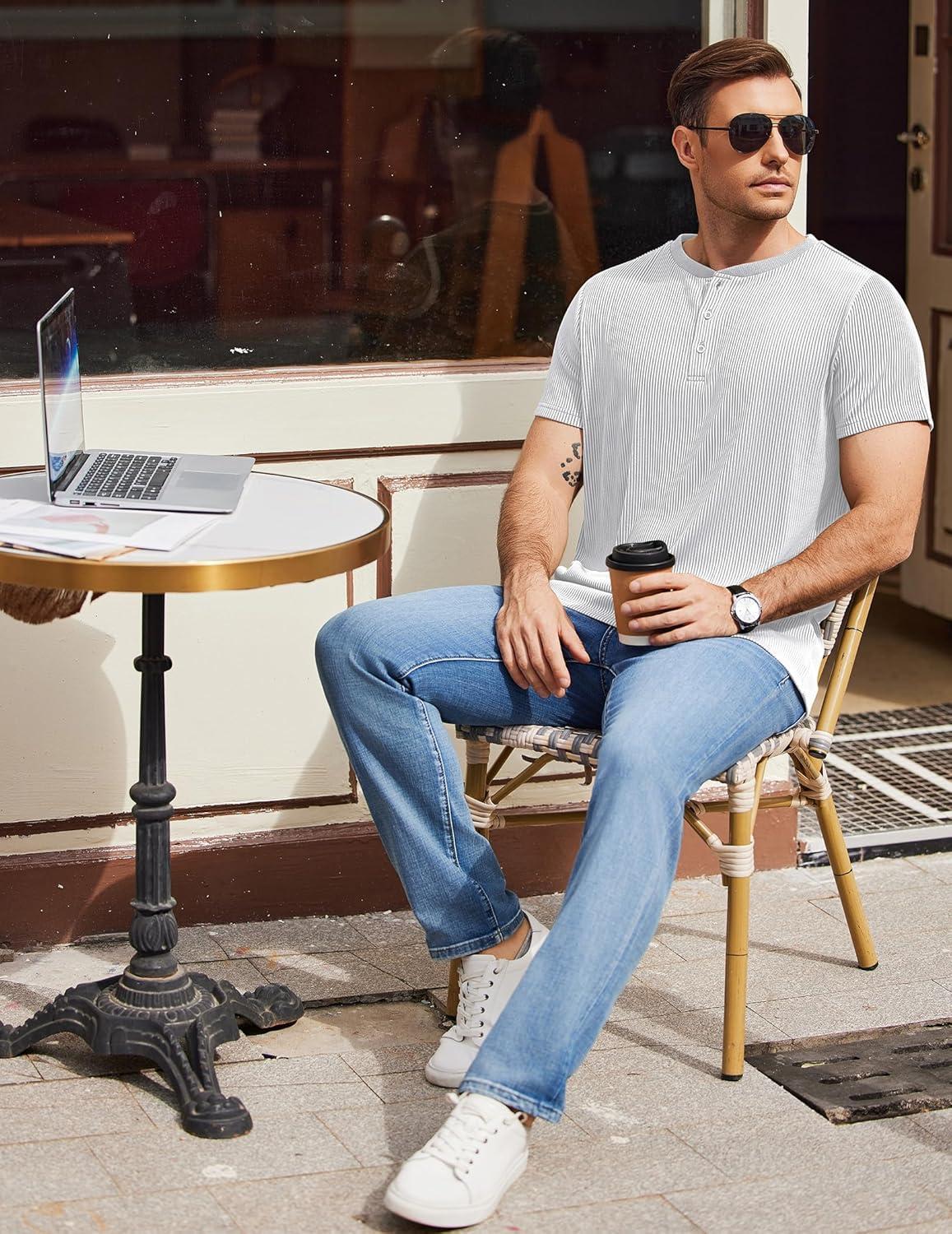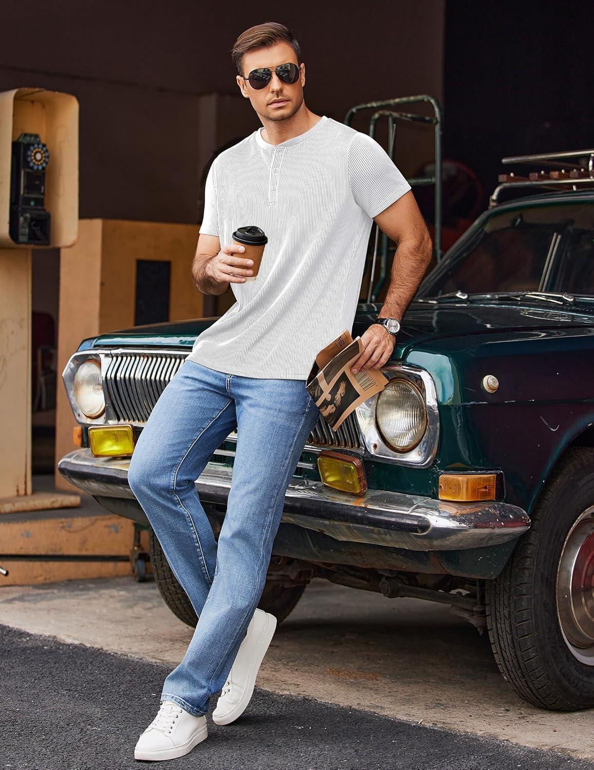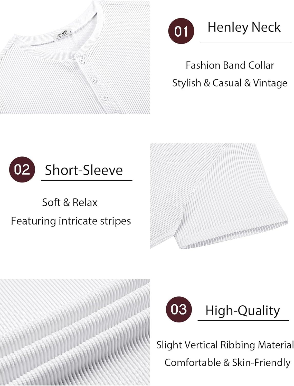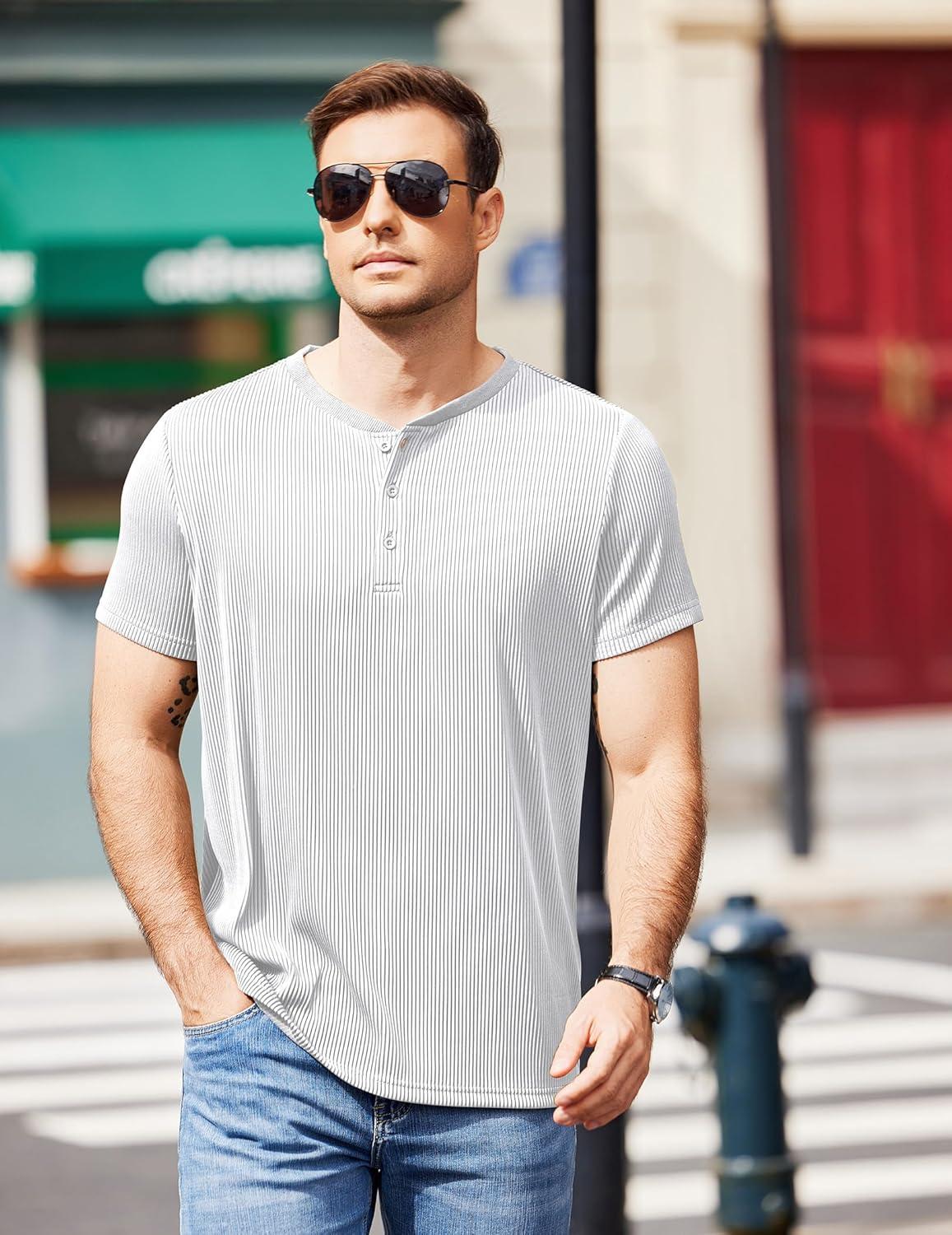 COOFANDY Men’s Henley Shirts Short Sleeve Casual Tee Summer Button Henley Soild T Shirts(White)