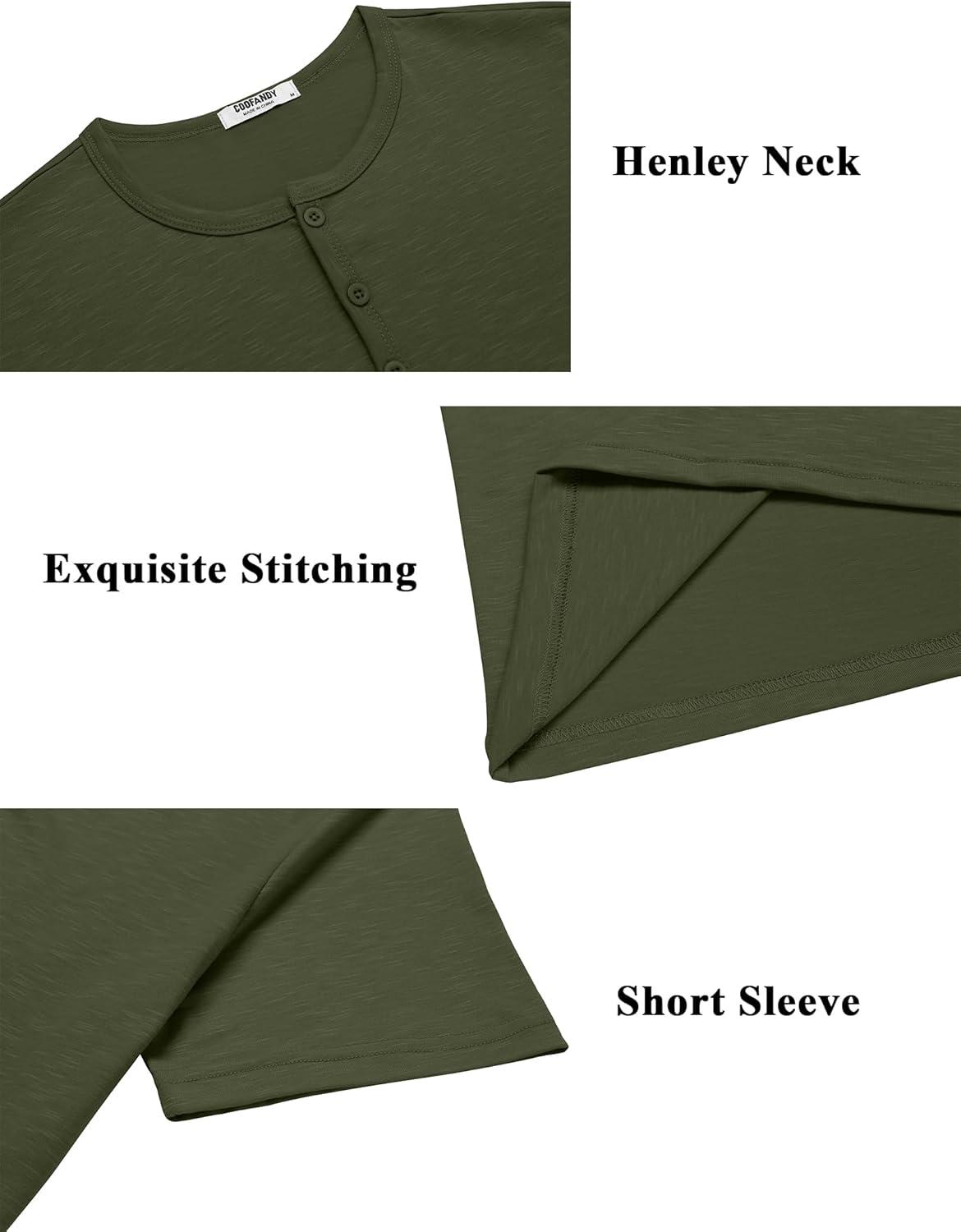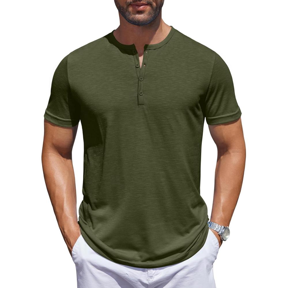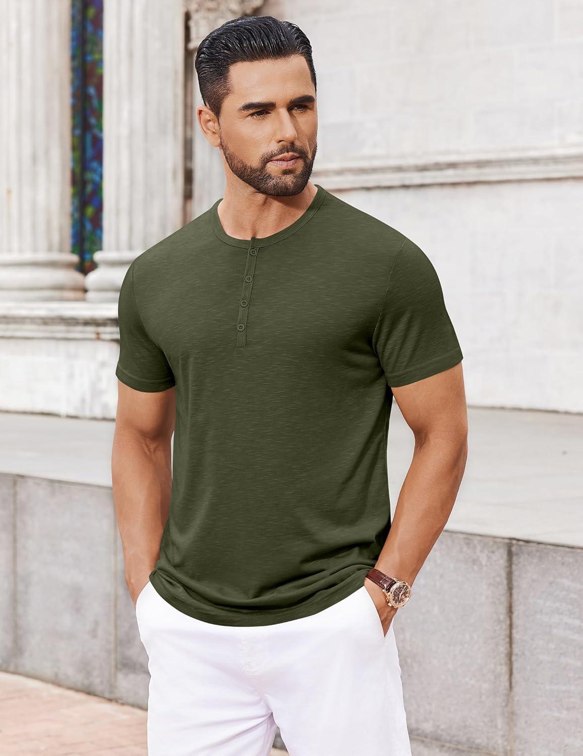 COOFANDY Men’s Henley Shirts Short Sleeve Collarless Button T-Shirt Fashion Casual Basic Tee Tops(Army Green)