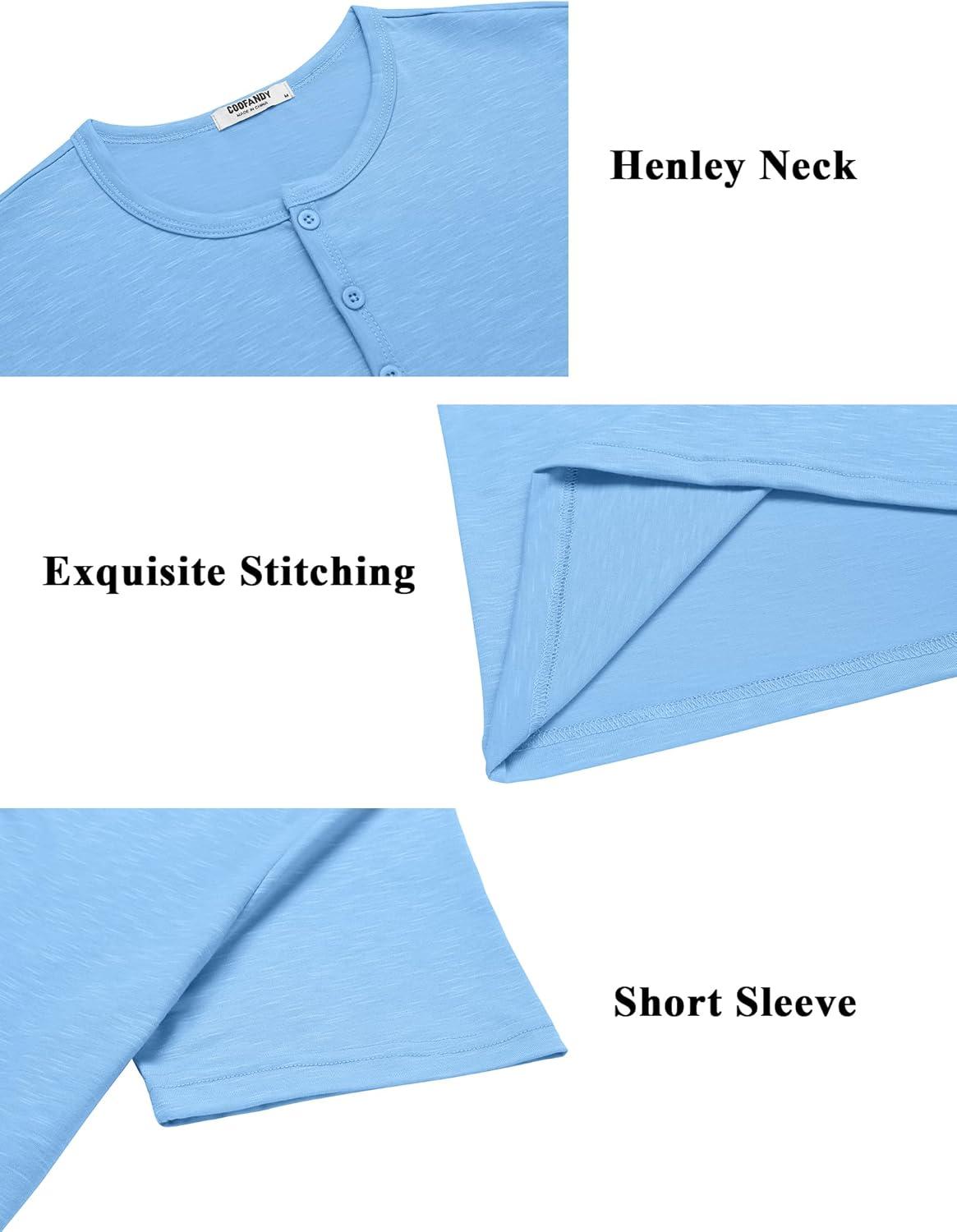 COOFANDY Men’s Henley Shirts Short Sleeve Collarless Button T-Shirt Fashion Casual Basic Tee Tops(Light Blue)
