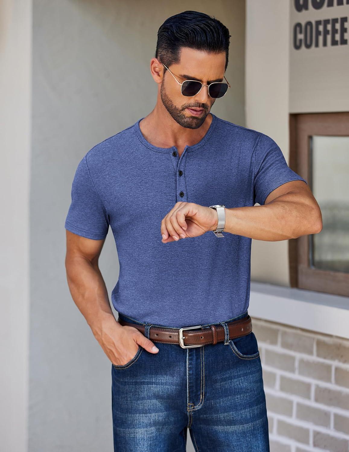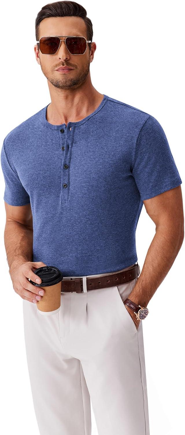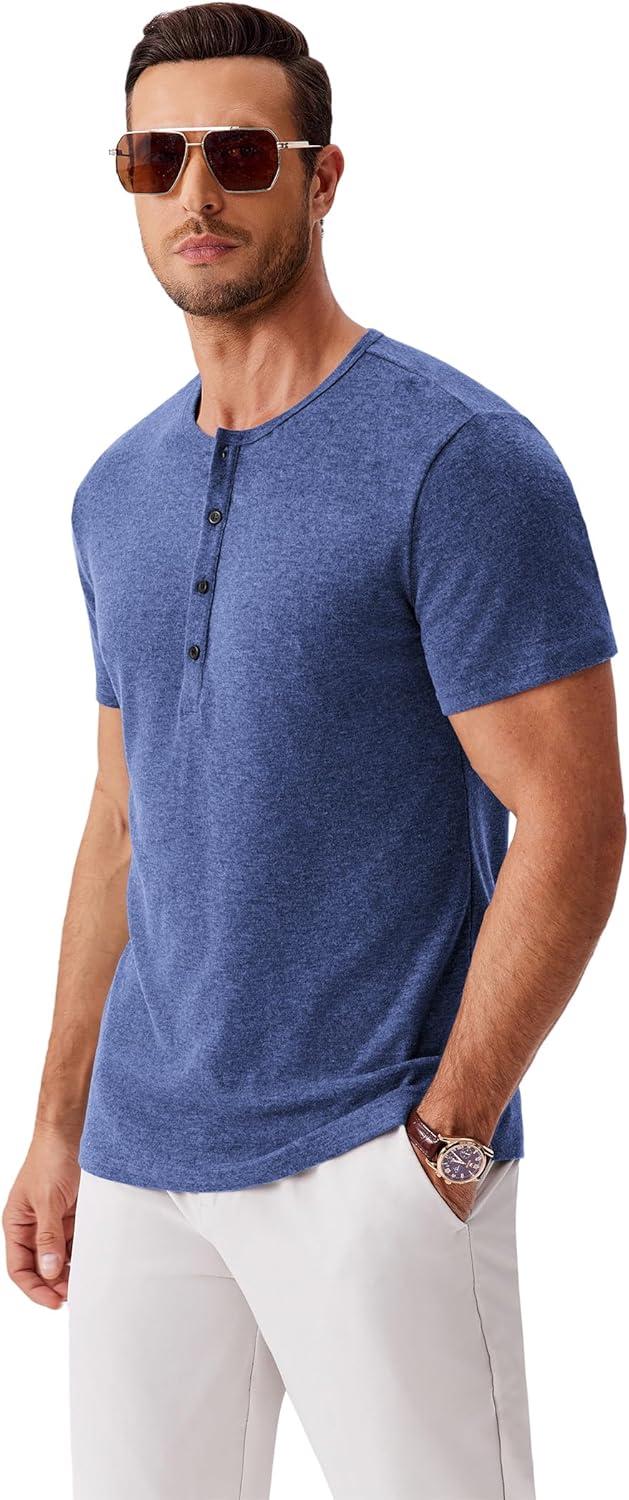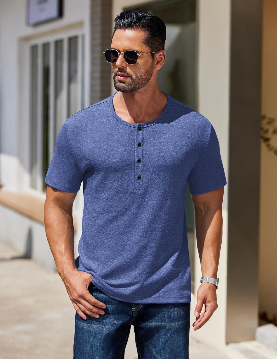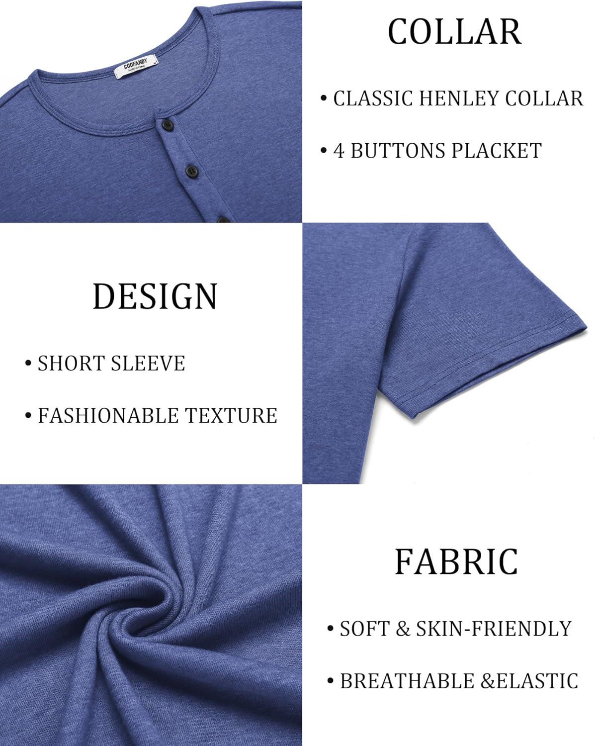 COOFANDY Men’s Henley Shirts Short Sleeve Fashion Casual T-Shirts Summer Button Basic Tee(Azure Blue)