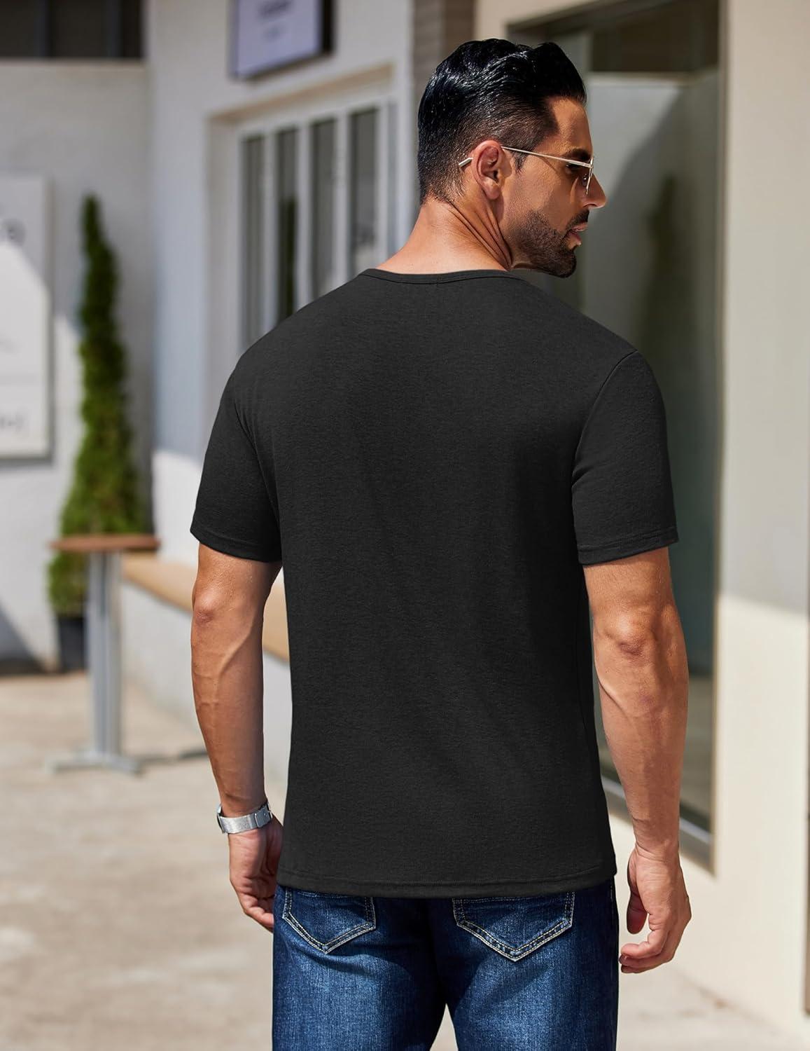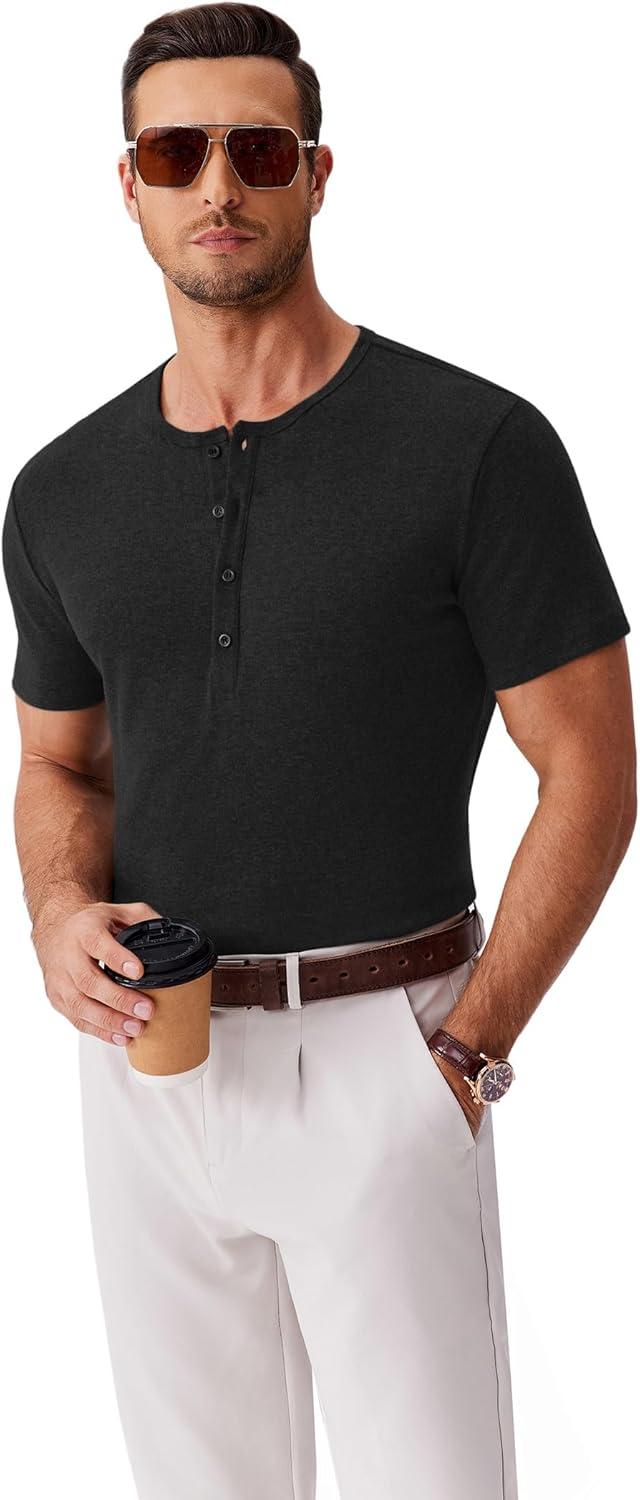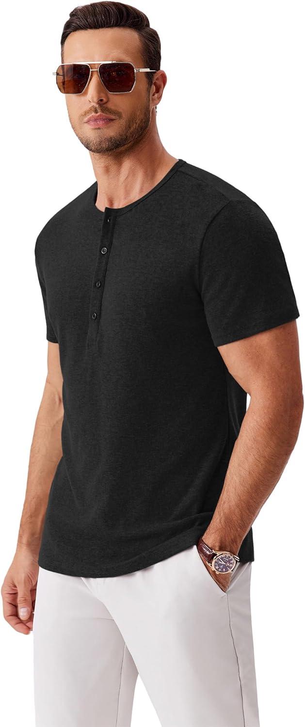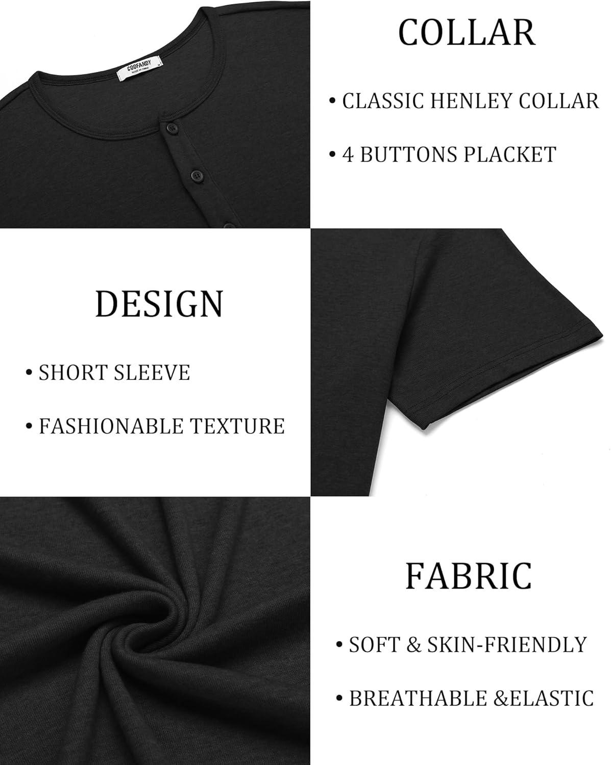 COOFANDY Men’s Henley Shirts Short Sleeve Fashion Casual T-Shirts Summer Button Basic Tee(Black)