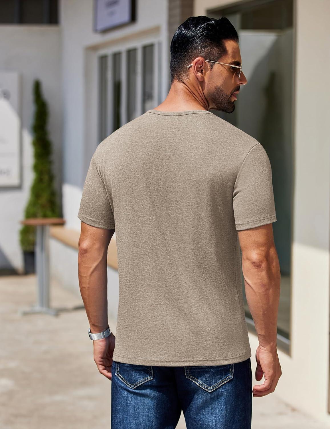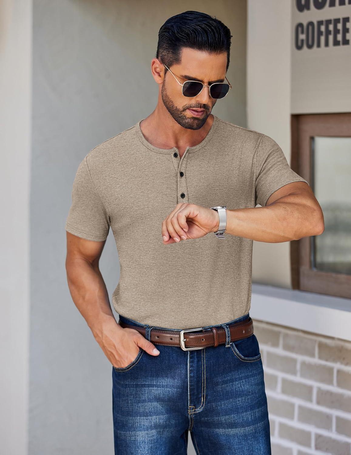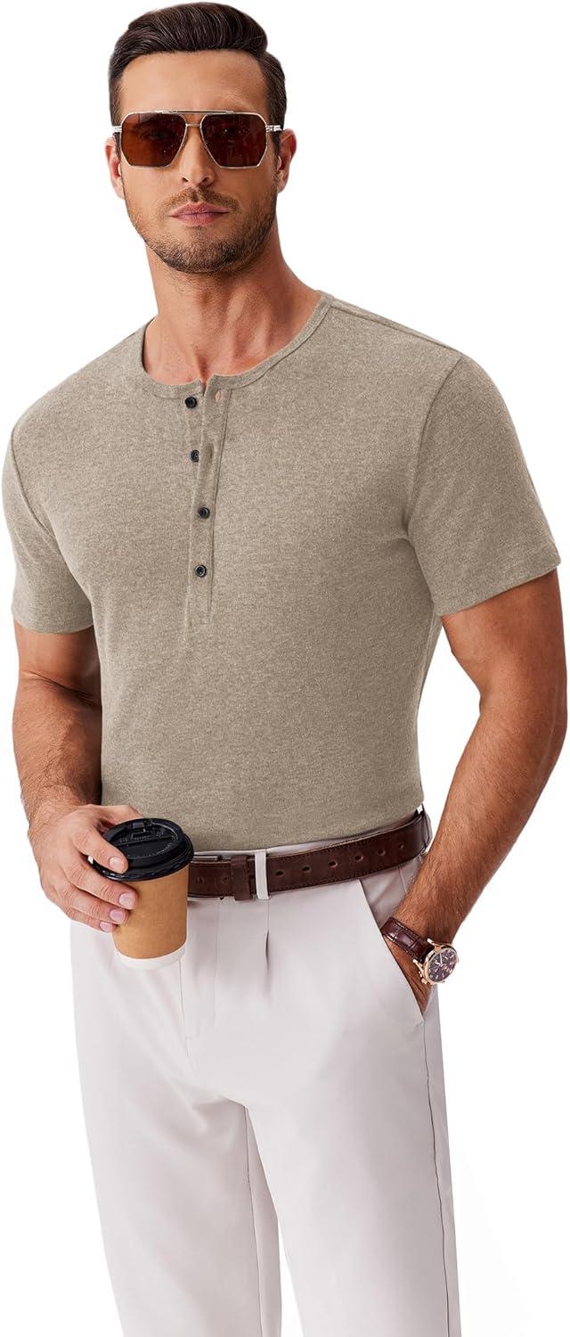 COOFANDY Men’s Henley Shirts Short Sleeve Fashion Casual T-Shirts Summer Button Basic Tee(Khaki)