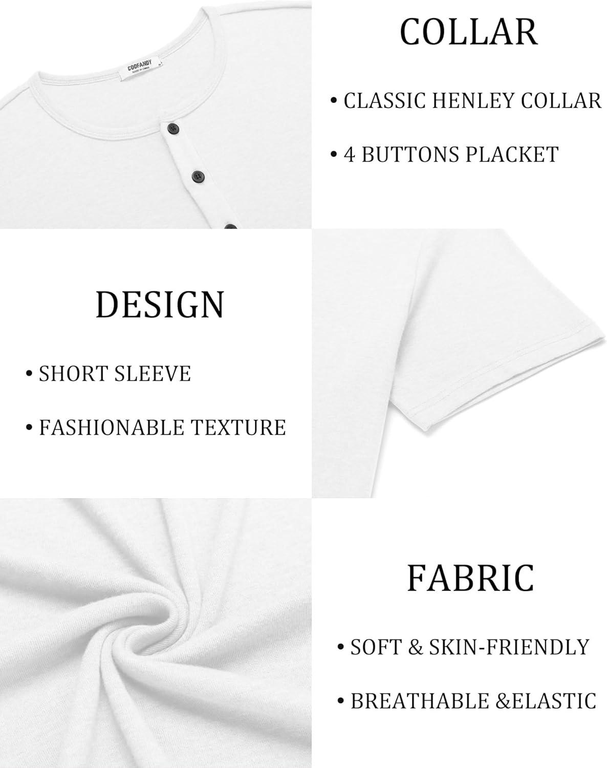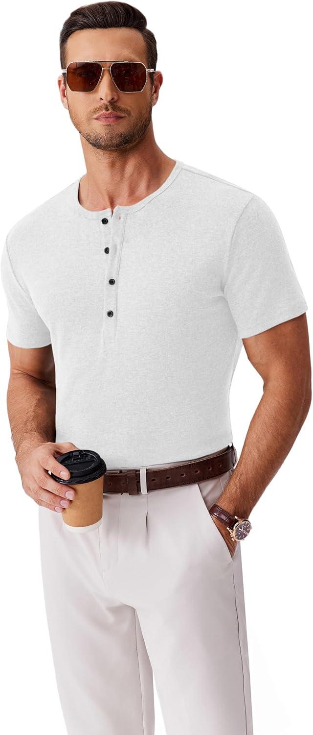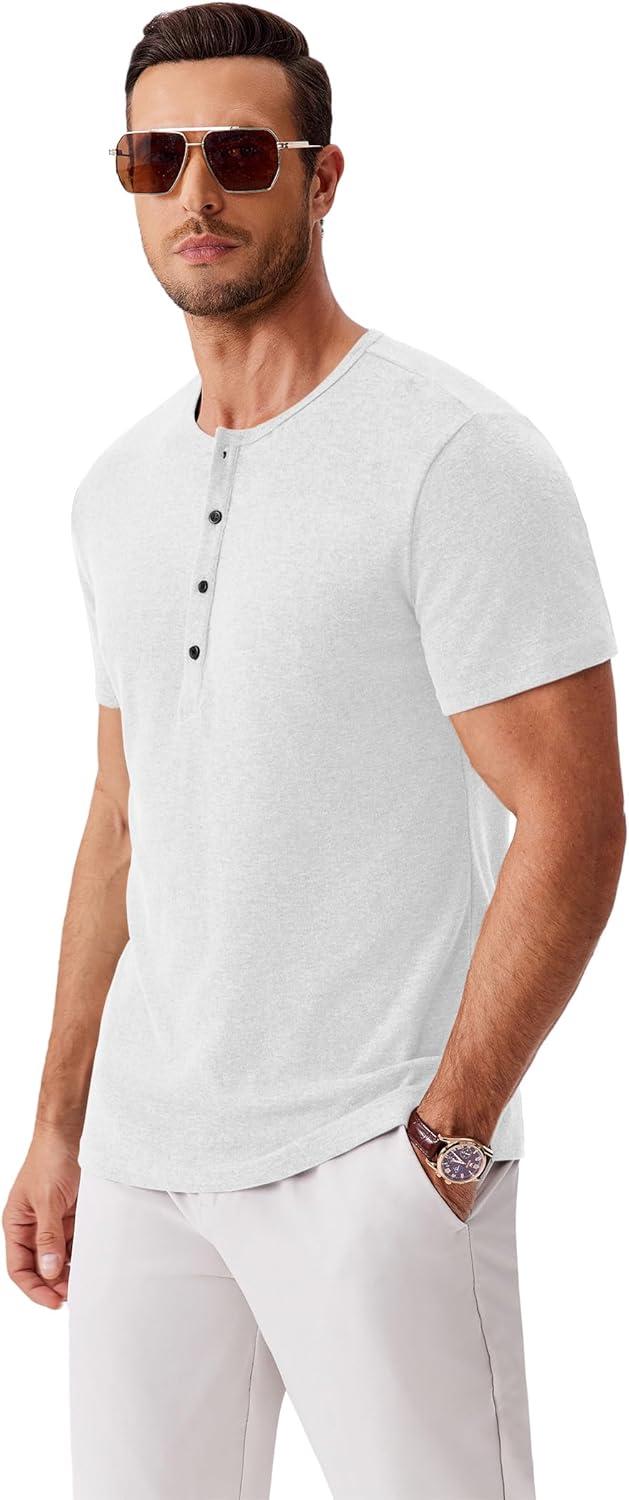 COOFANDY Men’s Henley Shirts Short Sleeve Fashion Casual T-Shirts Summer Button Basic Tee(White)