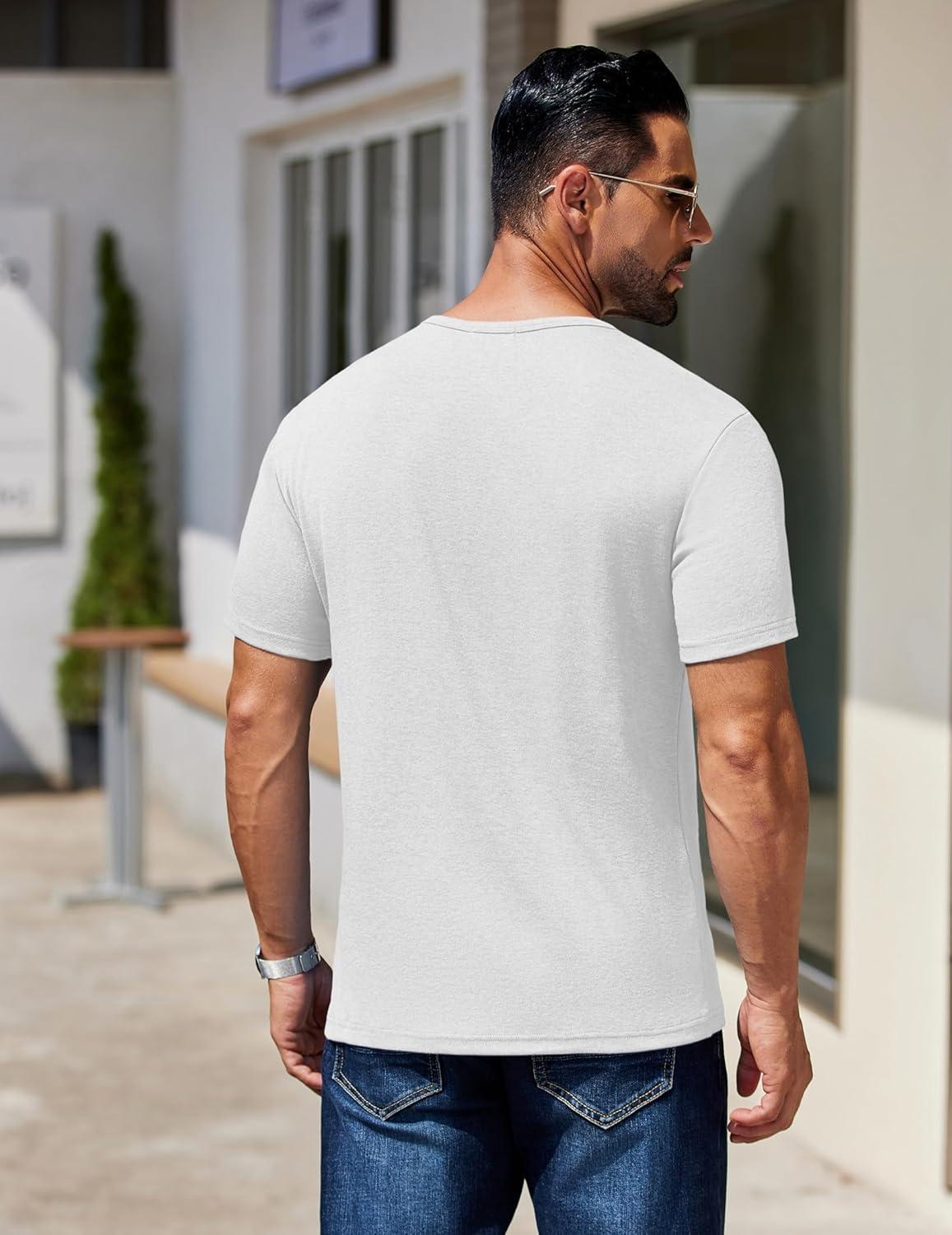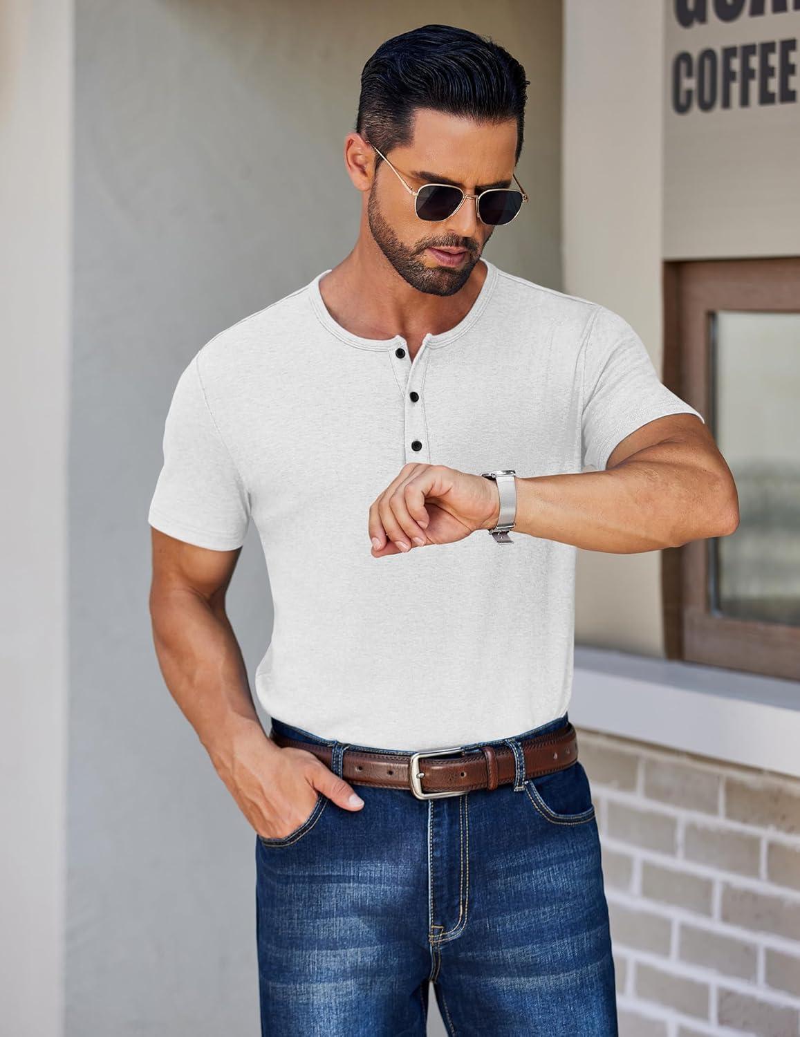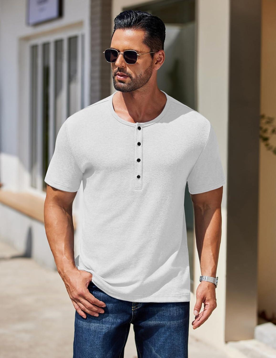 COOFANDY Men’s Henley Shirts Short Sleeve Fashion Casual T-Shirts Summer Button Basic Tee(White)