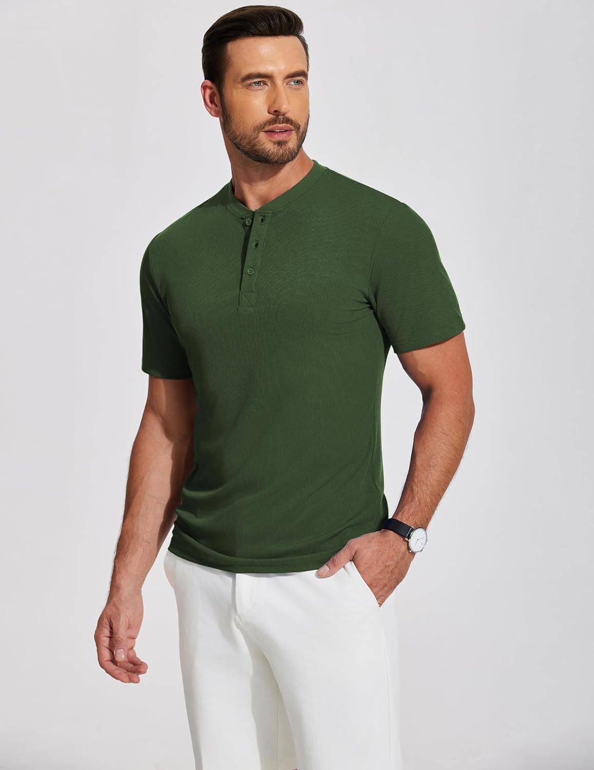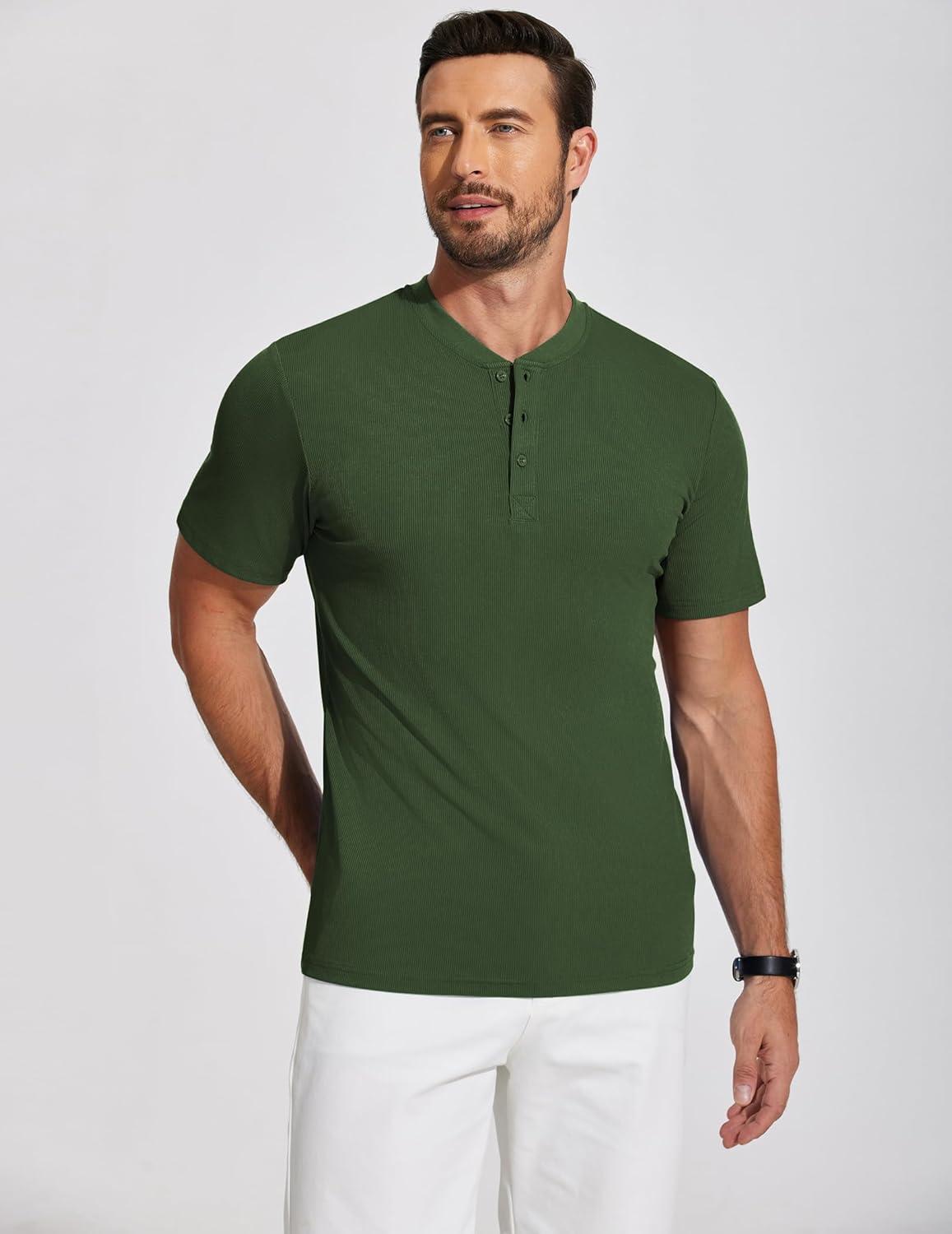 COOFANDY Men’s Henley Shirts Short Sleeve Ribbed T-Shirts Bodybuilding Workout Tee Shirts(Army Green)