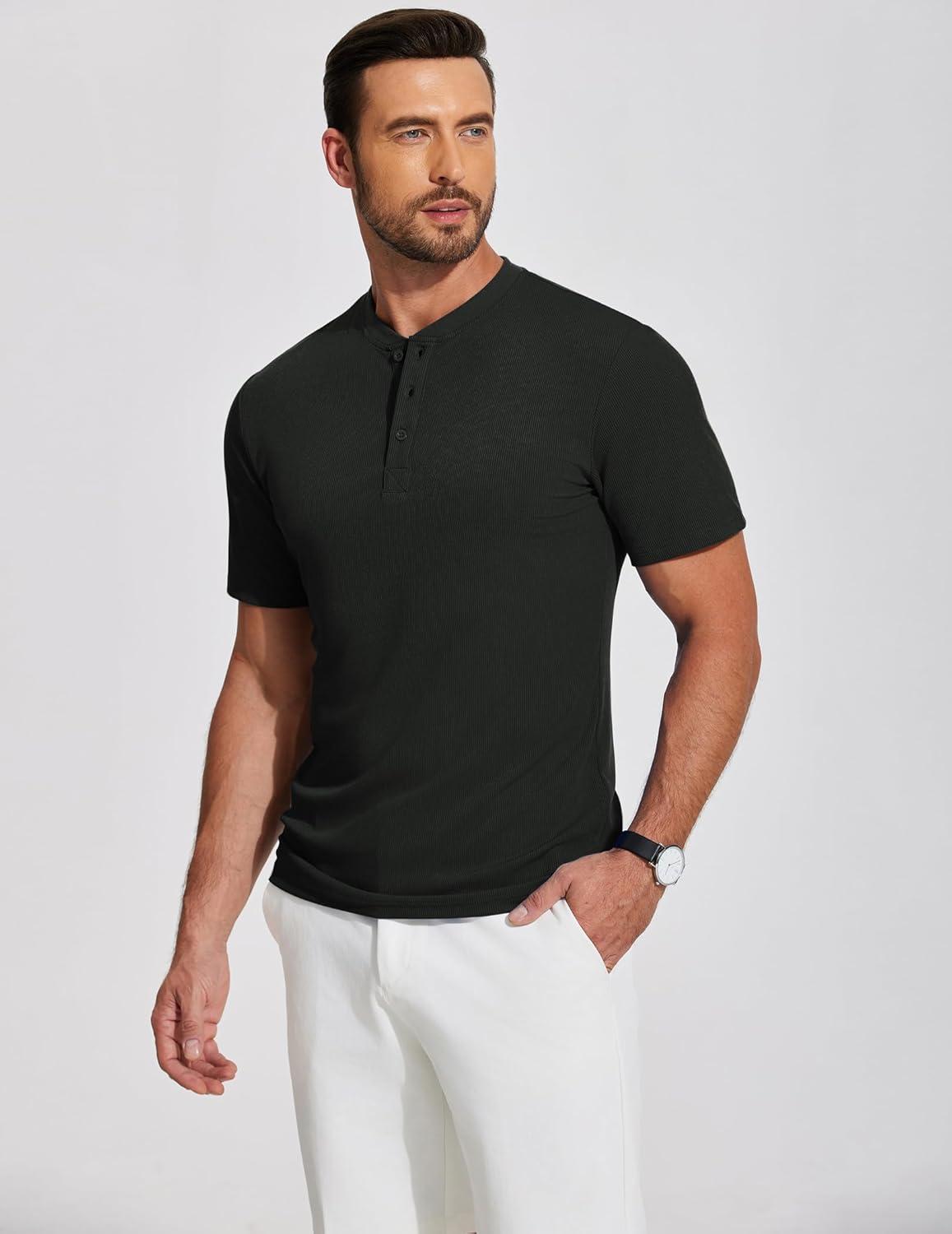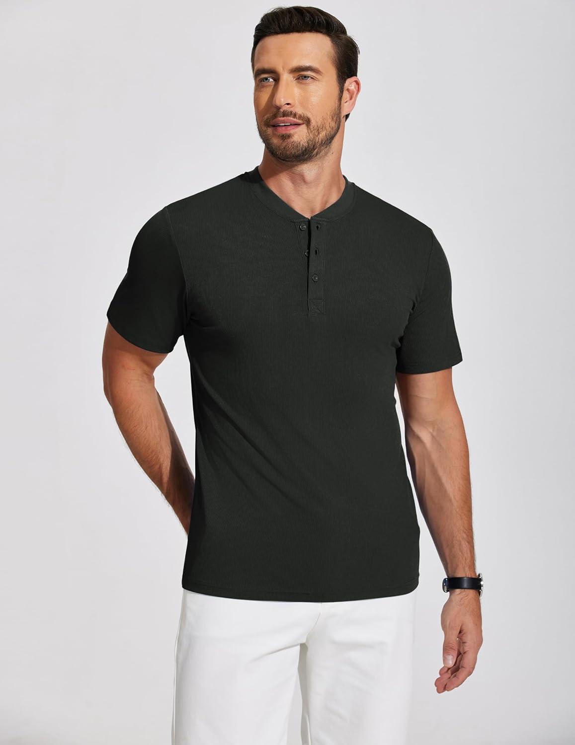 COOFANDY Men’s Henley Shirts Short Sleeve Ribbed T-Shirts Bodybuilding Workout Tee Shirts(Black)