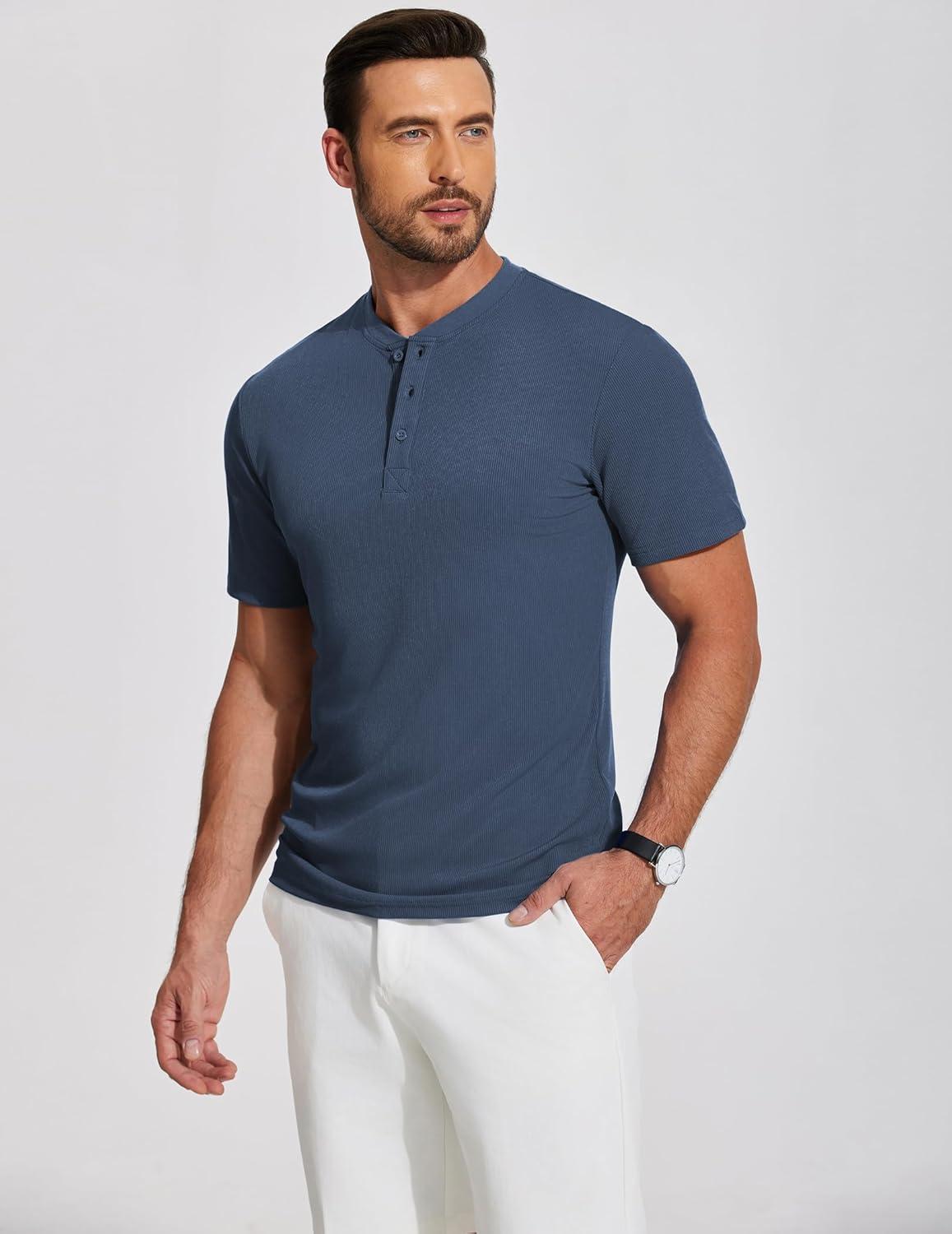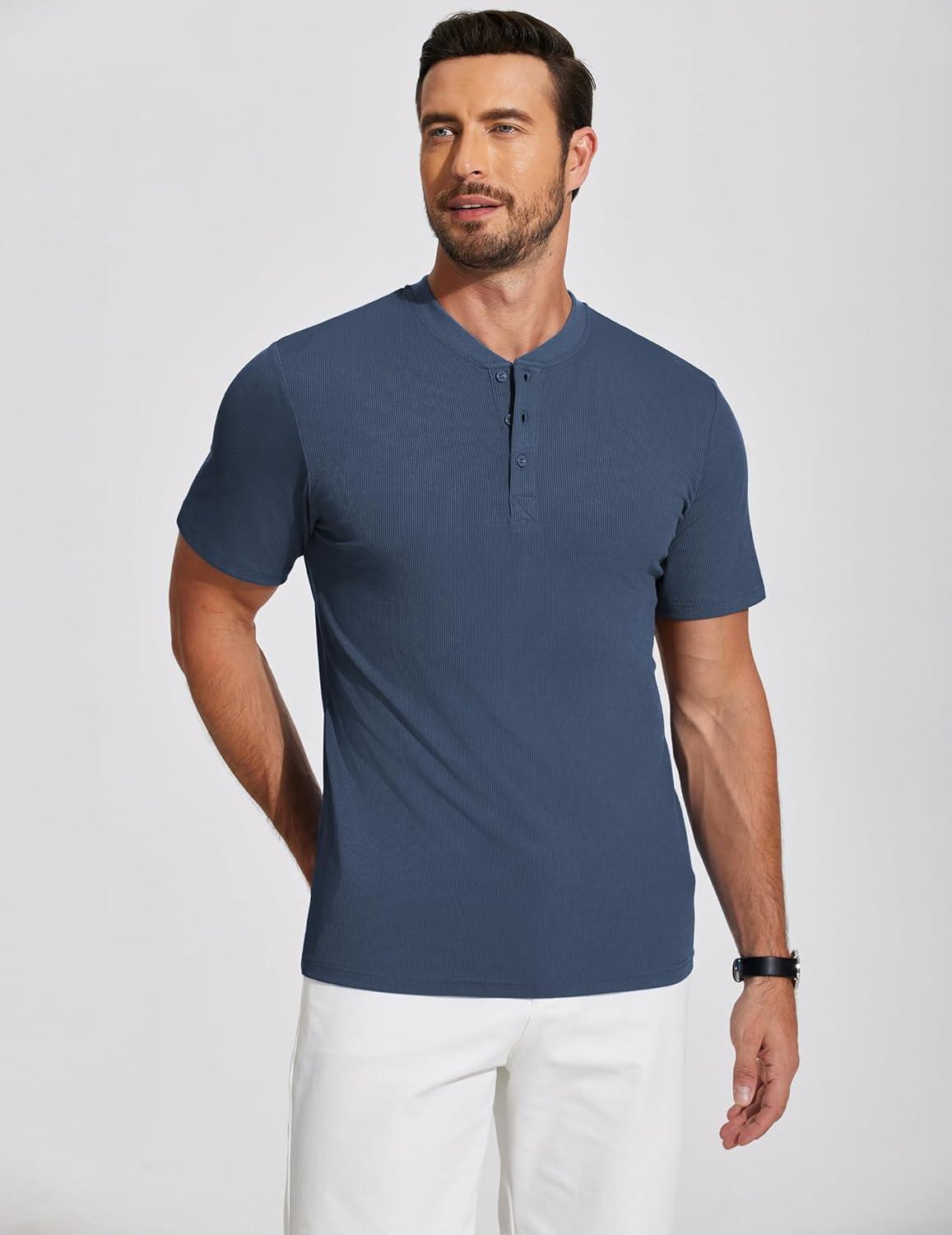 COOFANDY Men’s Henley Shirts Short Sleeve Ribbed T-Shirts Bodybuilding Workout Tee Shirts(Grey Blue)