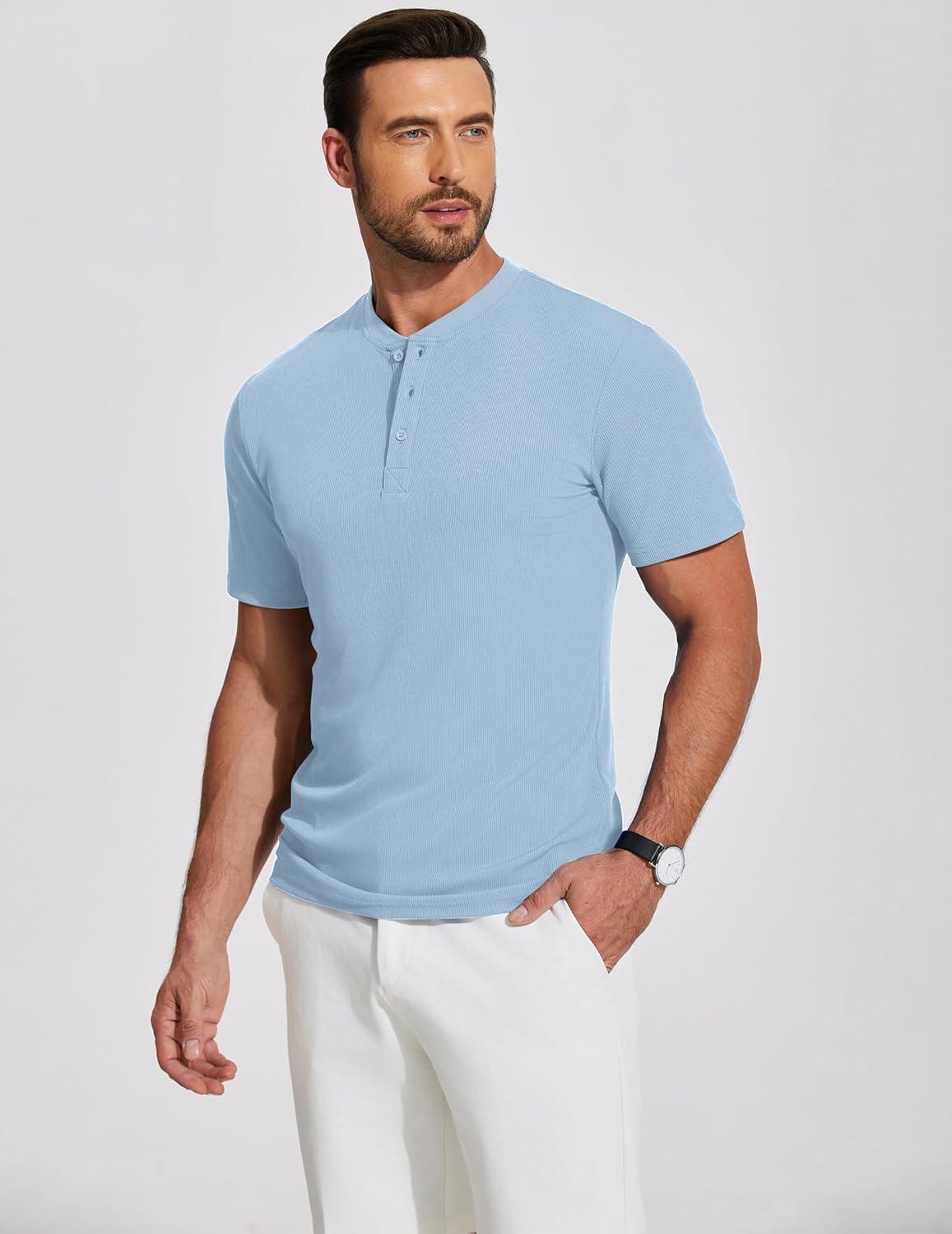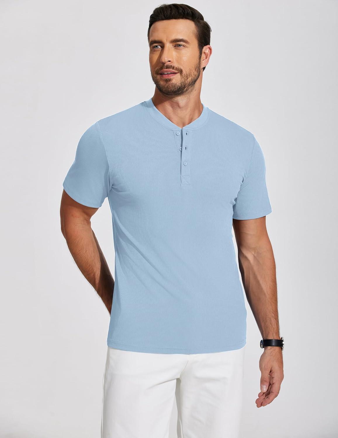 COOFANDY Men’s Henley Shirts Short Sleeve Ribbed T-Shirts Bodybuilding Workout Tee Shirts(Light Blue)