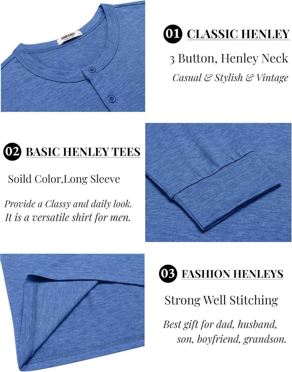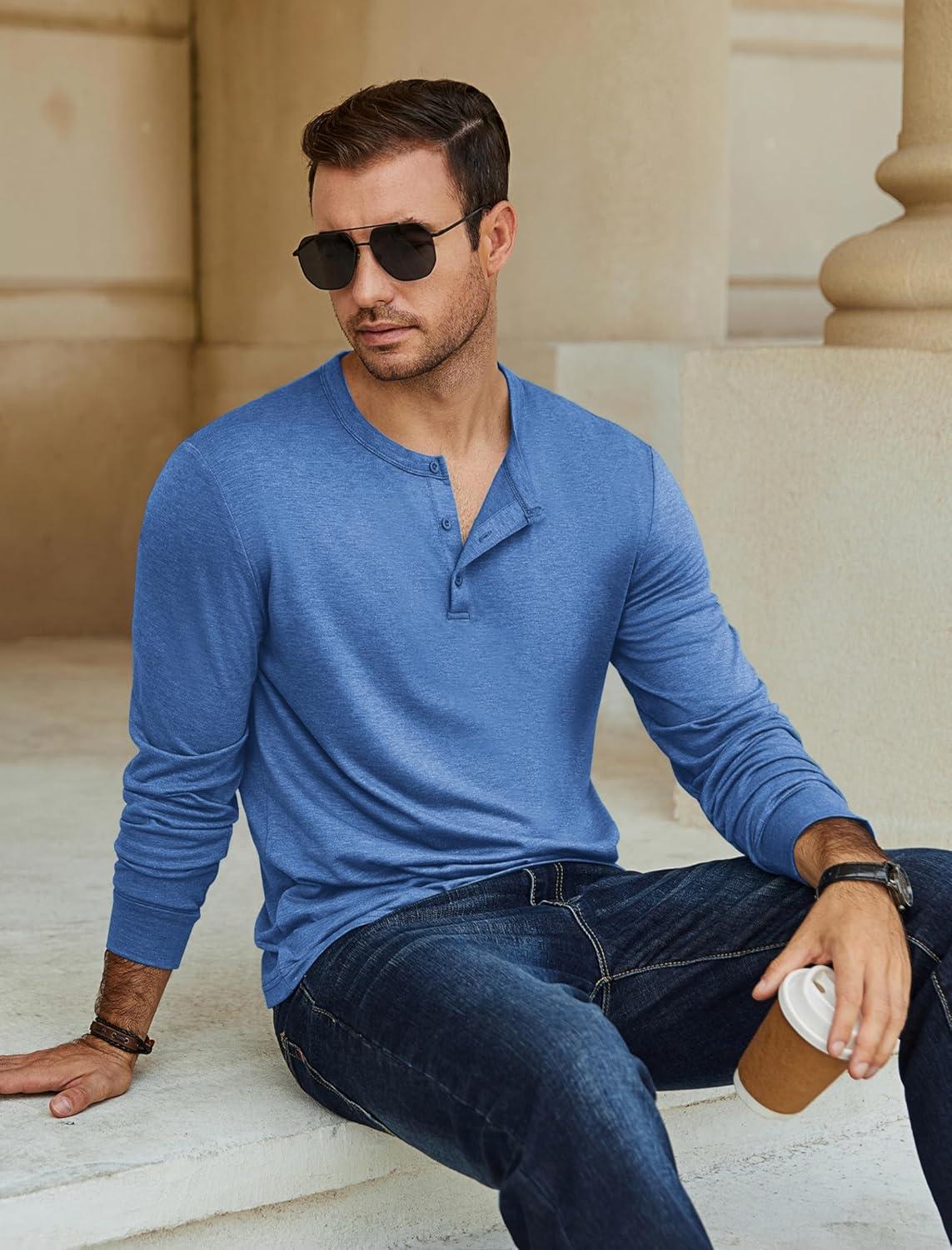 COOFANDY Men’s Henley T-Shirt Long Sleeve Casual Lightweight Pullover Shirts Soft Stretch Basic Tees Fall Tops(Blue)