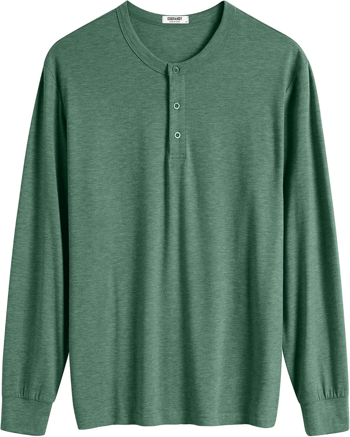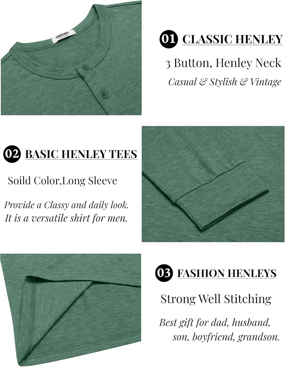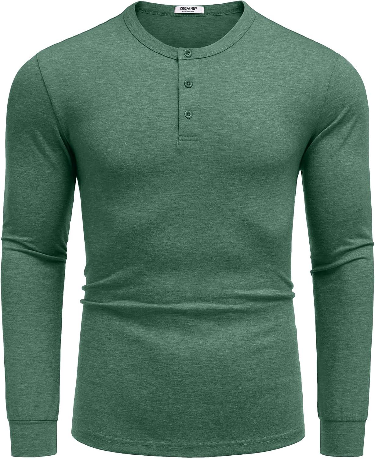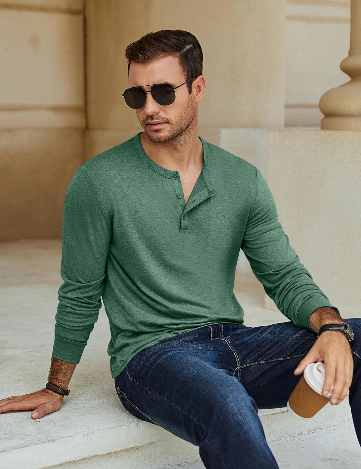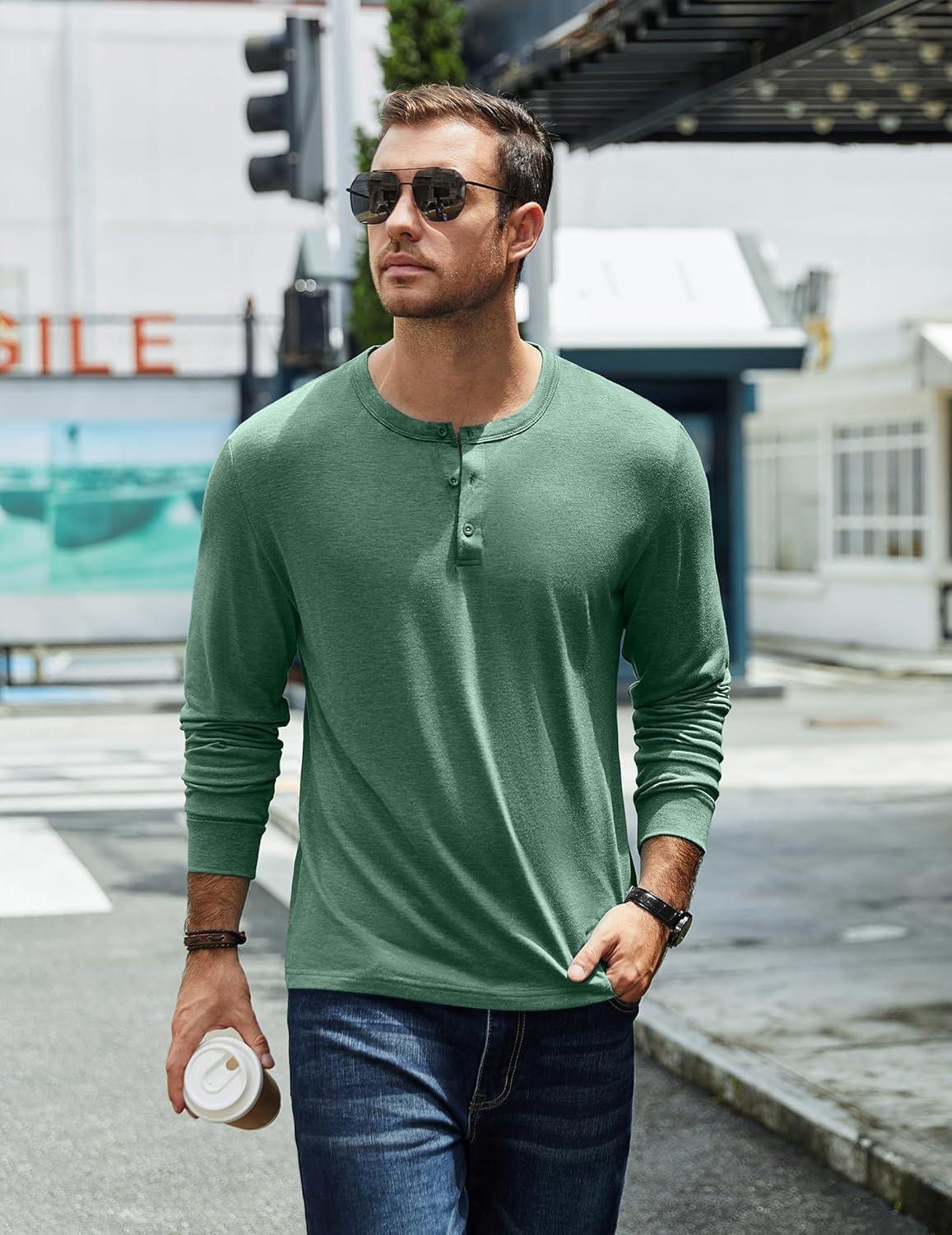 COOFANDY Men’s Henley T-Shirt Long Sleeve Casual Lightweight Pullover Shirts Soft Stretch Basic Tees Fall Tops(Green)