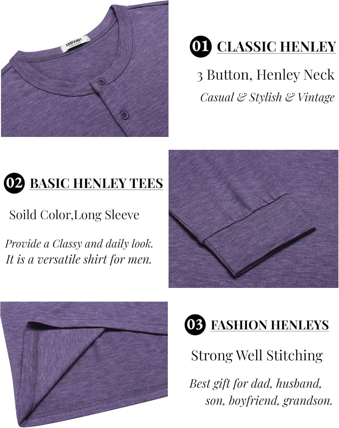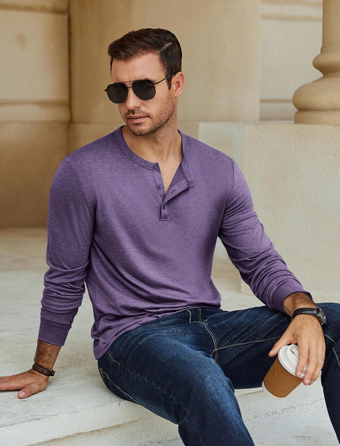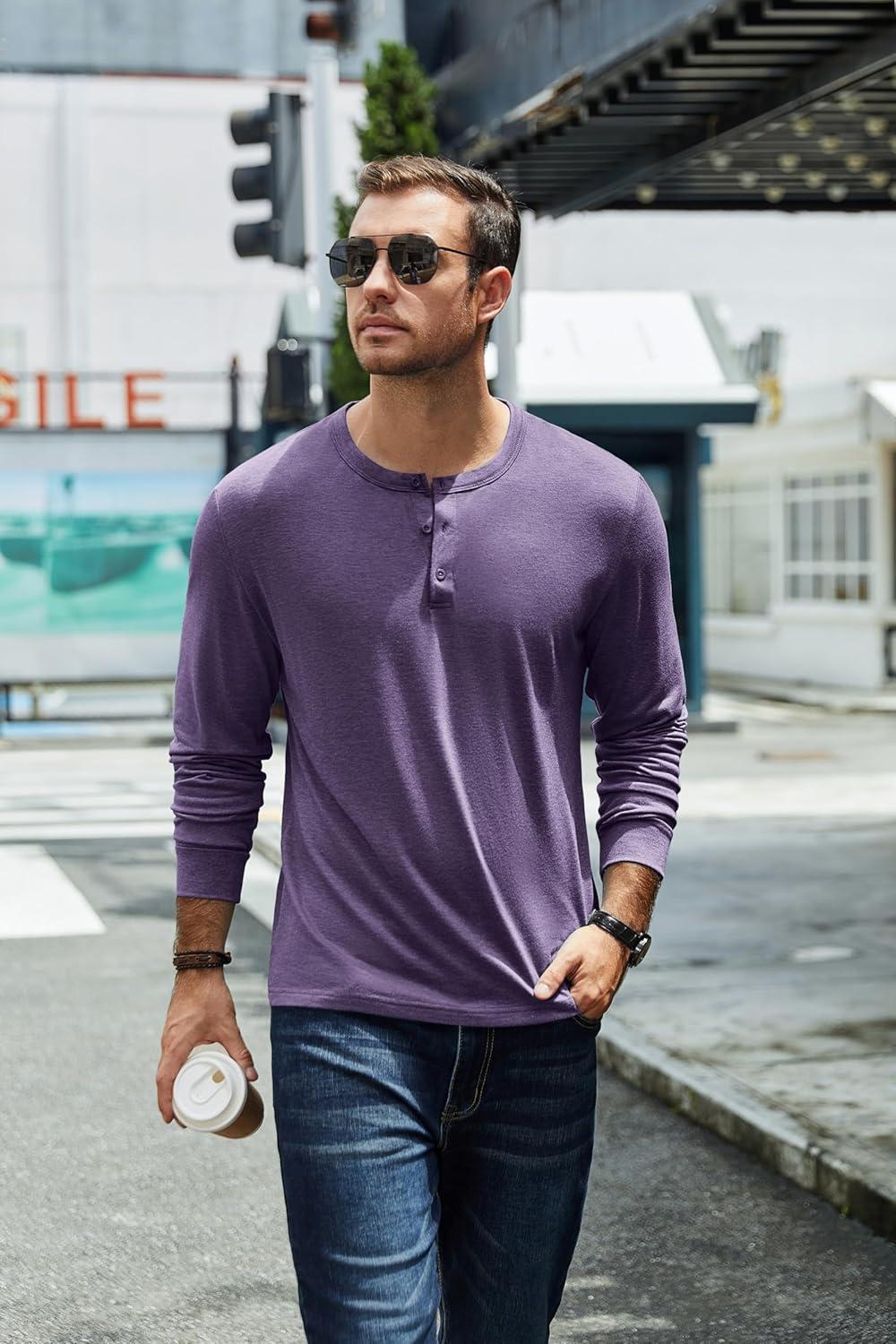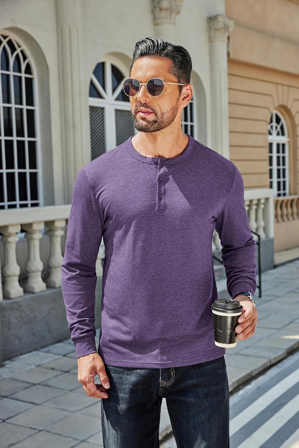 COOFANDY Men’s Henley T-Shirt Long Sleeve Casual Lightweight Pullover Shirts Soft Stretch Basic Tees Fall Tops(Purple)