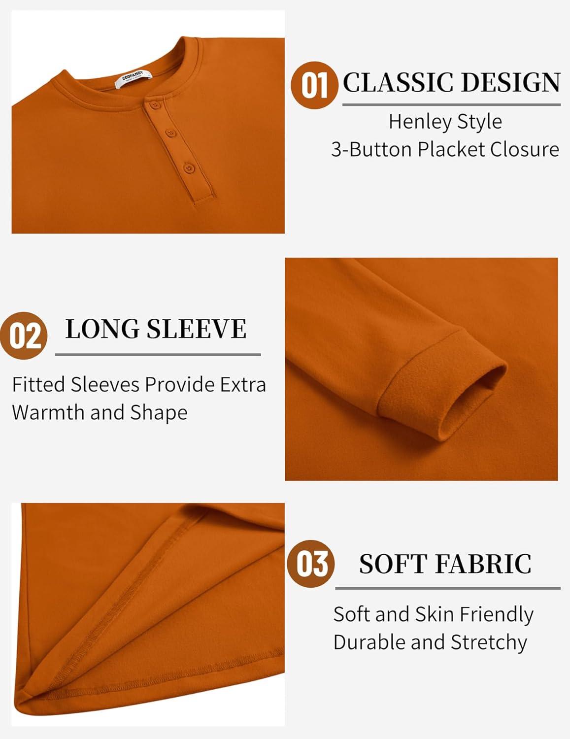 COOFANDY Men’s Henley T-Shirts Long Sleeve Pullover Shirt Casual Heavyweight Button Shirts Basic Tees(Caramel)