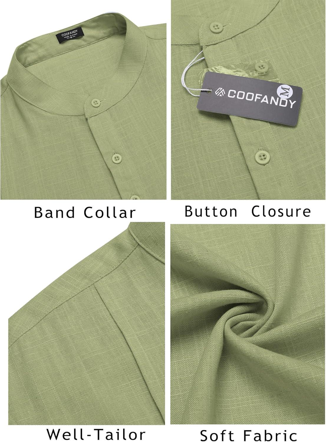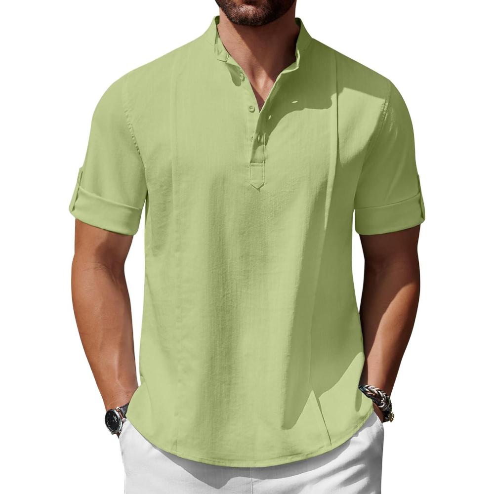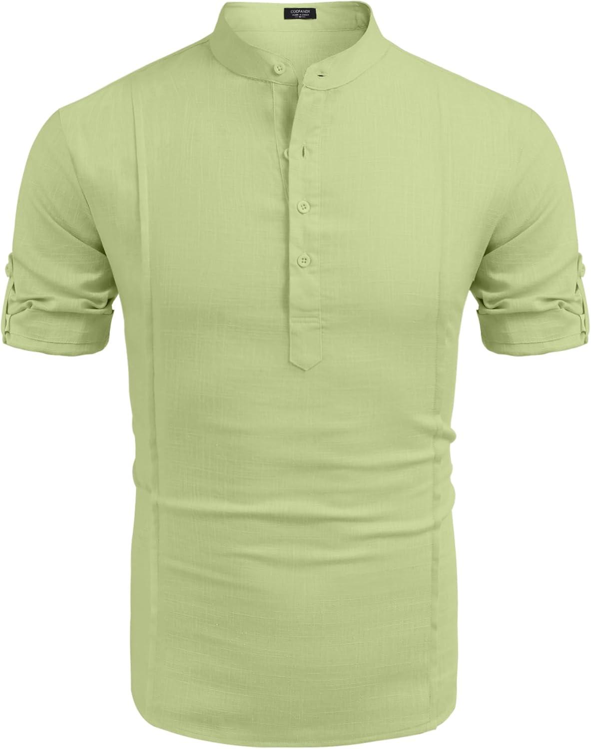 COOFANDY Men’s Henley T-Shirts Short Sleeve Casual Button Henley Shirts Band Collar Tee Summer Beach Hippie Shirts(Green)