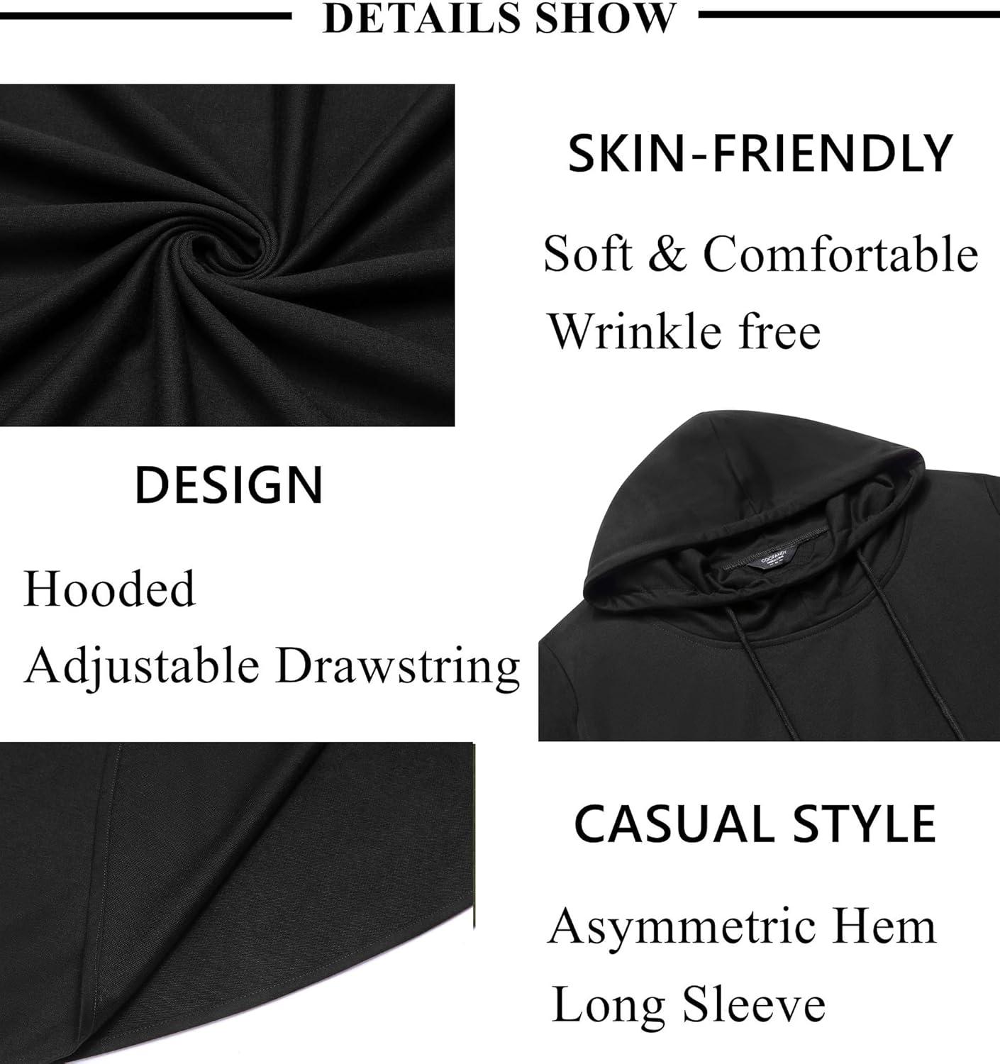 COOFANDY Men’s Hooded Poncho Cape Cloak Casual Asymmetric Hem Hoodie Sweatshirts(Black)