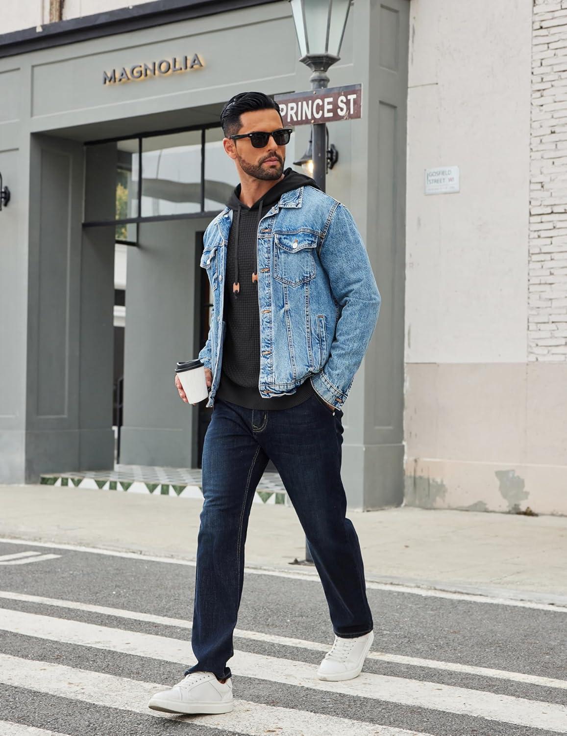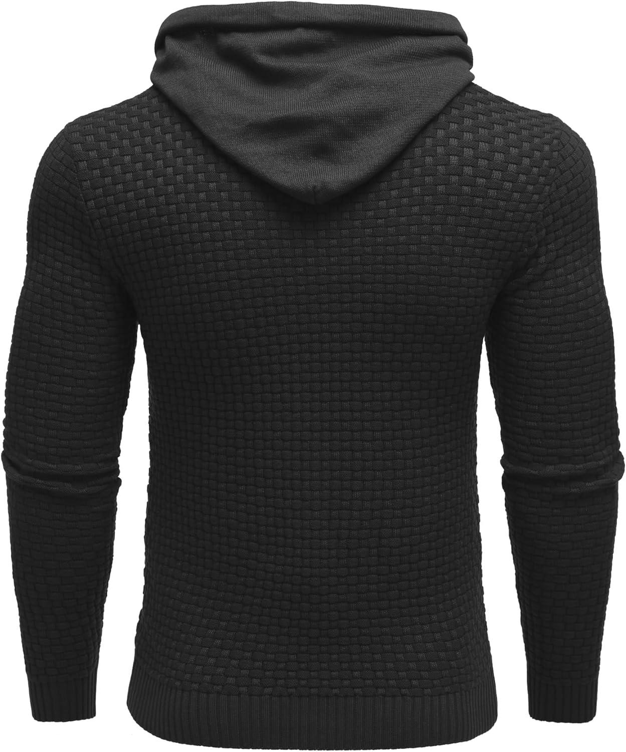 COOFANDY Mens Hooded Sweatshirt Casual Long Sleeve Drawstring Waffle Knit Hoodies Slim Fit Hoodies Pullover(Black)