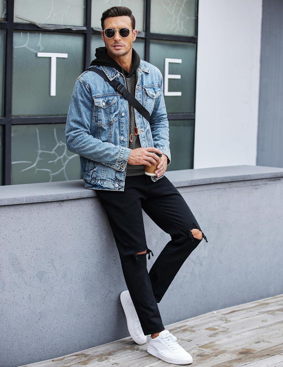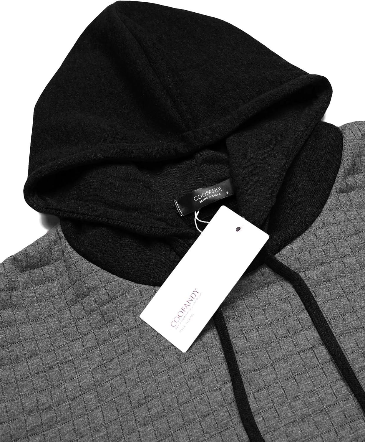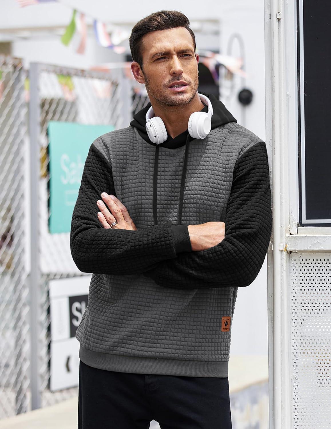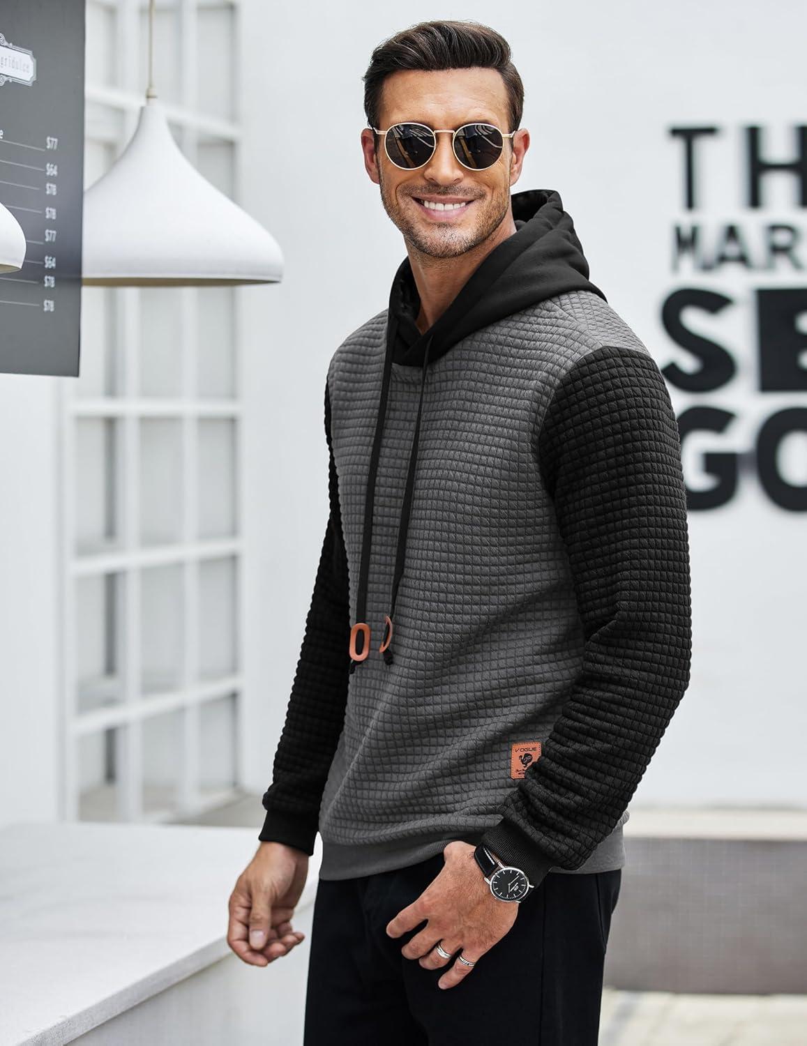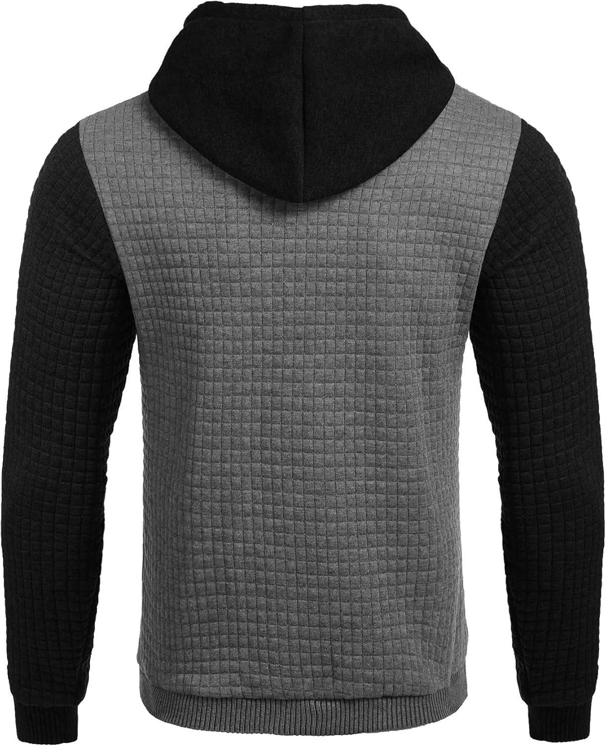COOFANDY Mens Hooded Sweatshirt Casual Long Sleeve Drawstring Waffle Knit Pullover Hoodies(Gery/Black P10)