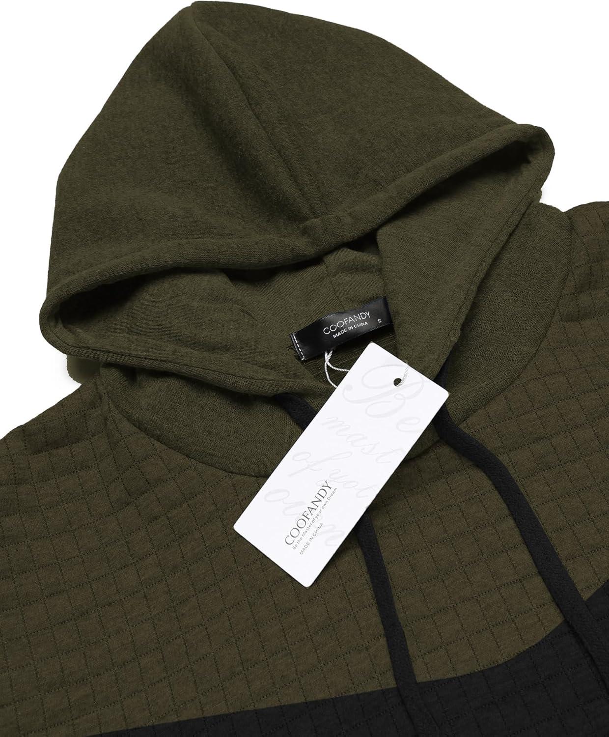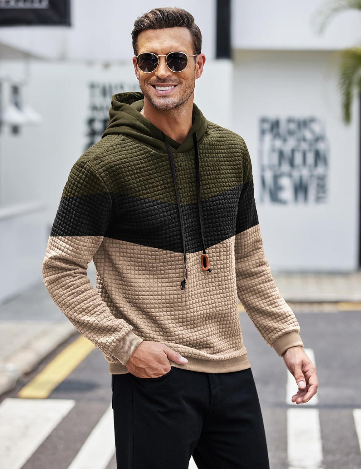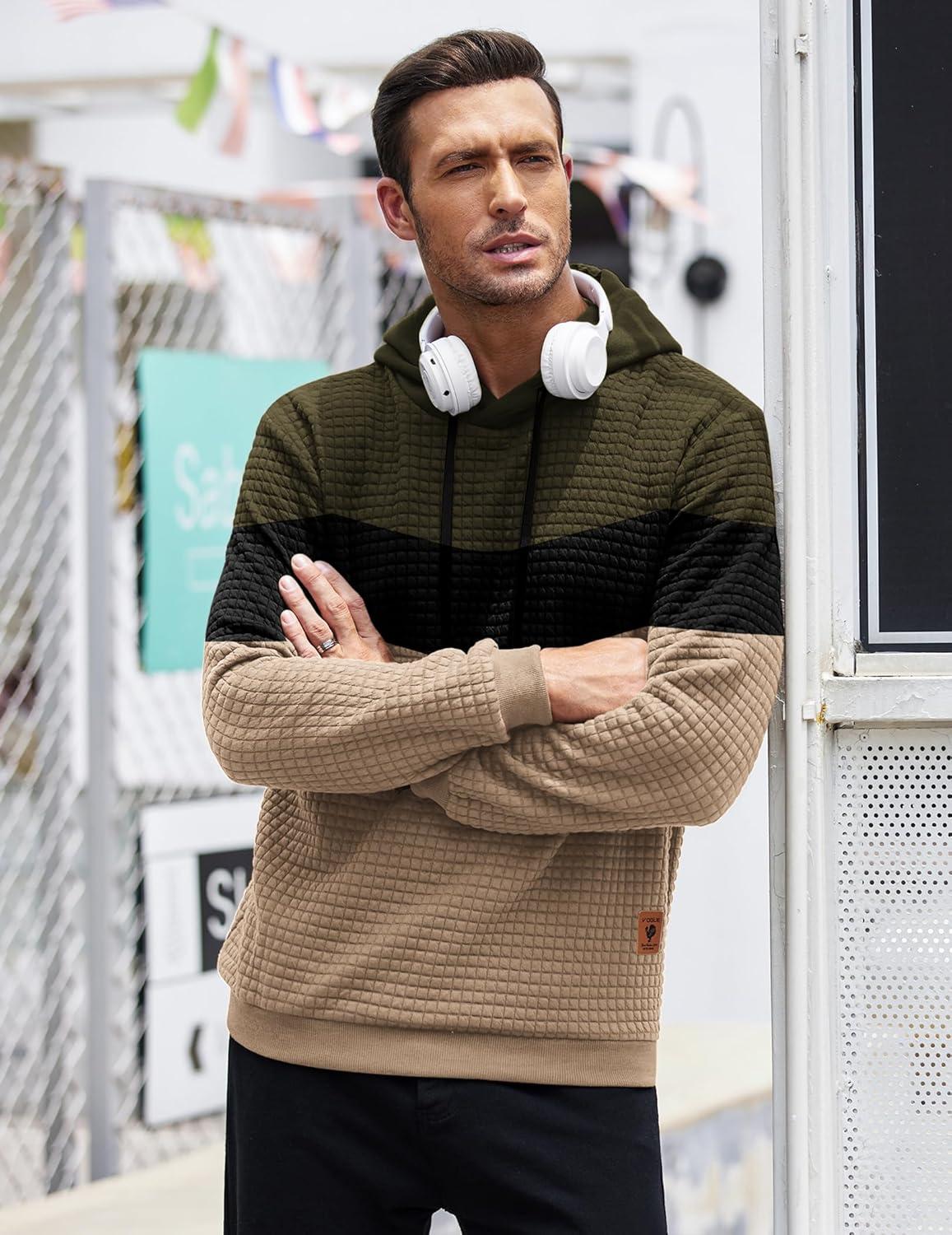COOFANDY Mens Hooded Sweatshirt Casual Long Sleeve Drawstring Waffle Knit Pullover Hoodies(Green/Khaki P12)