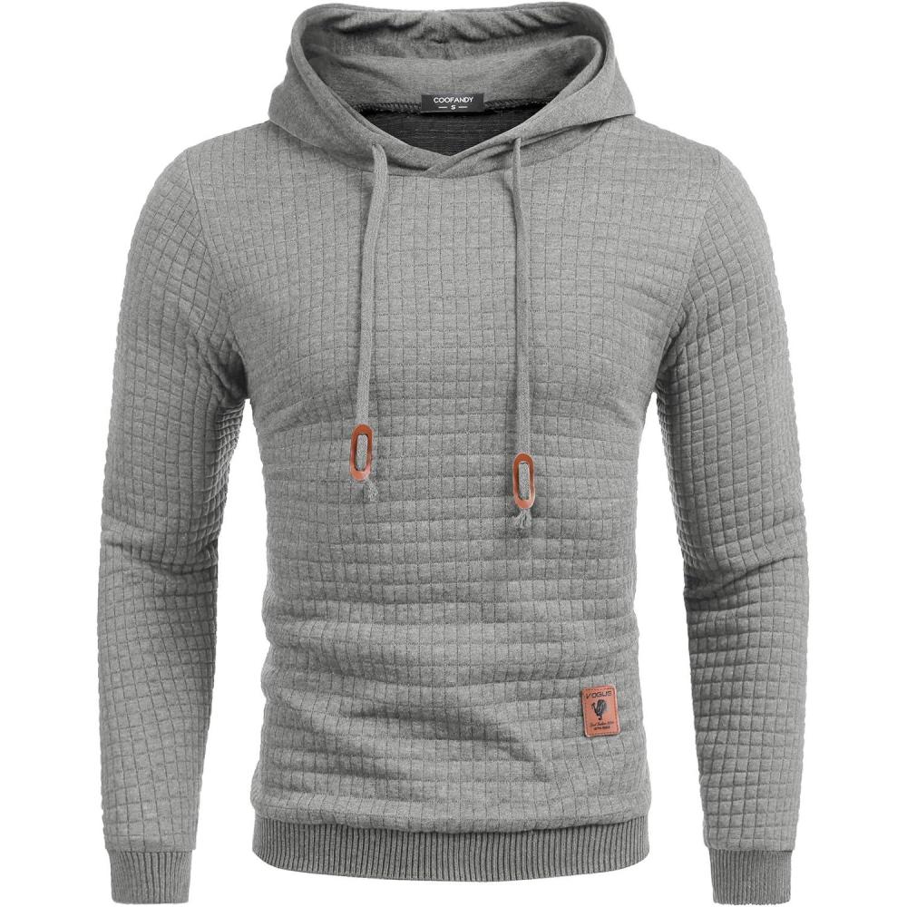 COOFANDY Mens Hooded Sweatshirt Casual Long Sleeve Drawstring Waffle Knit Pullover Hoodies(Grey)