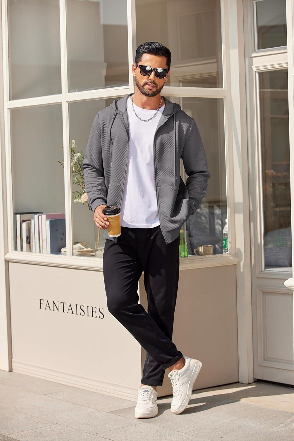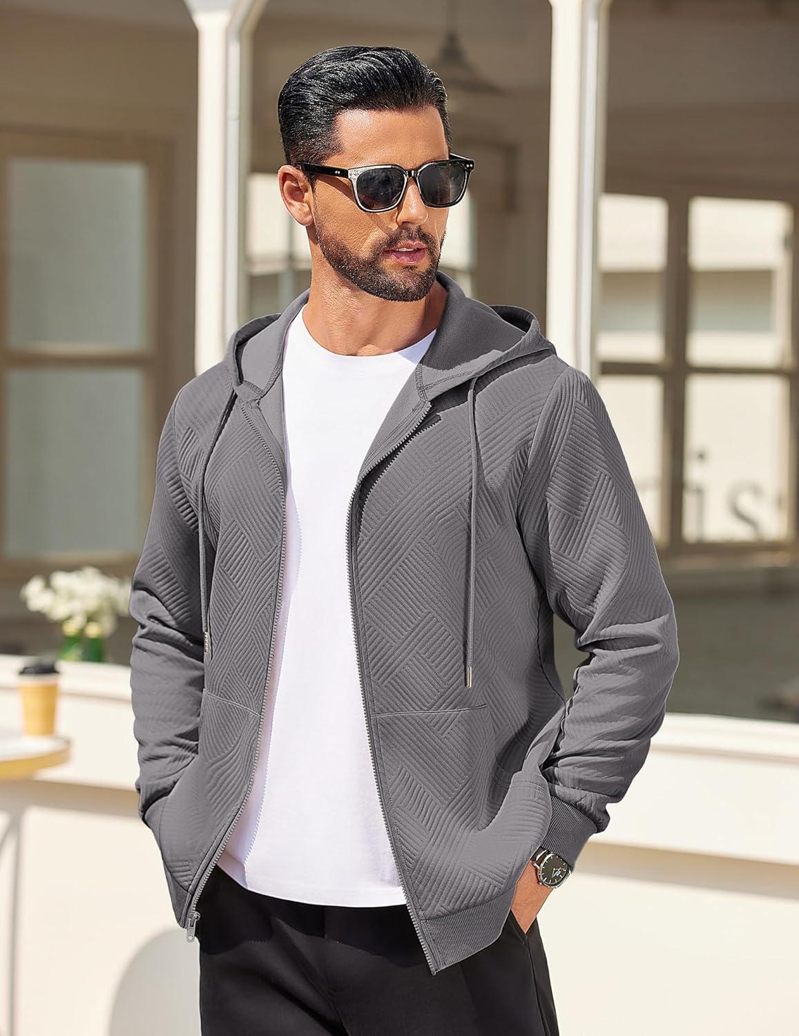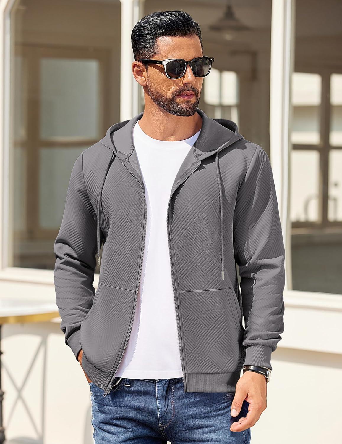 COOFANDY Mens Hooded Sweatshirt Zip Up Casual Knit Hoodies Fashion Drawstring Sweatshirts with Pockets(Dark Grey)