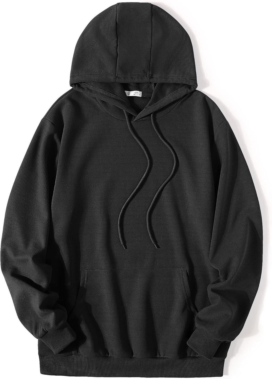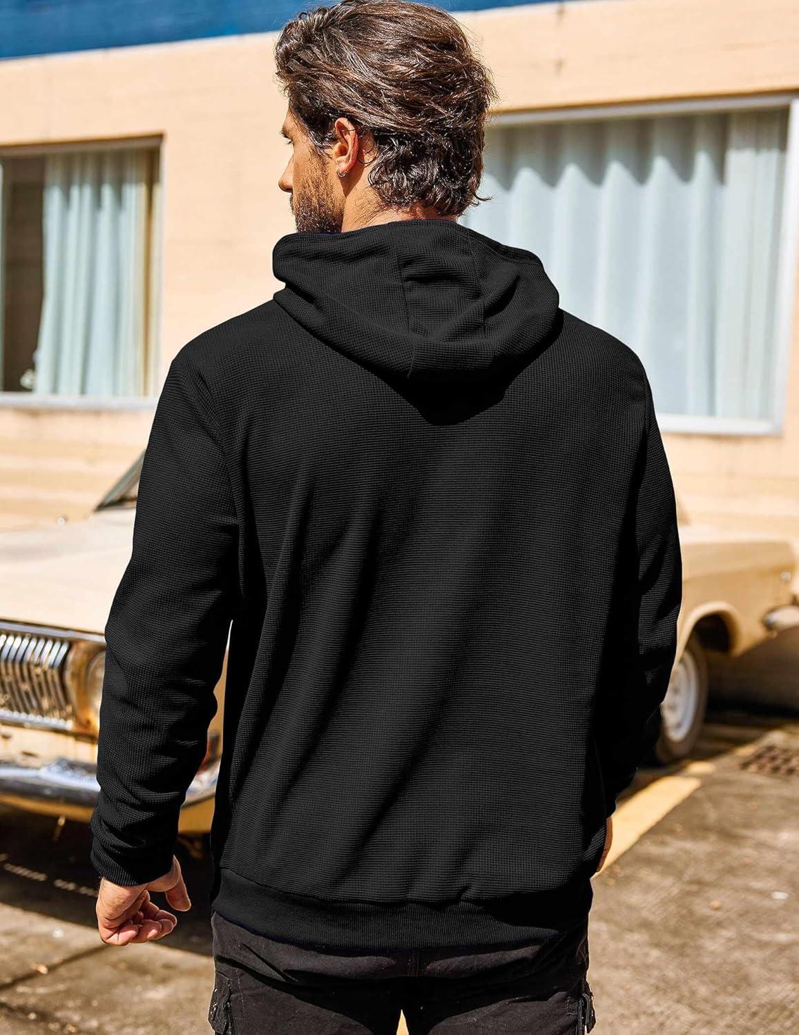 COOFANDY Men’s Hooded Sweatshirts Long Sleeve Casual Pullover Hoodie Waffle Knit Sweatshirt with Pocket(Black)