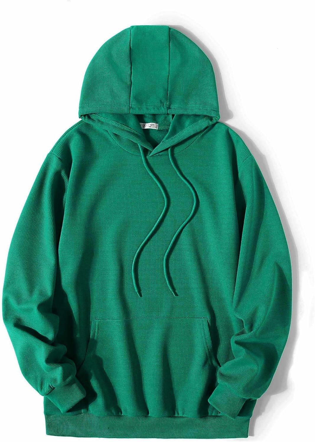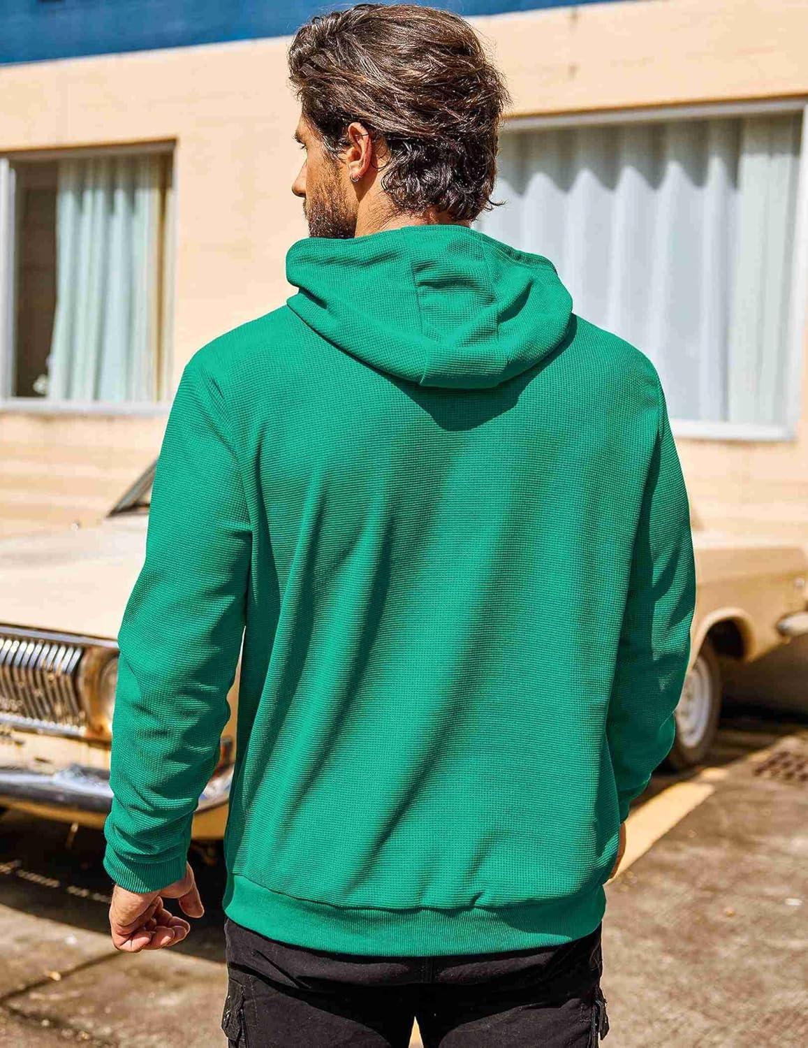 COOFANDY Men’s Hooded Sweatshirts Long Sleeve Casual Pullover Hoodie Waffle Knit Sweatshirt with Pocket(Green)