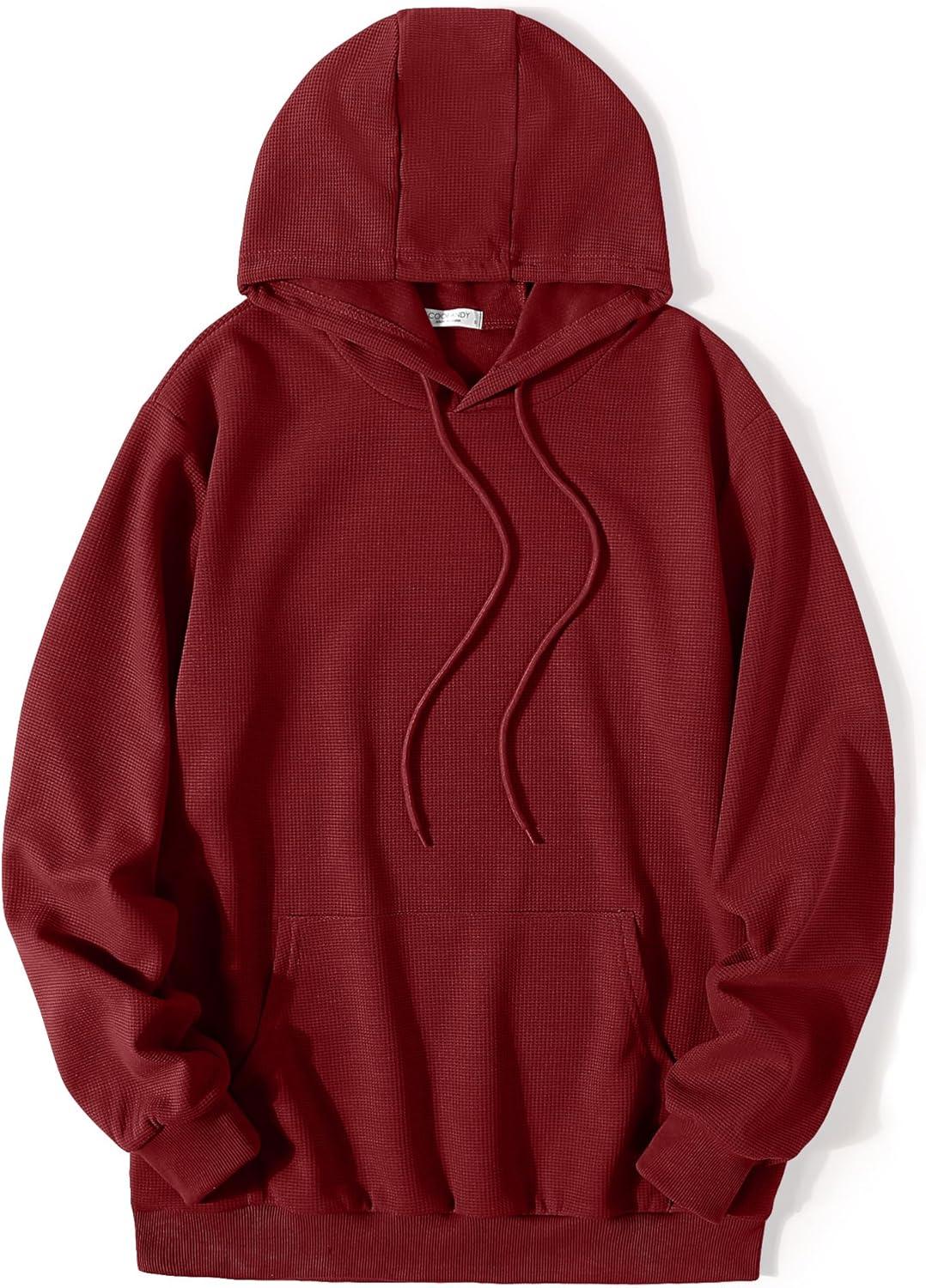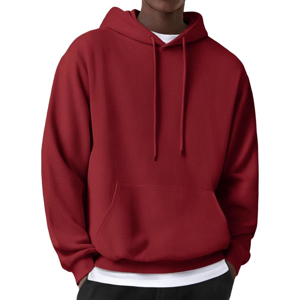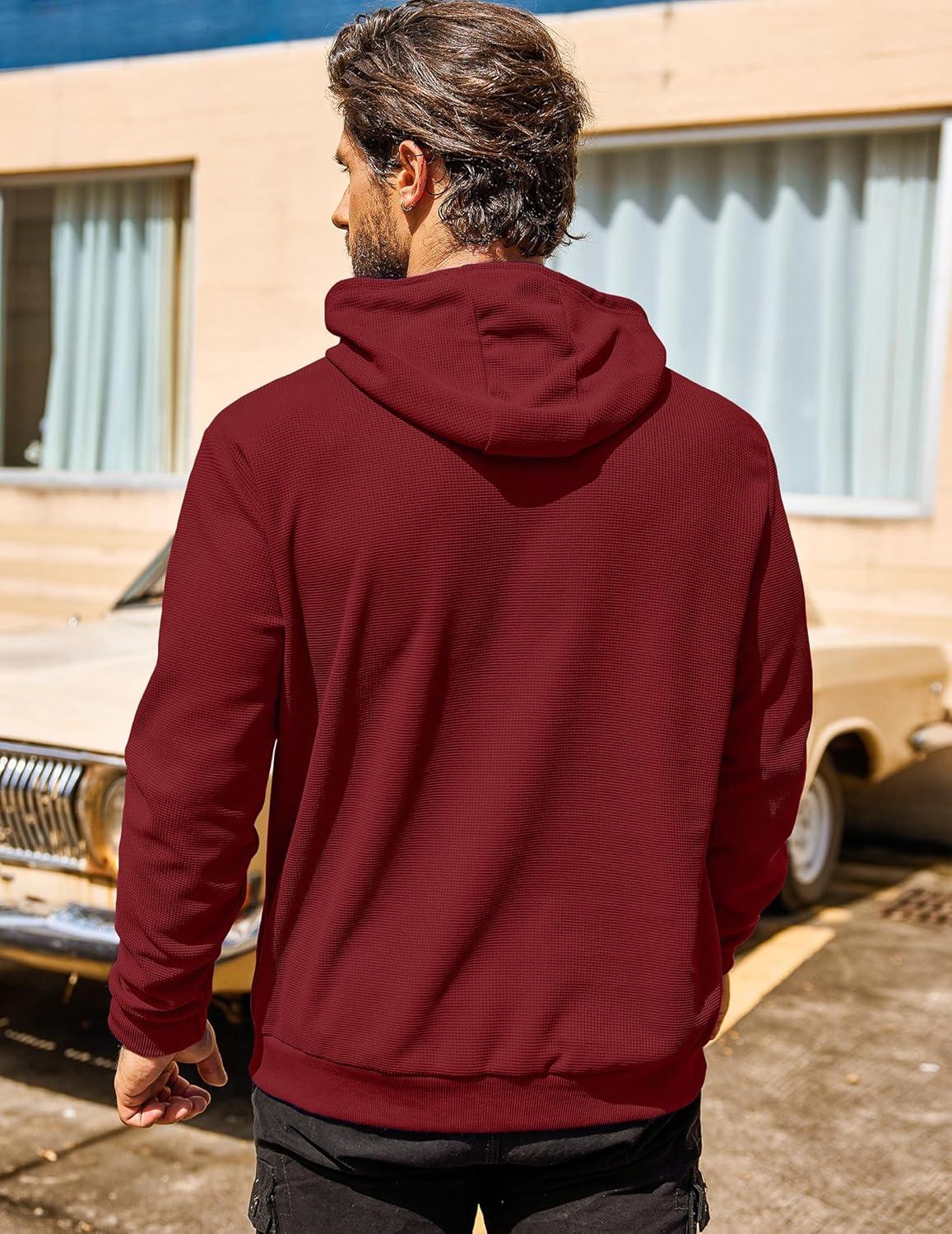 COOFANDY Men’s Hooded Sweatshirts Long Sleeve Casual Pullover Hoodie Waffle Knit Sweatshirt with Pocket(Wine Red)
