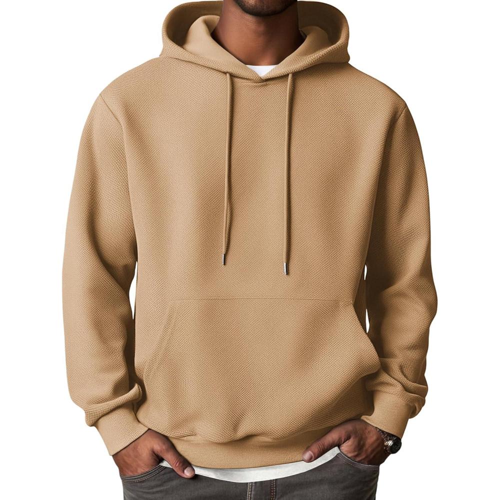 COOFANDY Men’s Hooded Sweatshirts Long Sleeve Casual Waffle Knit Pullover Hoodies with Kanga Pocket(Light Brown)