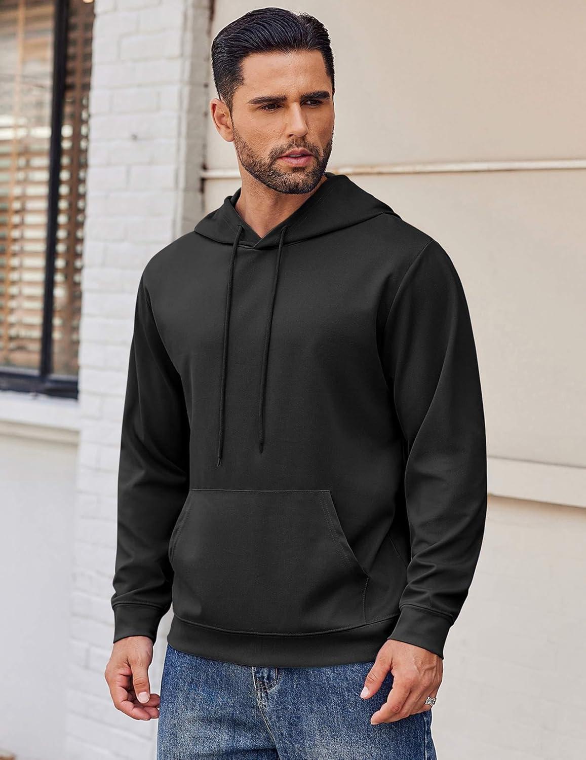 COOFANDY Men’s Hoodie Long Sleeve Hooded Pullover Casual Fashion Sweatshirts Drawstring Gym Hooded with Kanga Pocket(Black)