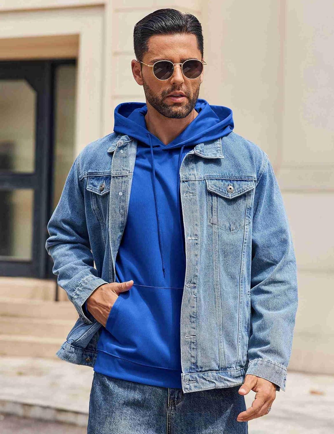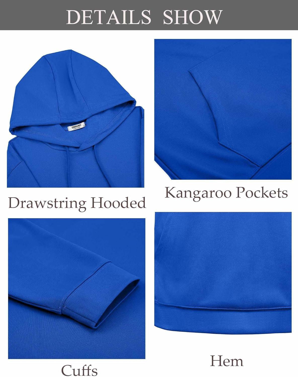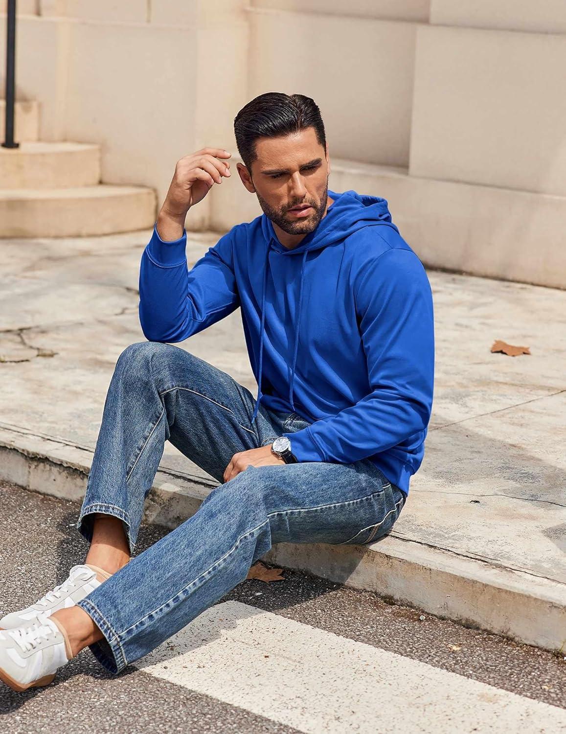 COOFANDY Men’s Hoodie Long Sleeve Hooded Pullover Casual Fashion Sweatshirts Drawstring Gym Hooded with Kanga Pocket(Blue)
