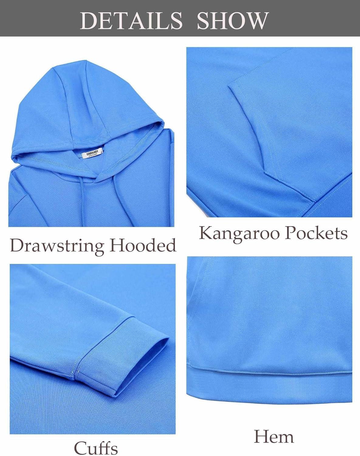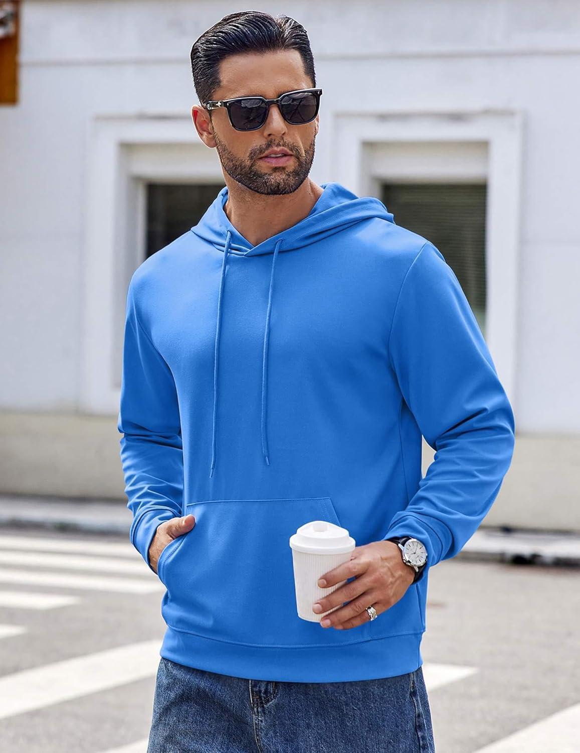 COOFANDY Men’s Hoodie Long Sleeve Hooded Pullover Casual Fashion Sweatshirts Drawstring Gym Hooded with Kanga Pocket(Clear Blue)