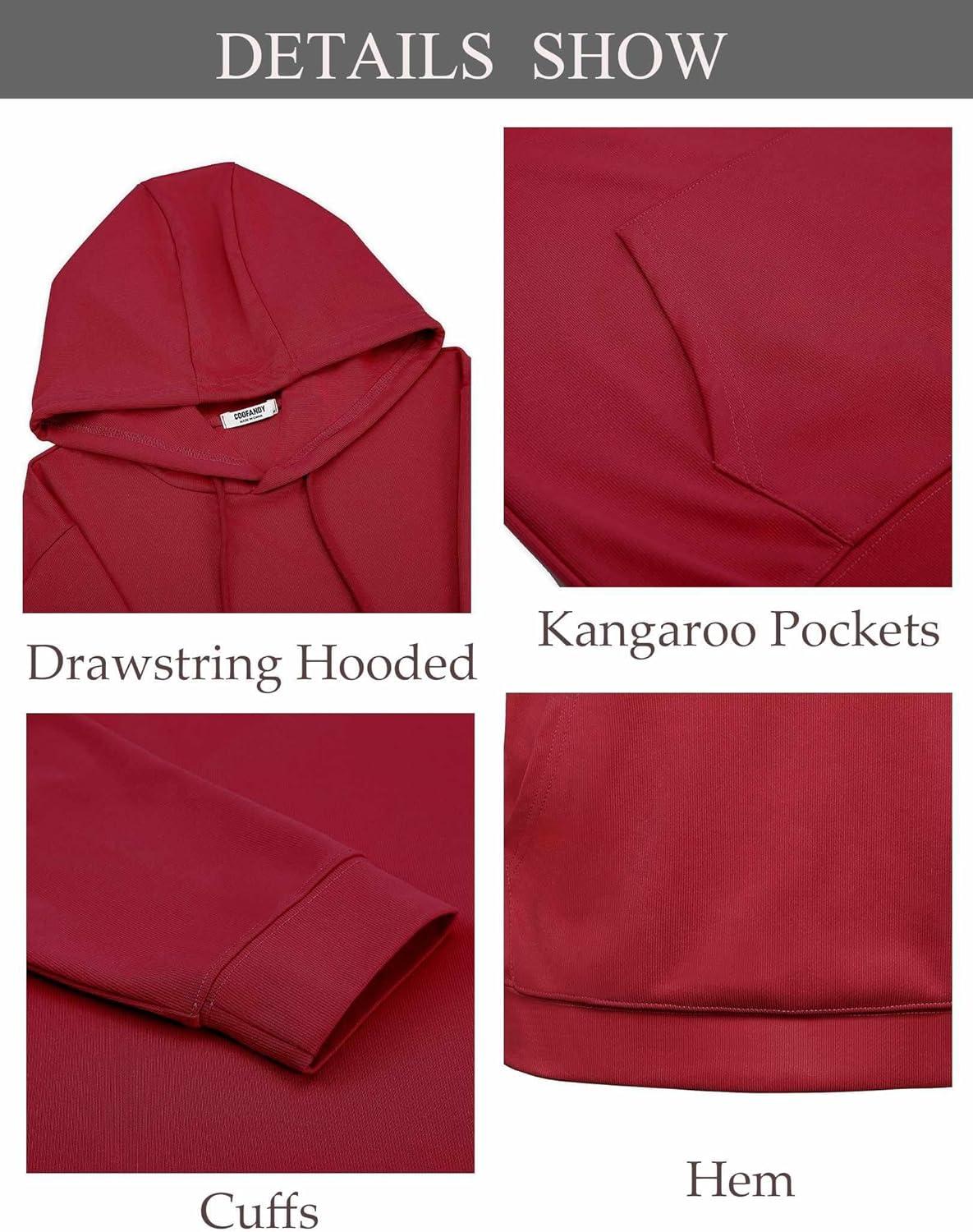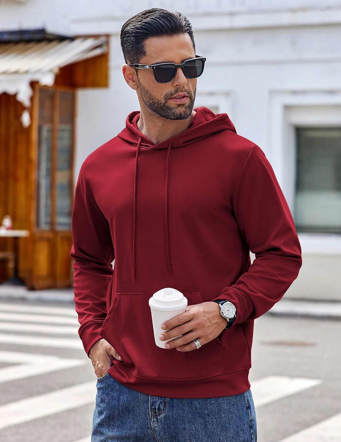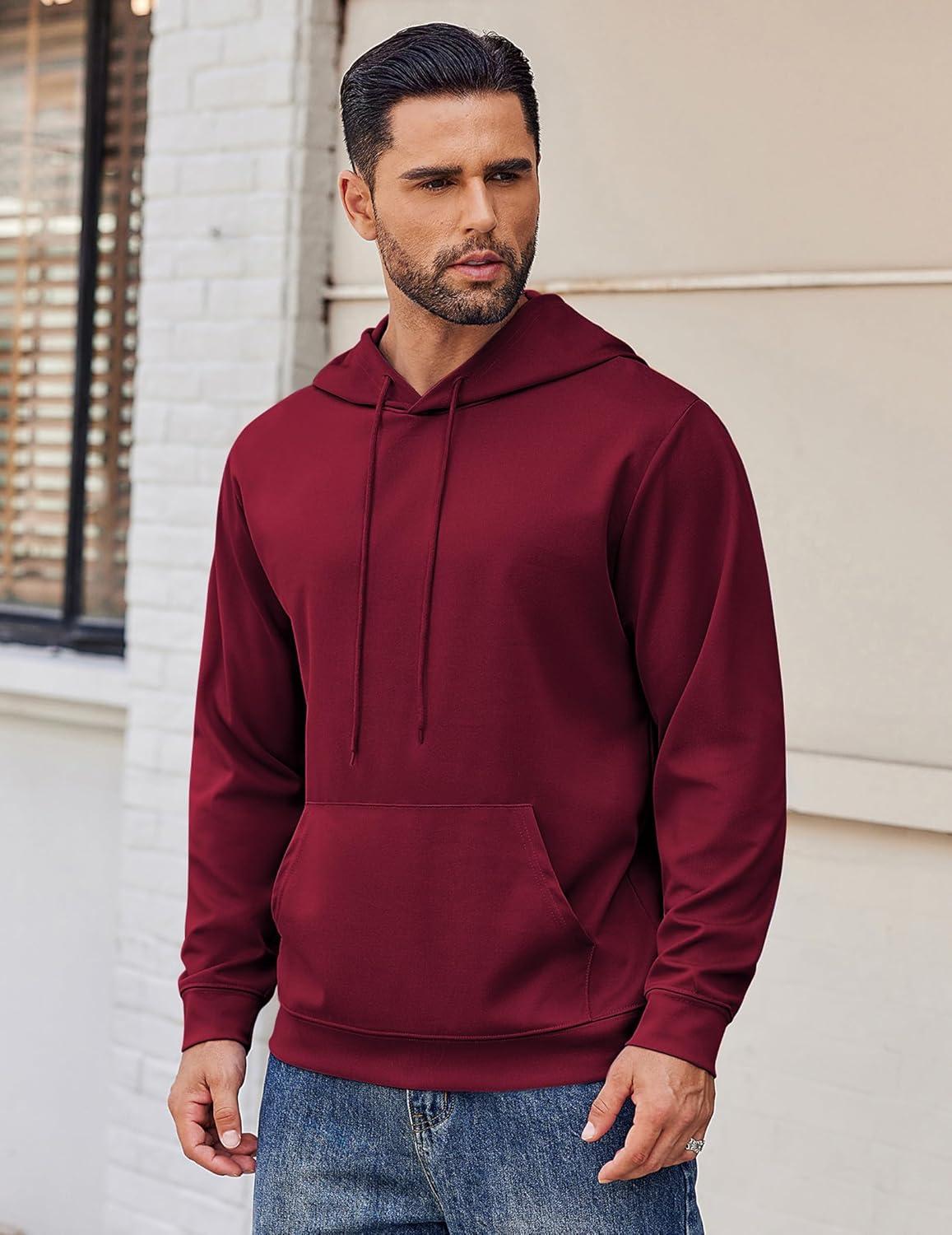COOFANDY Men’s Hoodie Long Sleeve Hooded Pullover Casual Fashion Sweatshirts Drawstring Gym Hooded with Kanga Pocket(Wine Red)