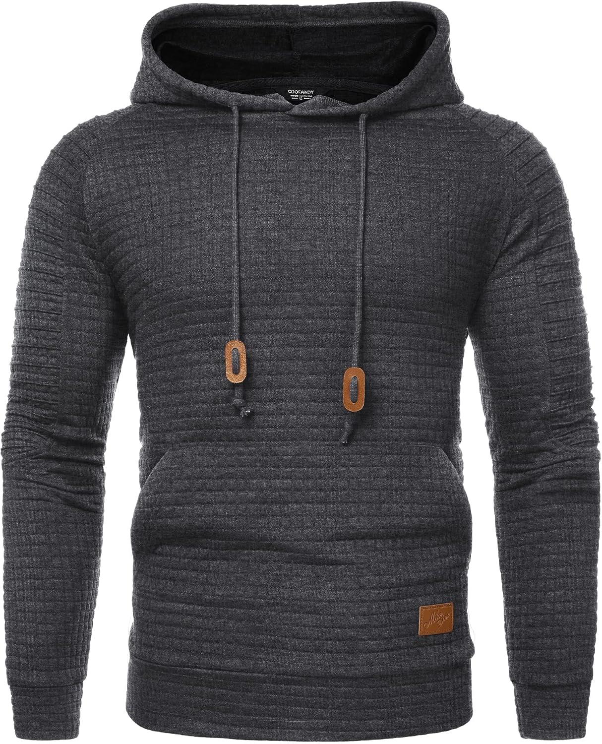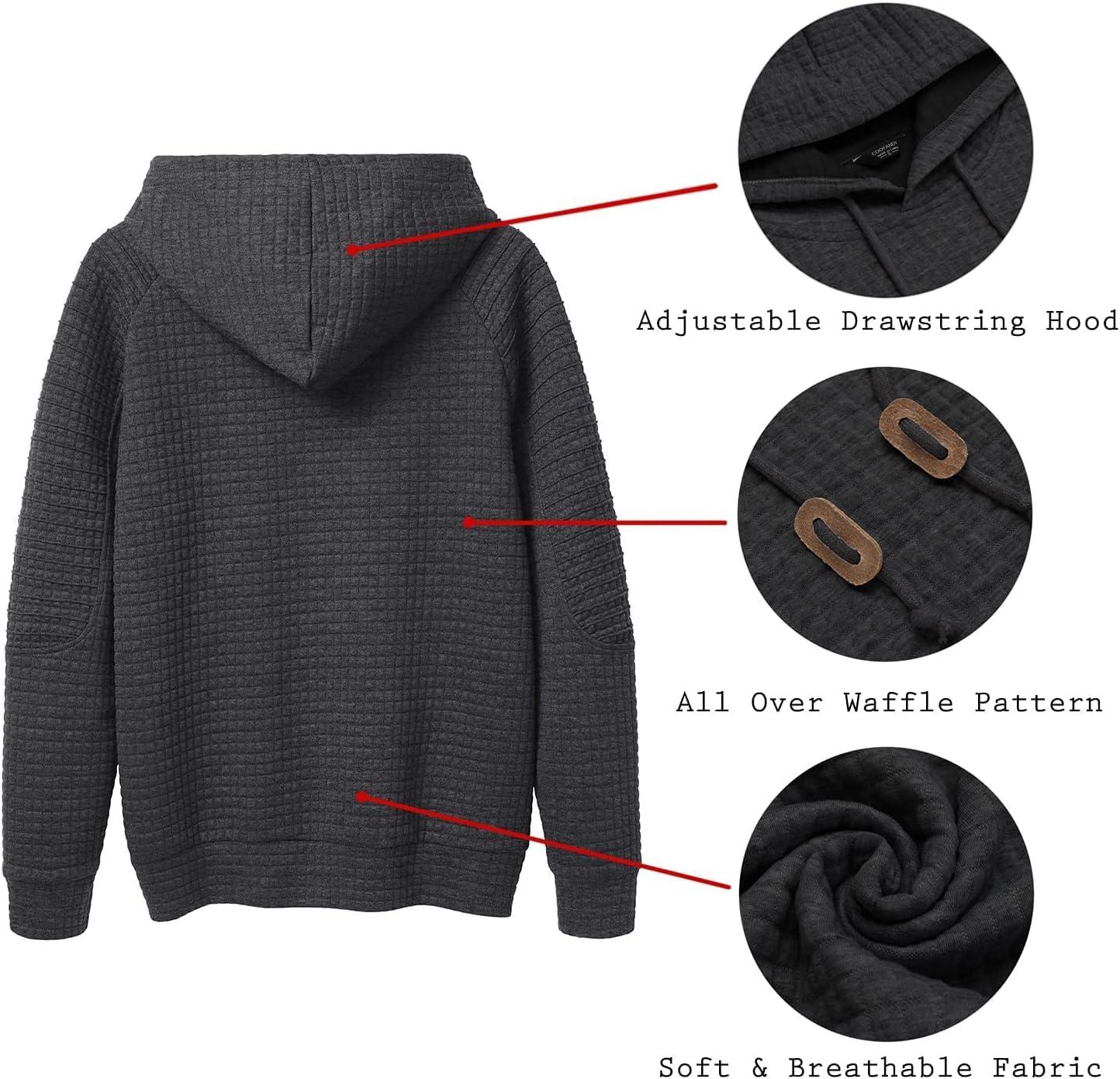 COOFANDY Mens Hoodies Pullover Casaul Long Sleeve Drawstring Waffle Knit Hooded Sweatshirt with Kanga Pocket(Dark Grey)