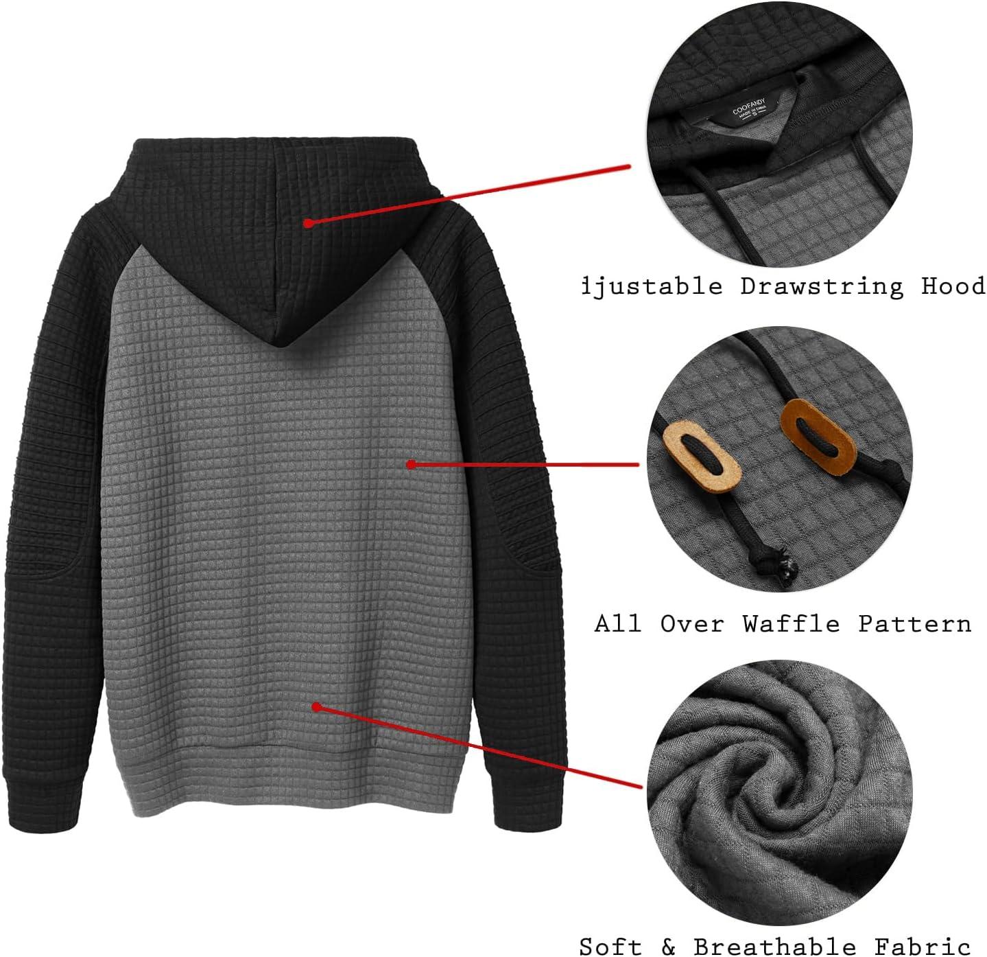 COOFANDY Mens Hoodies Pullover Casaul Long Sleeve Drawstring Waffle Knit Hooded Sweatshirt with Kanga Pocket(Red&black)