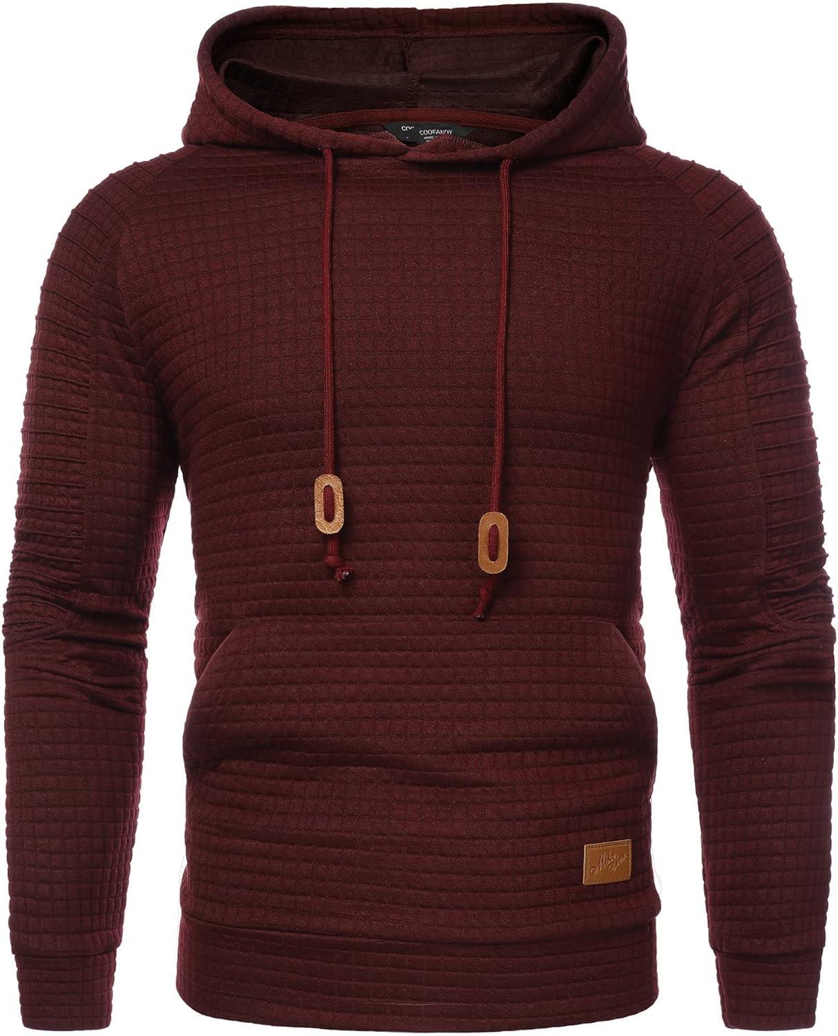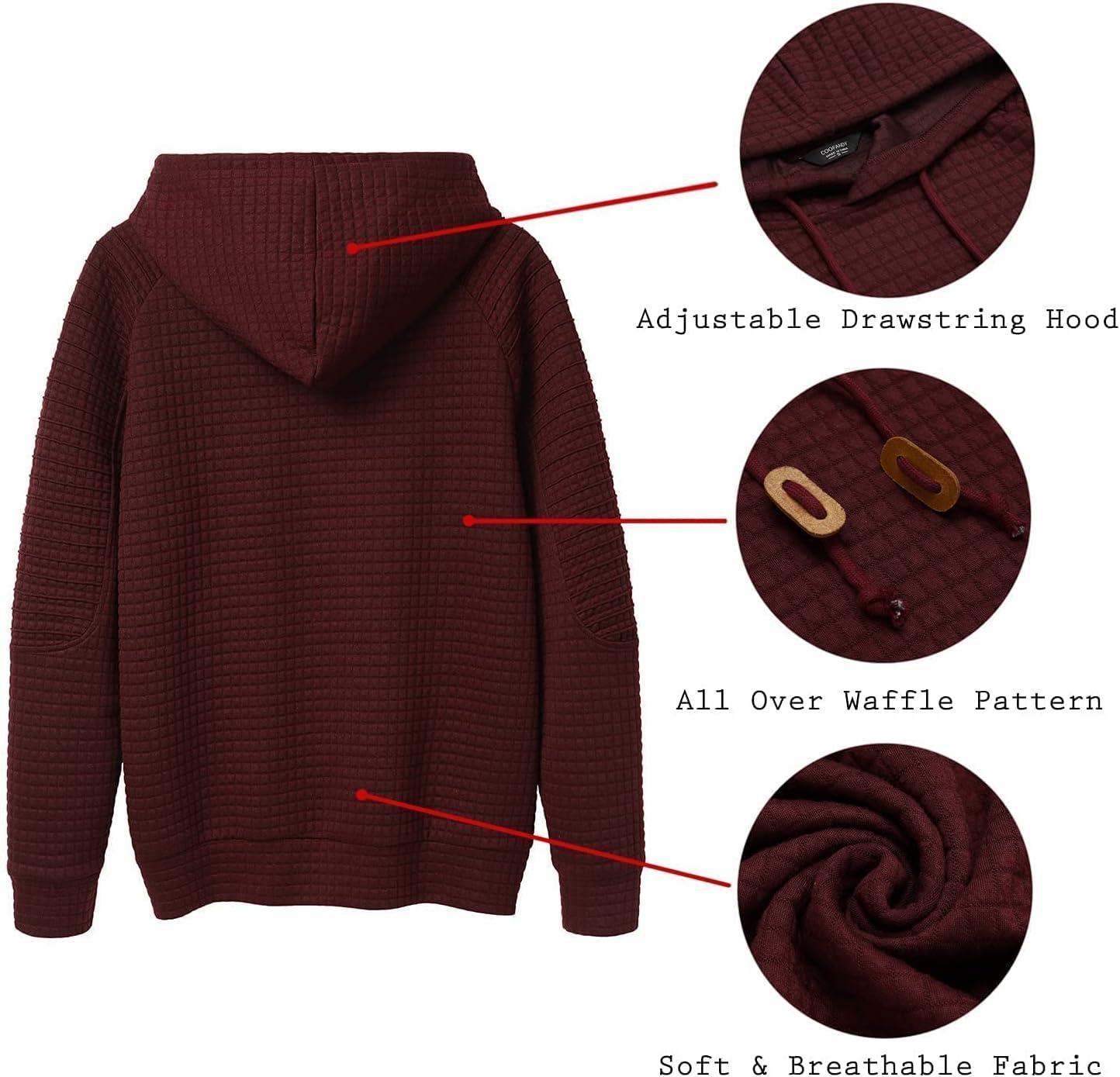 COOFANDY Mens Hoodies Pullover Casaul Long Sleeve Drawstring Waffle Knit Hooded Sweatshirt with Kanga Pocket(Wine Red)