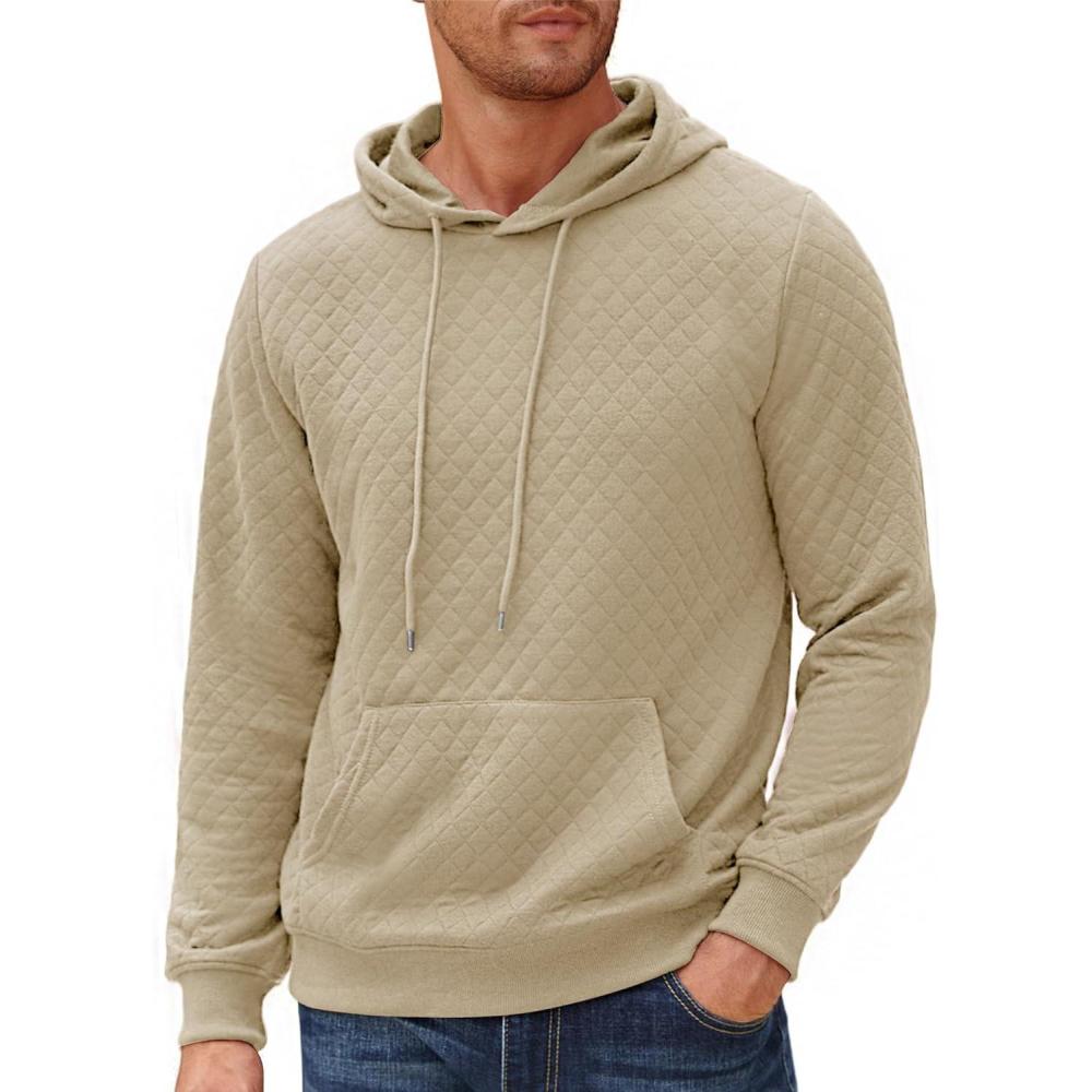 COOFANDY Mens Hoodies Pullover Long Sleeve Casual Fashion Sweatshirts Drawstring Gym Hooded Shirt with Kanga Pocket(Light Khaki)