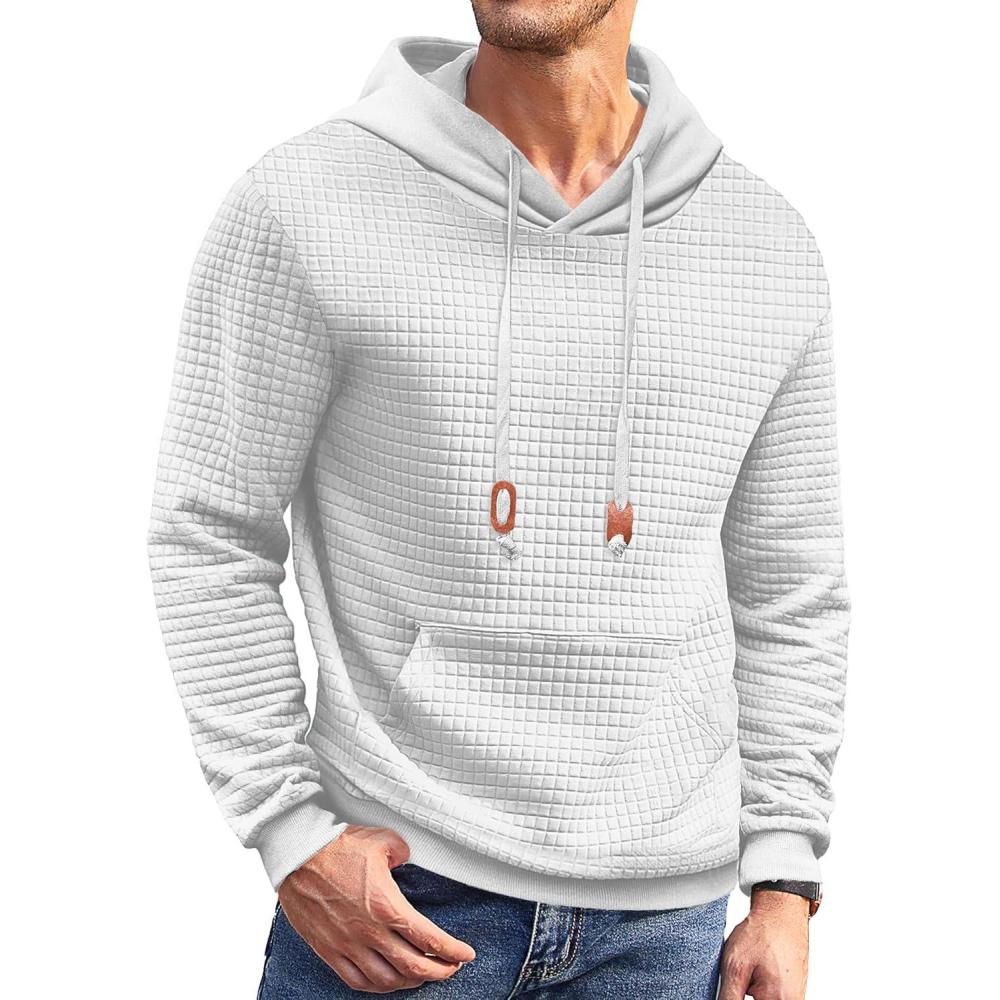 COOFANDY Mens Hoodies Sweatshirts Long Sleeve Fashion Waffle Knit Pullover Hoodie with Pocket(White)