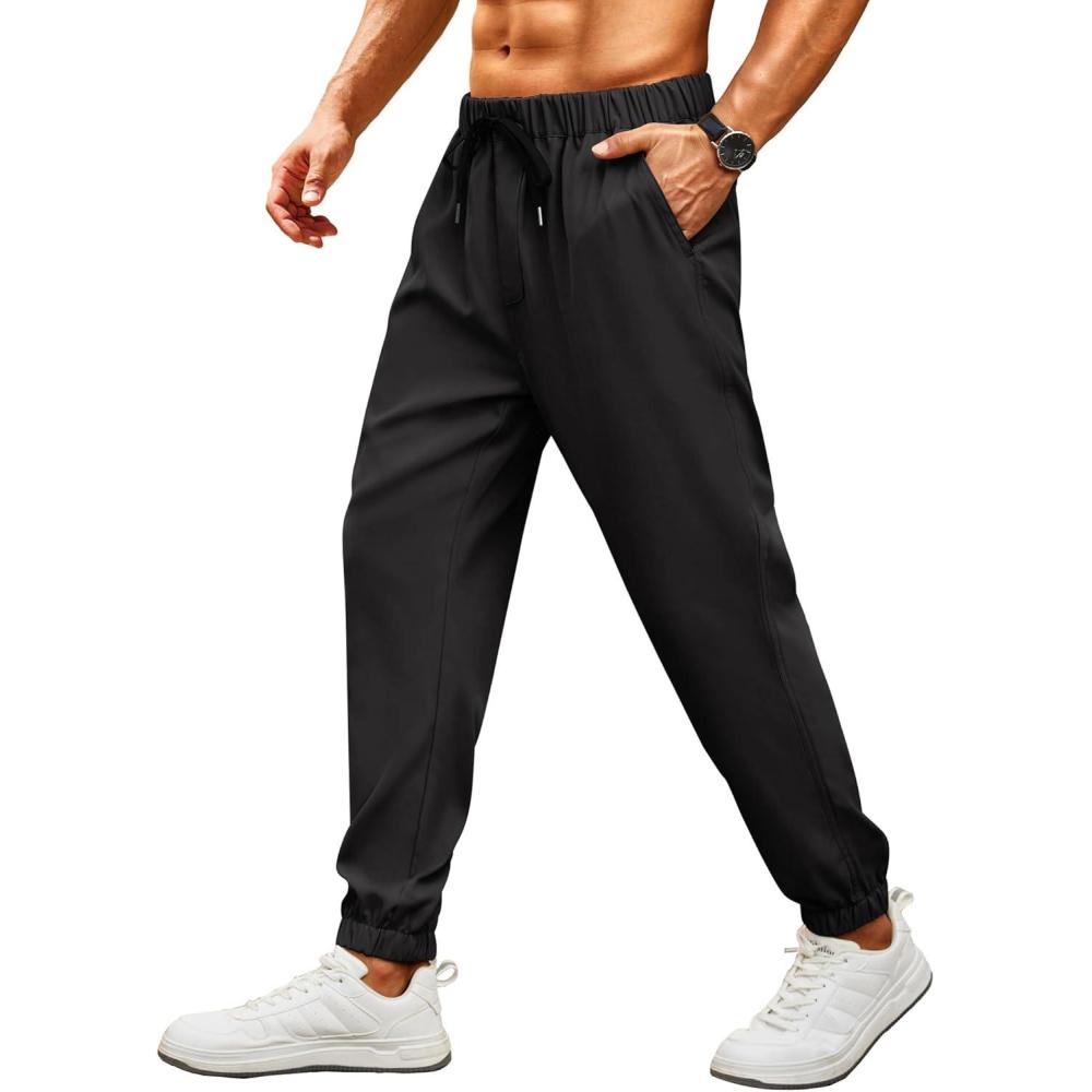 COOFANDY Mens Joggers Pants Regular Fit Casual Pants Lightweight Elastic Waistband Pants with Pockets(Black)