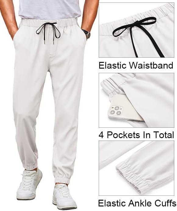 COOFANDY Mens Joggers Pants Regular Fit Casual Pants Lightweight Elastic Waistband Pants with Pockets(White)