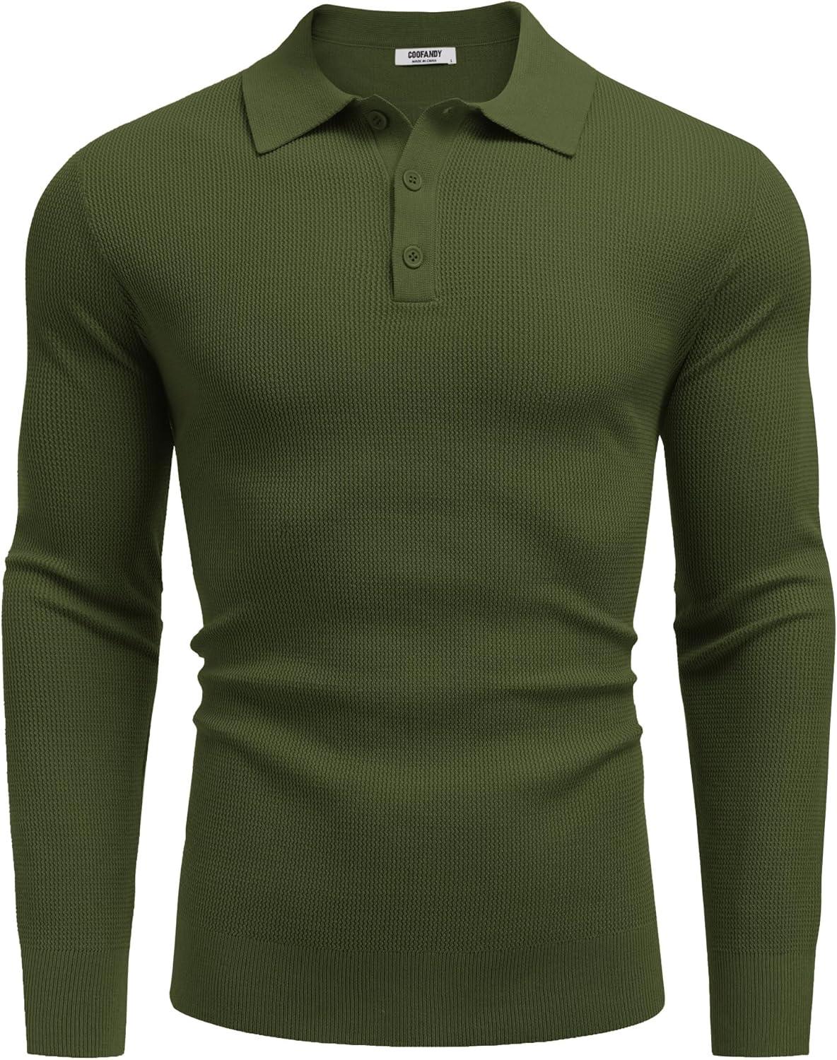 COOFANDY Men’s Knit Polo Long Sleeve Sweaters Collared Polo Sweater Casual Dress Pullover Fashion Golf Sweaters(Army Green)