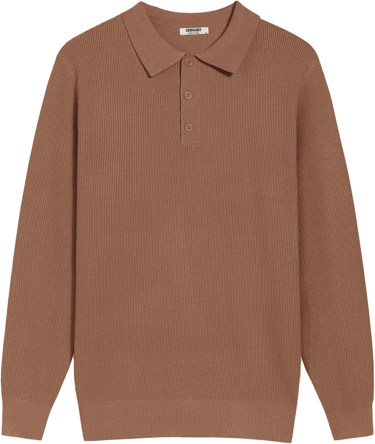 COOFANDY Men’s Knit Polo Long Sleeve Sweaters Collared Polo Sweater Casual Dress Pullover Fashion Golf Sweaters(Ash Brown)